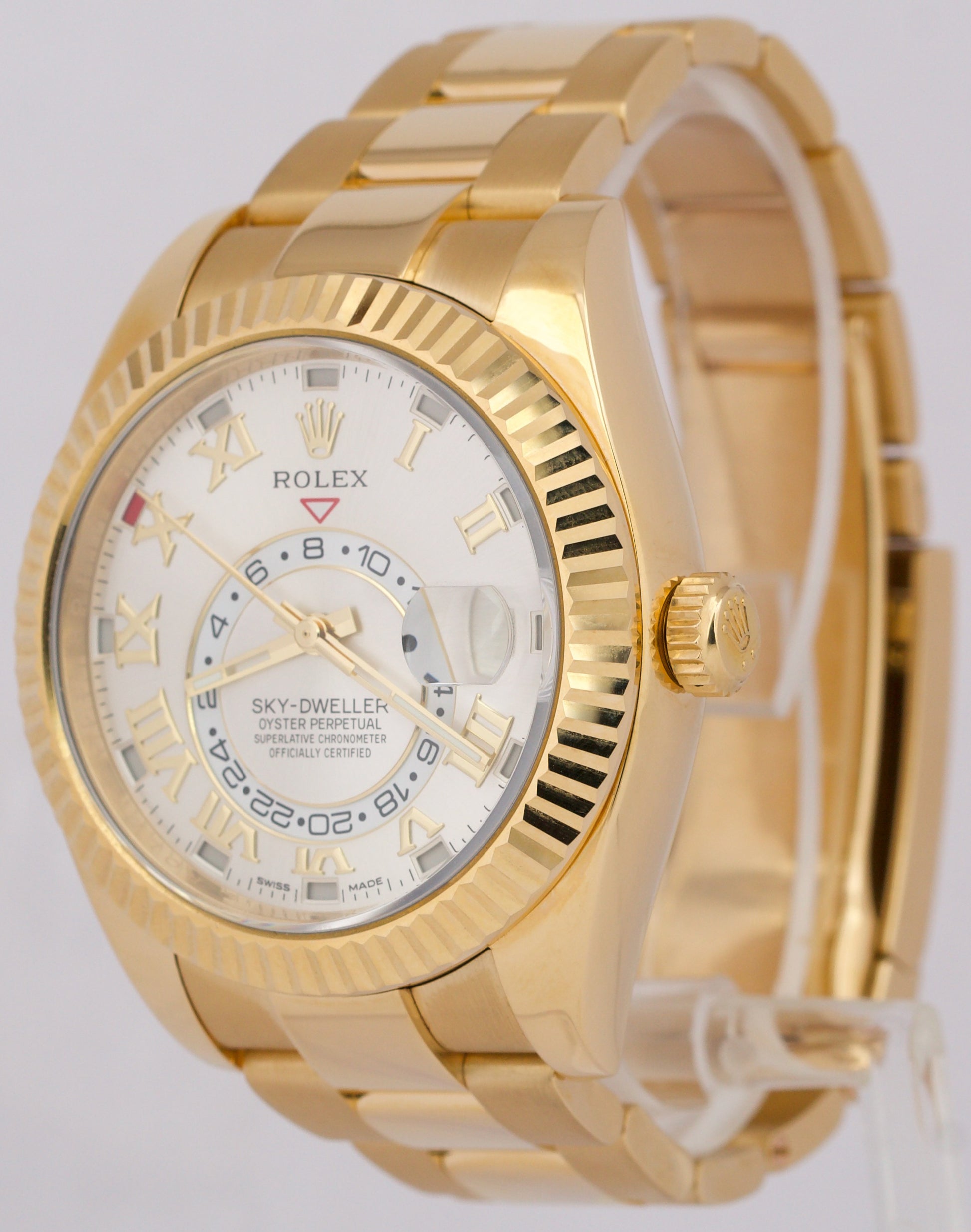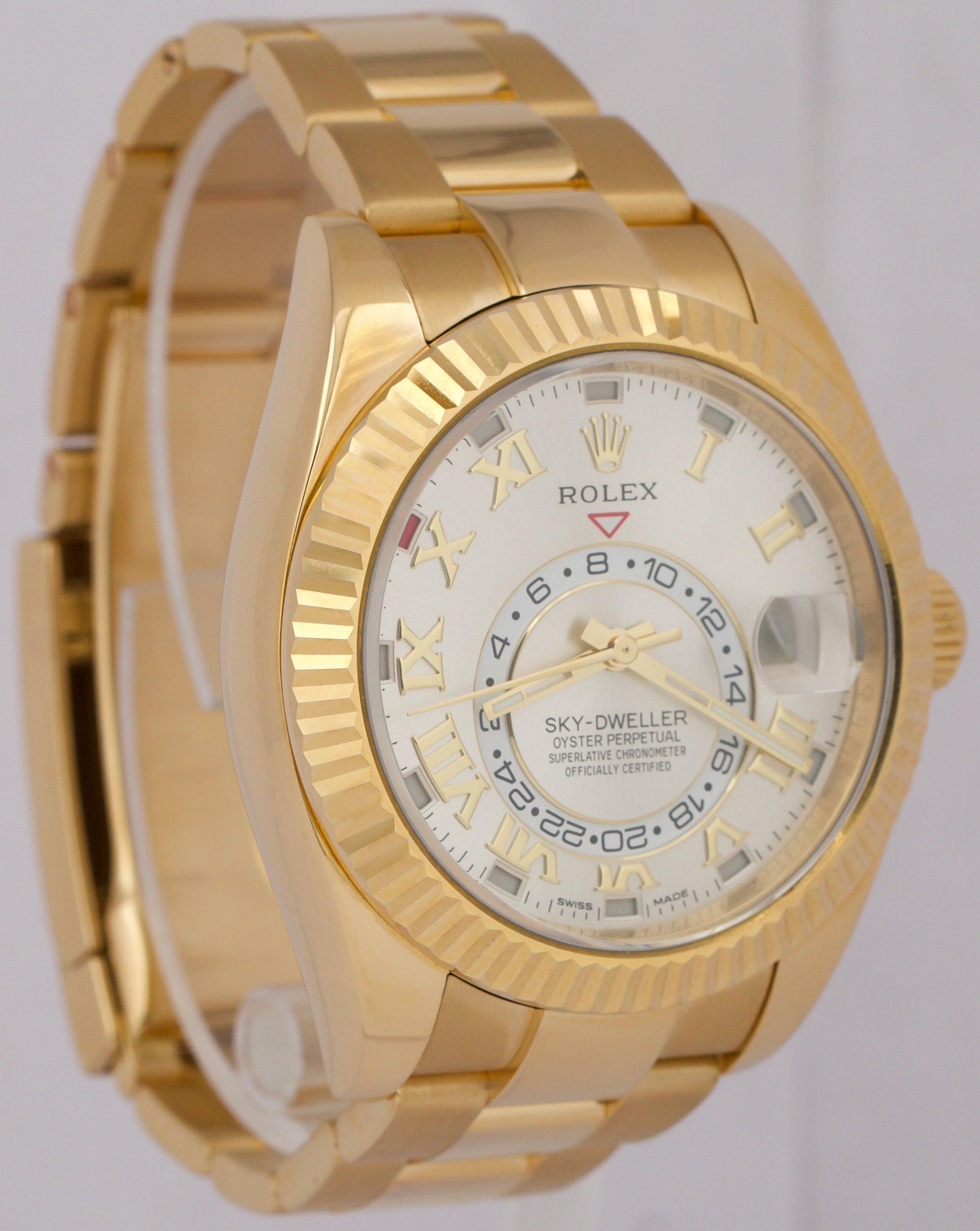 MINT Rolex Sky-Dweller SILVER ROMAN 18K Yellow Gold Oyster 42mm 326938 BOX