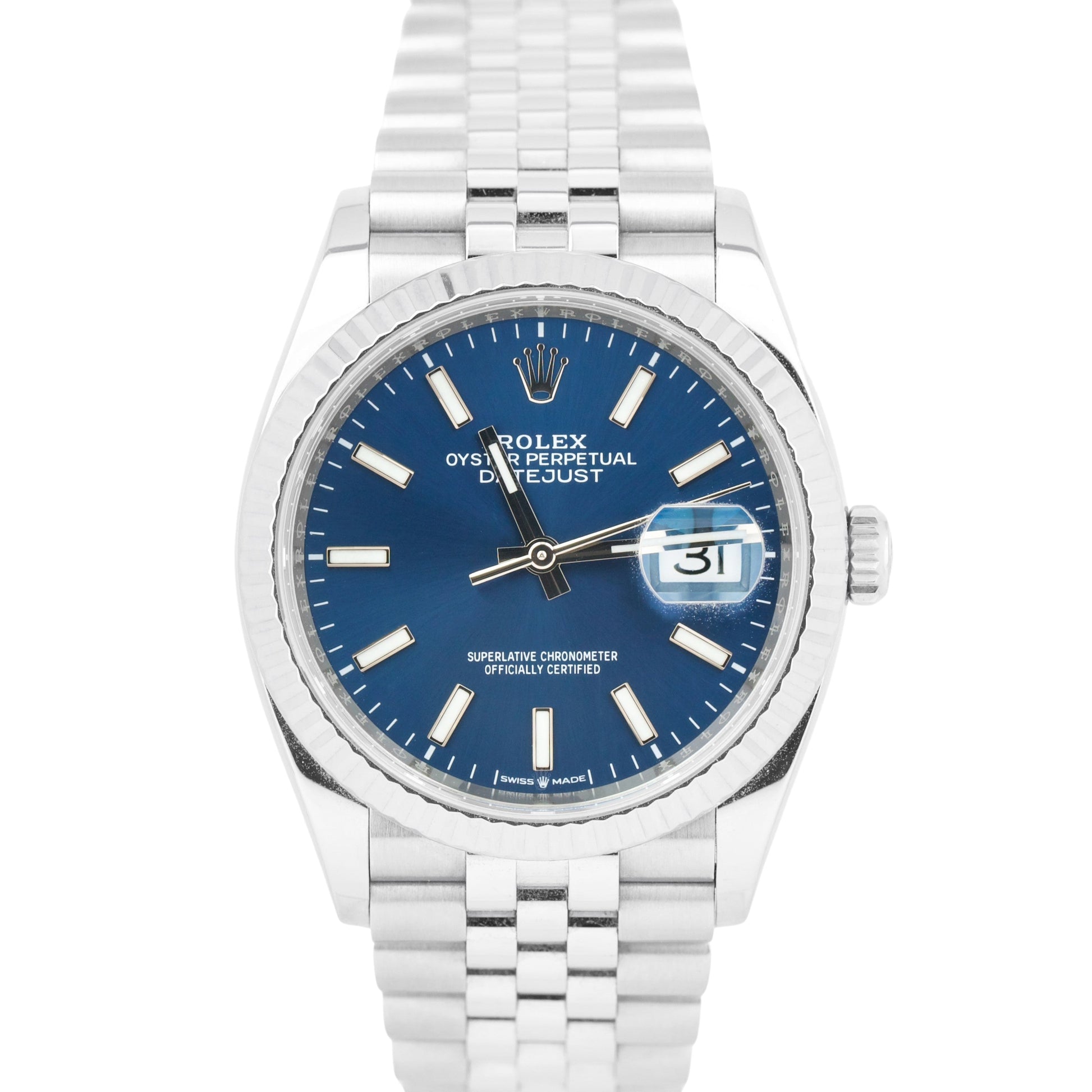 NEW MAY 2025 Rolex DateJust BLUE 36mm Fluted 18K Gold JUBILEE Steel 126234 BOX