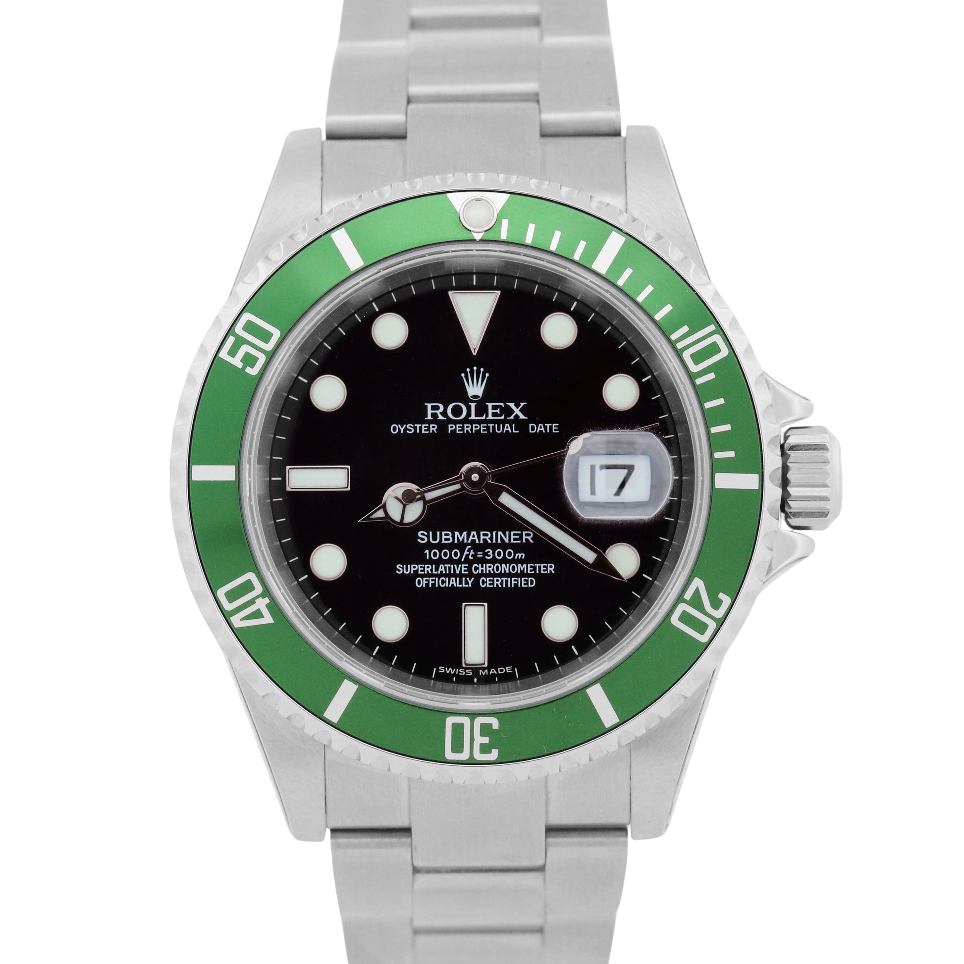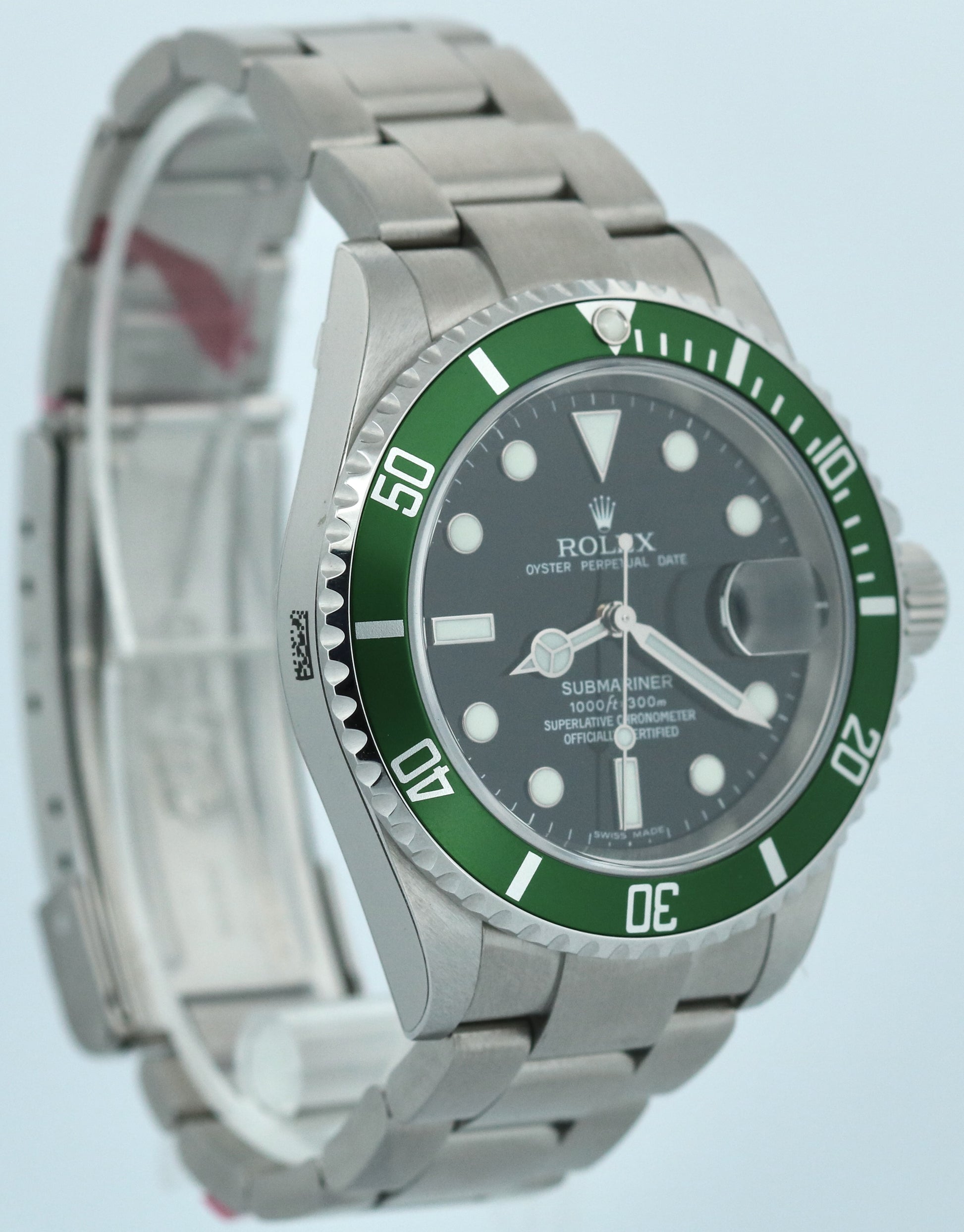 NOS STICKERED PAPERS Rolex Submariner 40mm KERMIT Green NO-HOLES 16610 V BOX