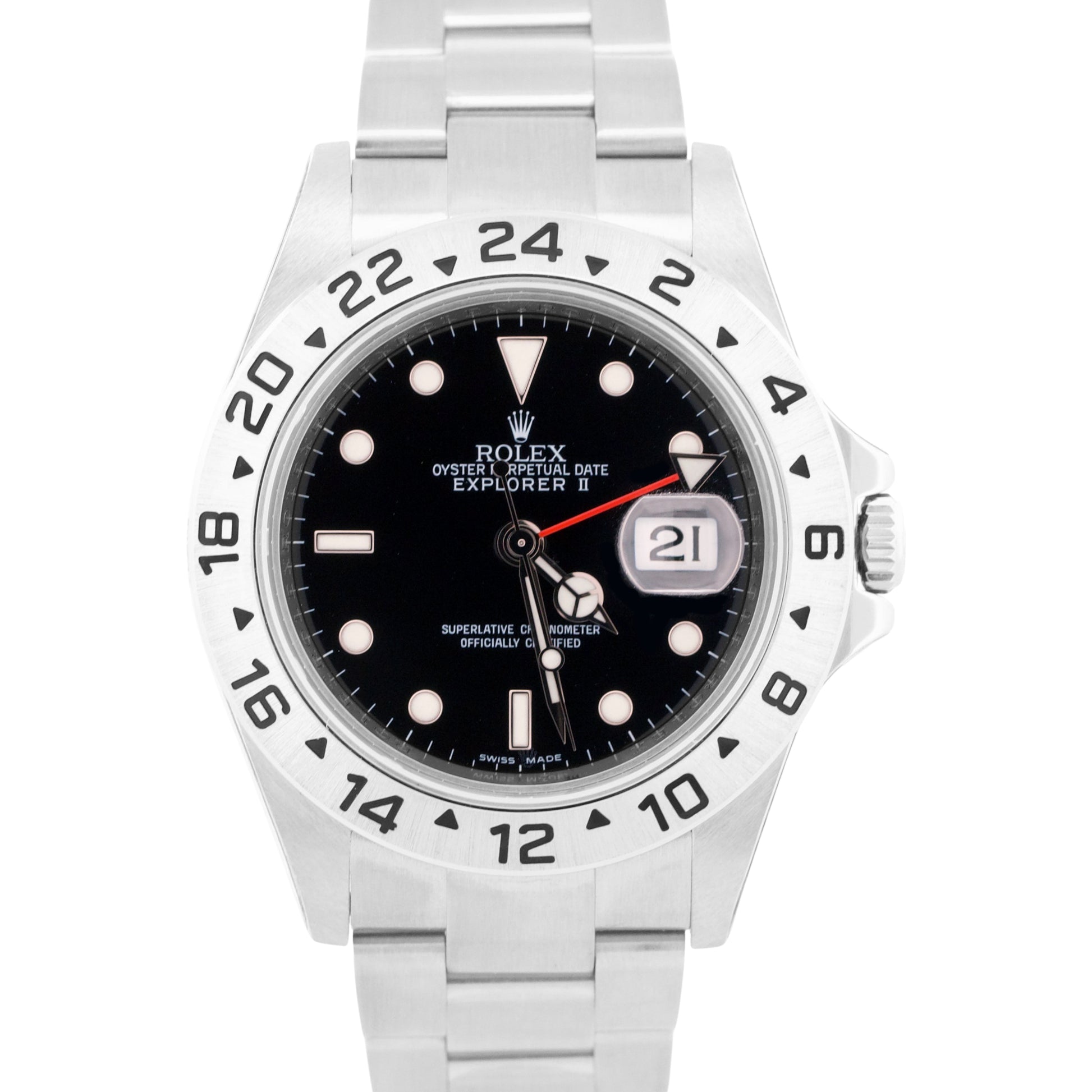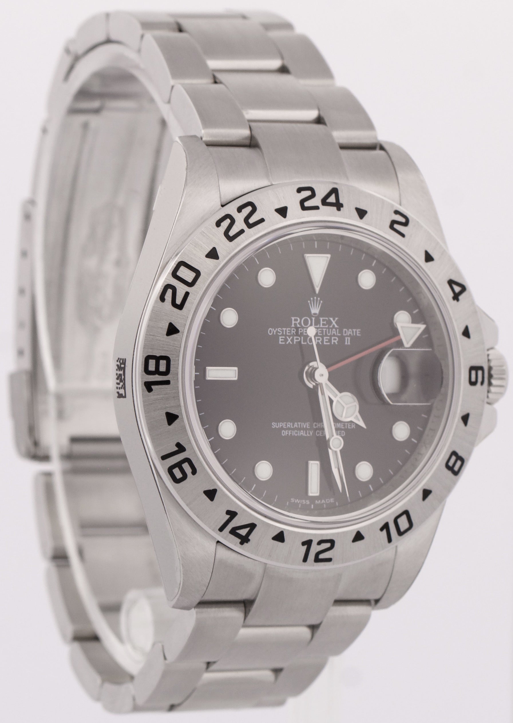 NOS STICKERED Rolex Explorer II 40mm 3186 BLACK Red Steel REHAUT 16570 Watch