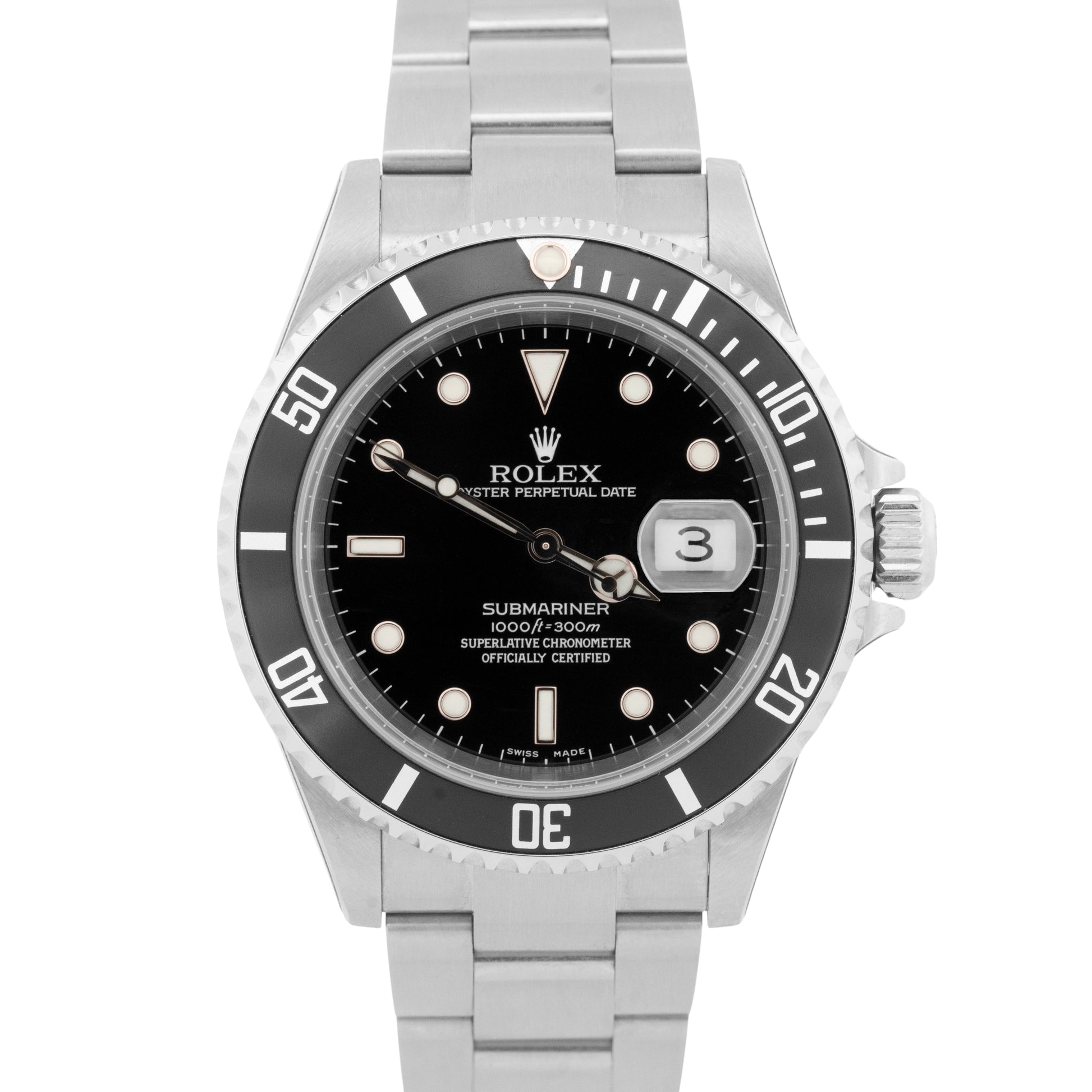 NOS STICKERED Rolex Submariner Date BLACK Stainless 40mm NO-HOLES 16610 BOX