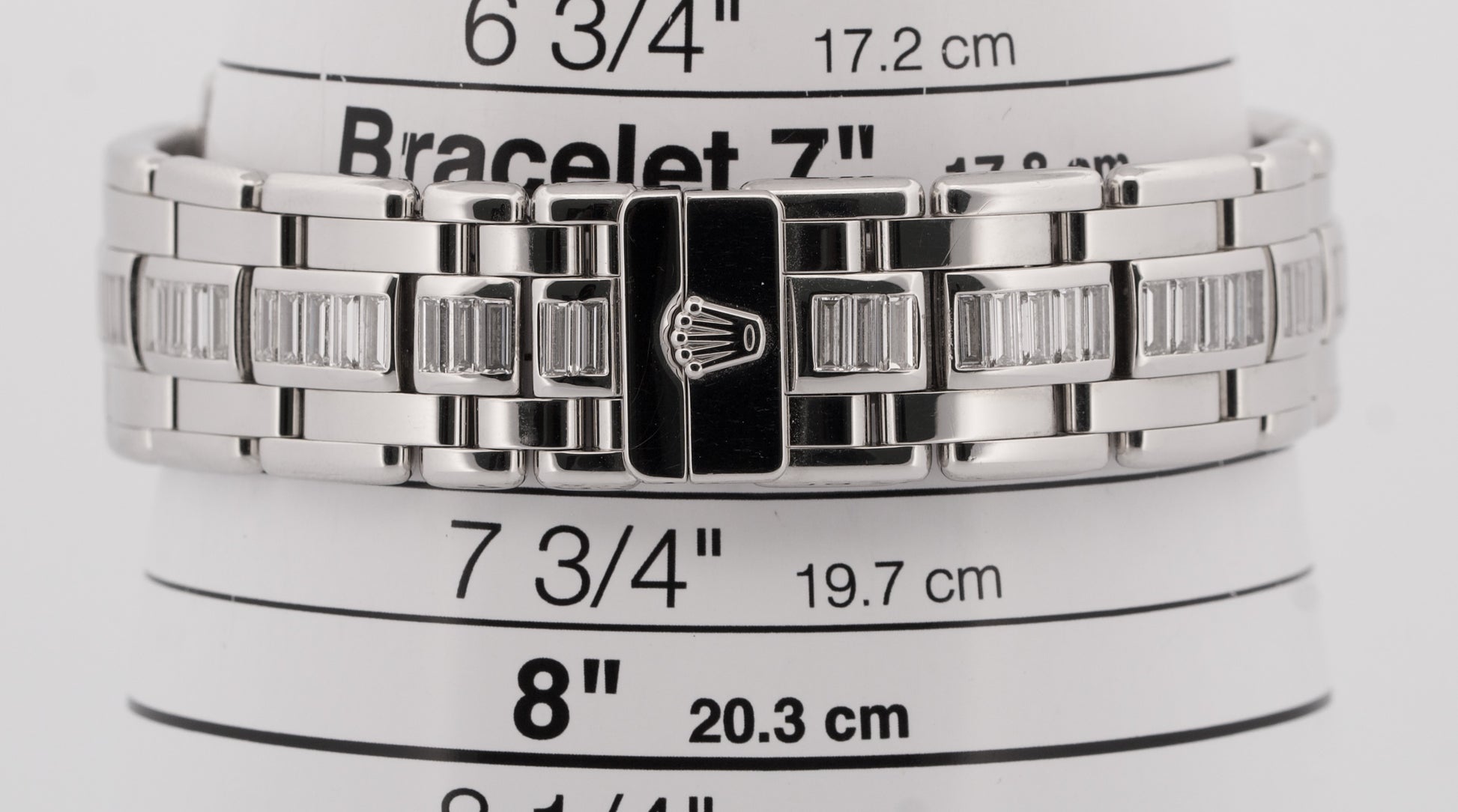 | Band | FACTORY Platinum Pearlmaster Diamond Baguette Bracelet |