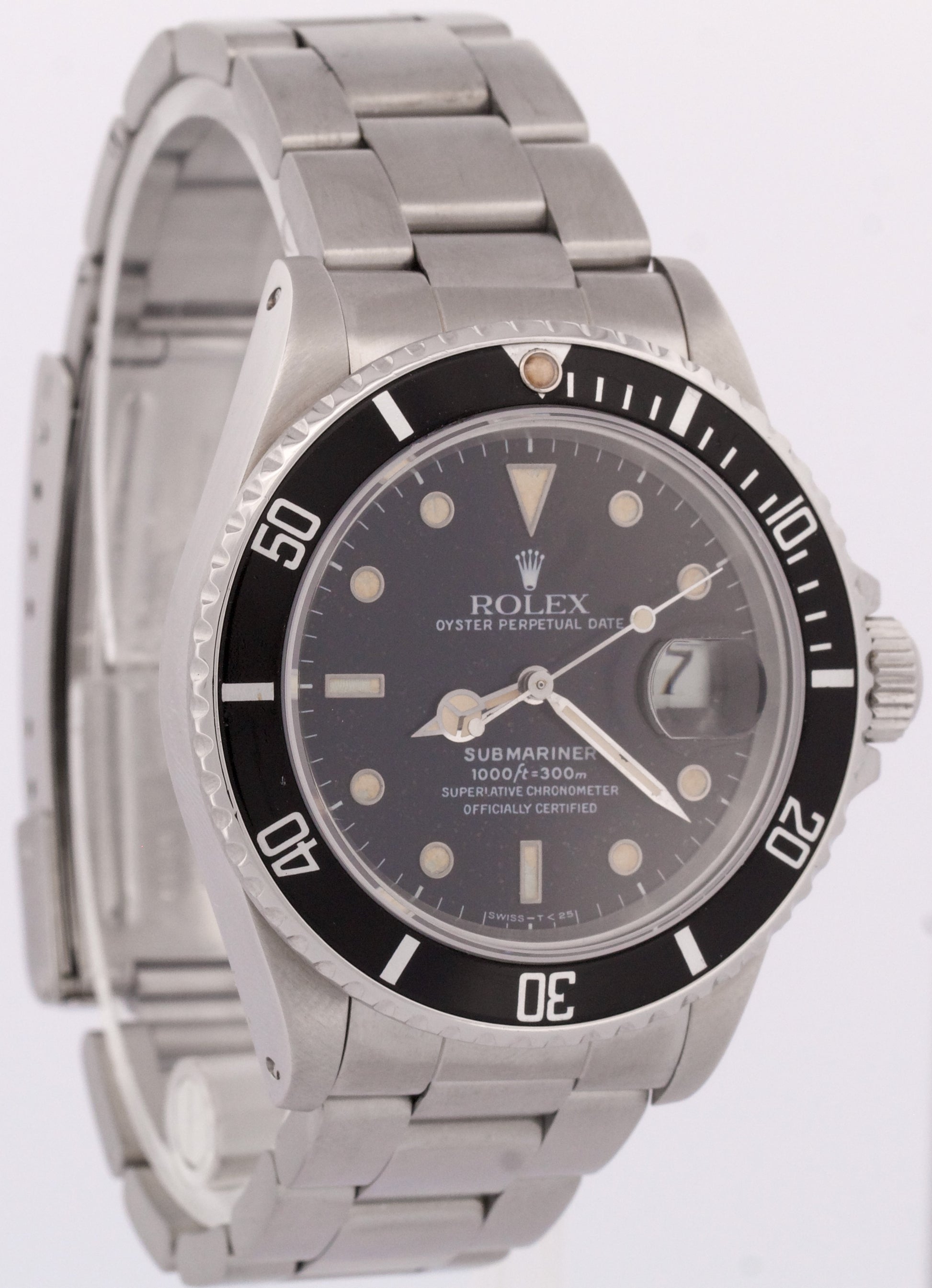 PAPERS 1986 Rolex Submariner Date PATINA BLACK DIAL 40mm Oyster Watch 16800 BOX