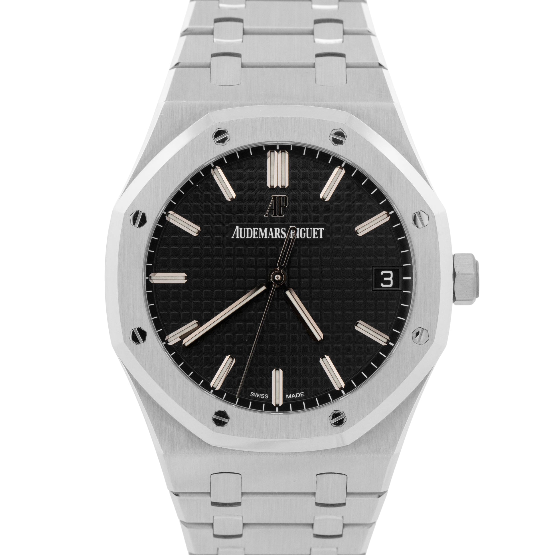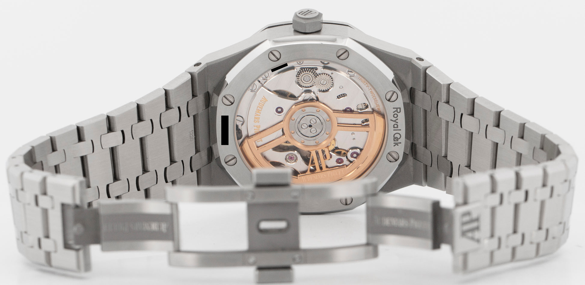 PAPERS Audemars Piguet Royal Oak Gray Black Stainless 41mm 15500ST Watch BOX
