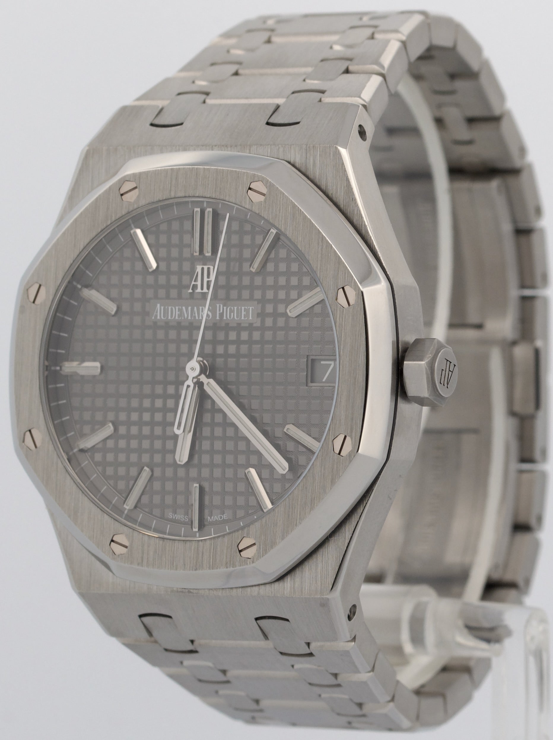 PAPERS Audemars Piguet Royal Oak Gray RHODIUM Stainless 41mm 15500ST Watch BOX