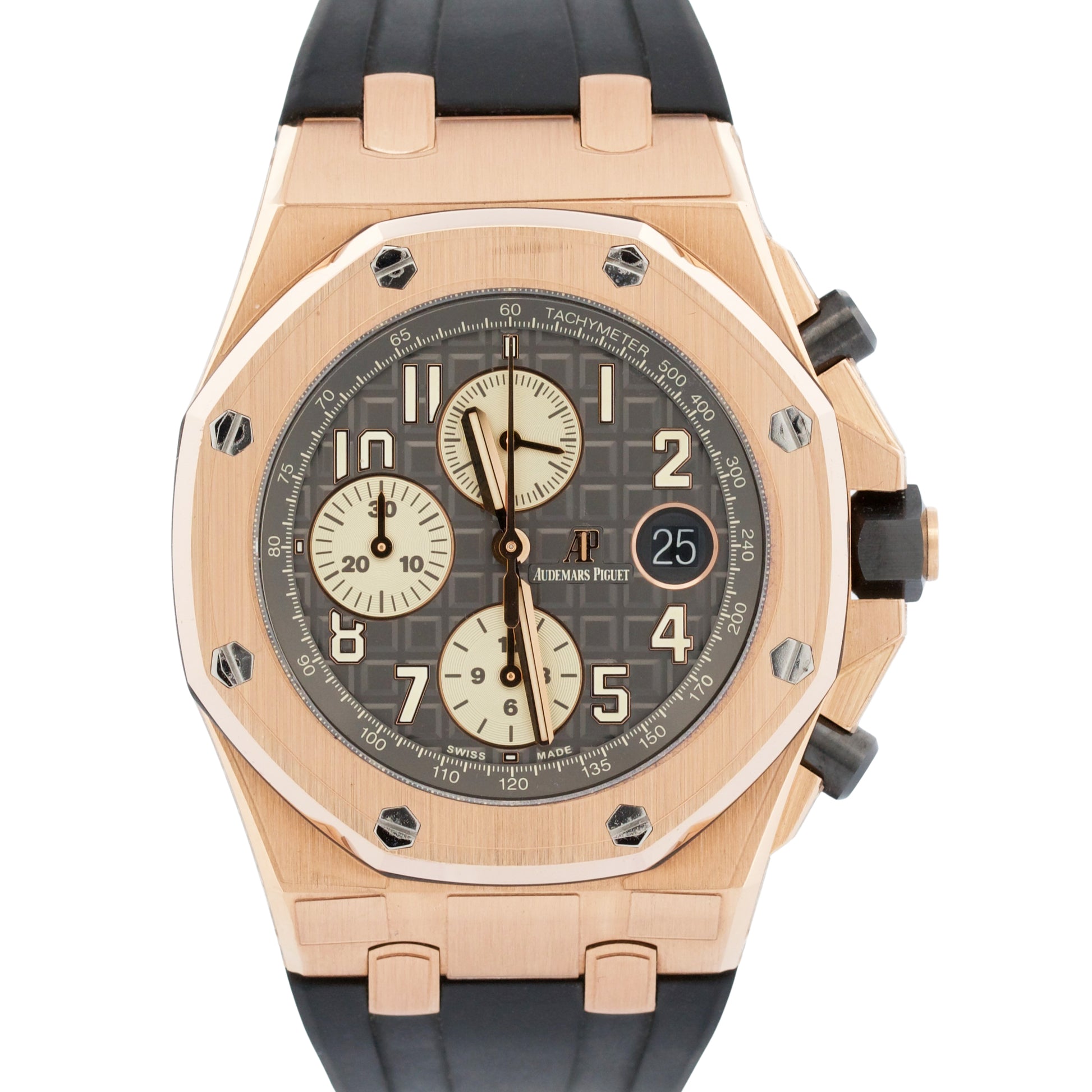 | Band | Audemars Piguet Black Rubber Strap with 18K Rose Gold Tang Buckle |