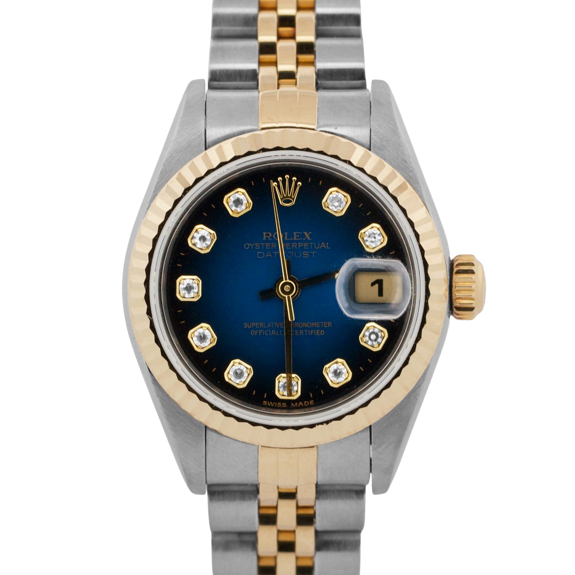 PAPERS Ladies Rolex DateJust BLUE VIGNETTE DIAMOND 18K Jubilee 26mm 79173 BOX