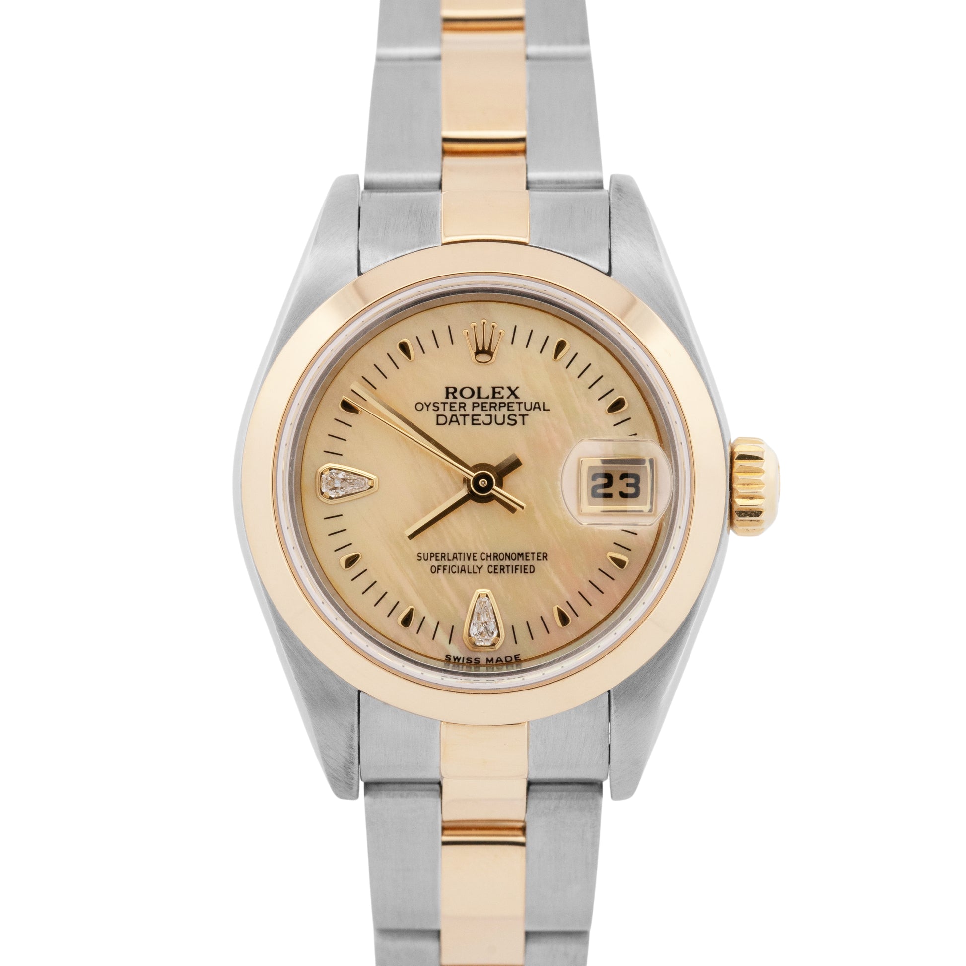 PAPERS Ladies Rolex DateJust CHAMPAGNE MOP DIAMOND Two-Tone Gold 26mm 79163 BOX