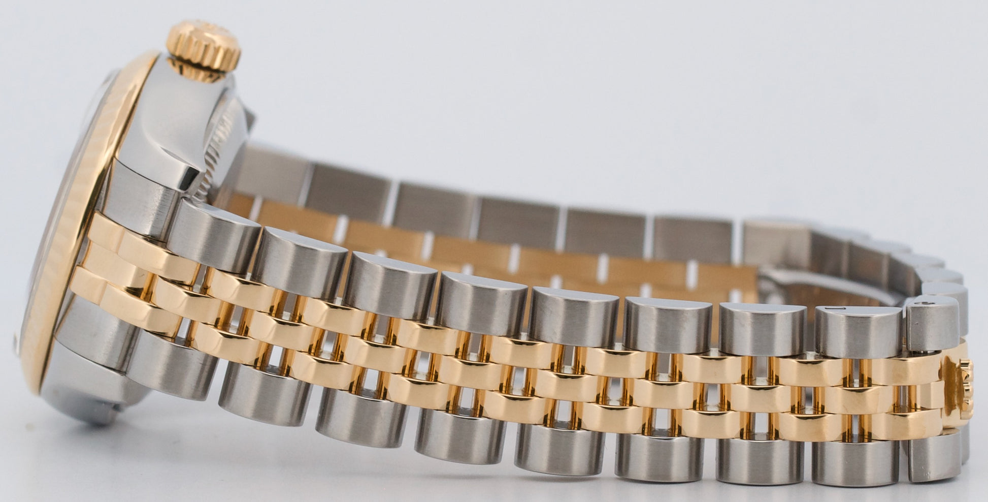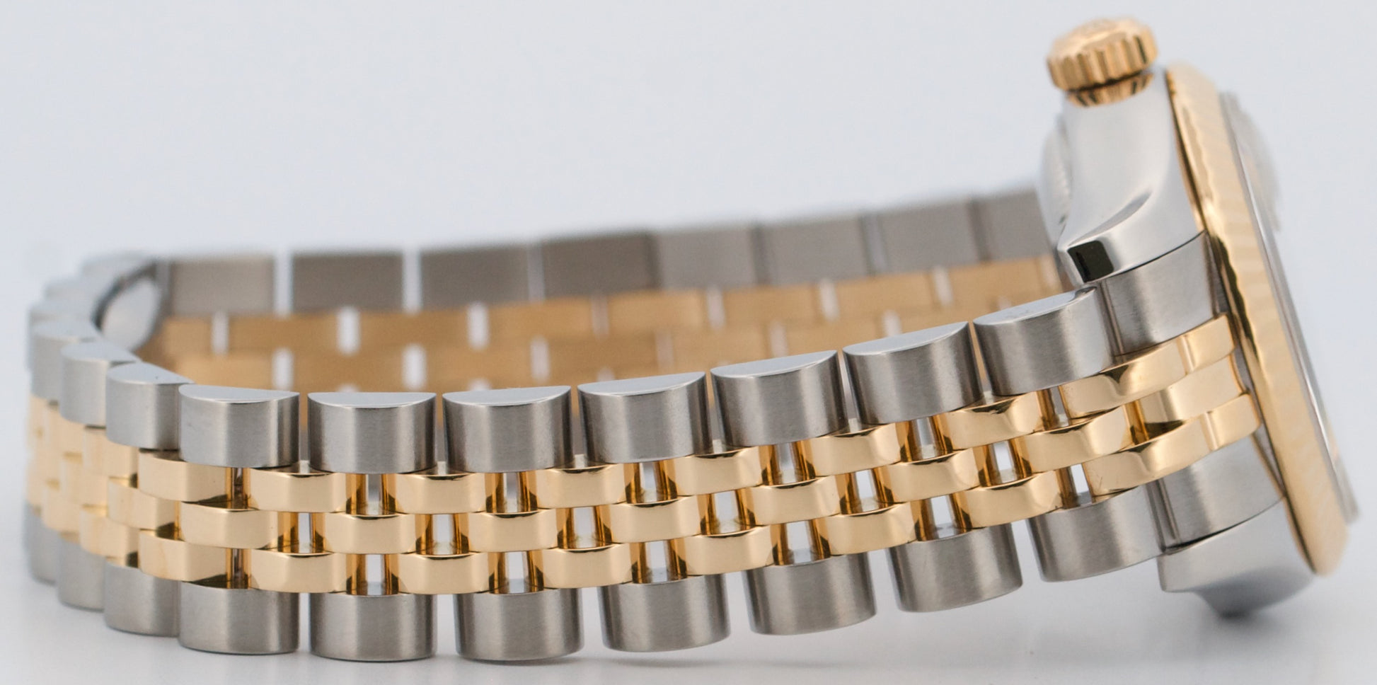 PAPERS Ladies Rolex DateJust IVORY PYRAMID ROMAN 18K 26mm JUBILEE 179173 BOX