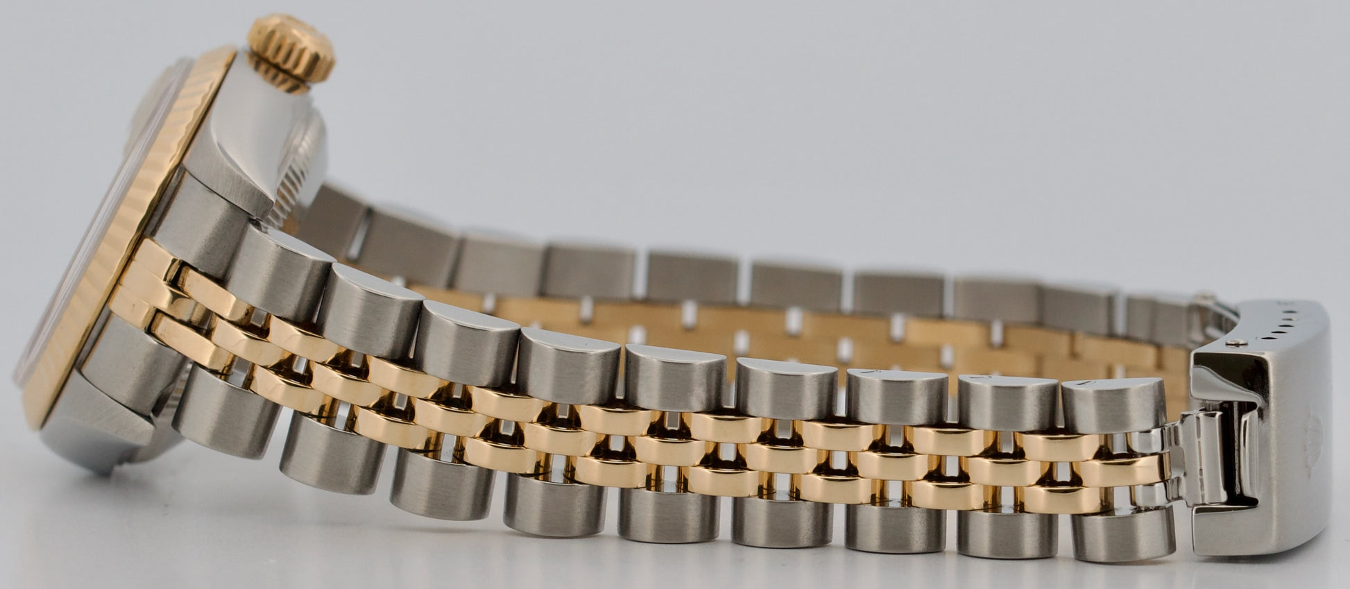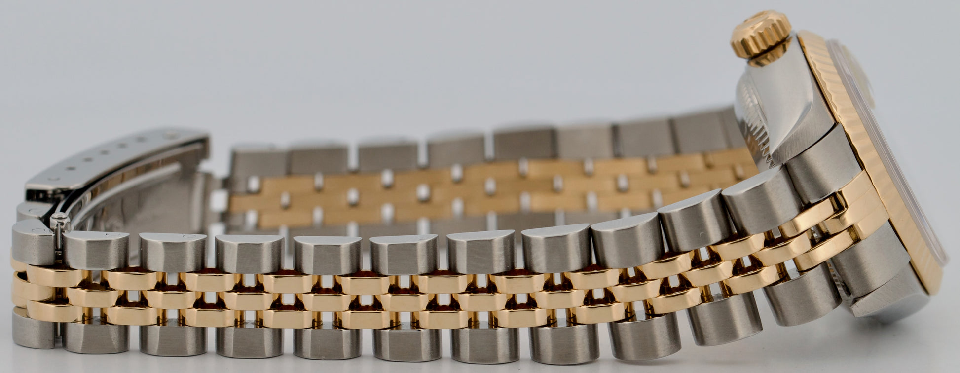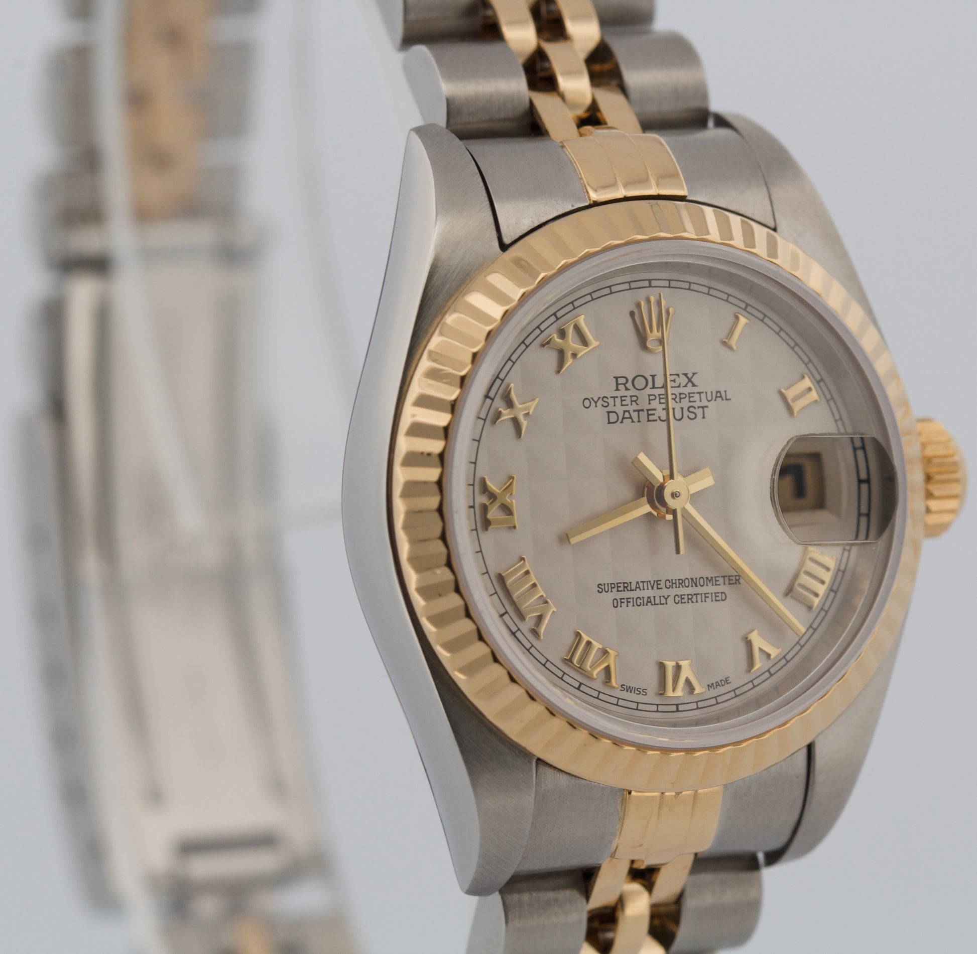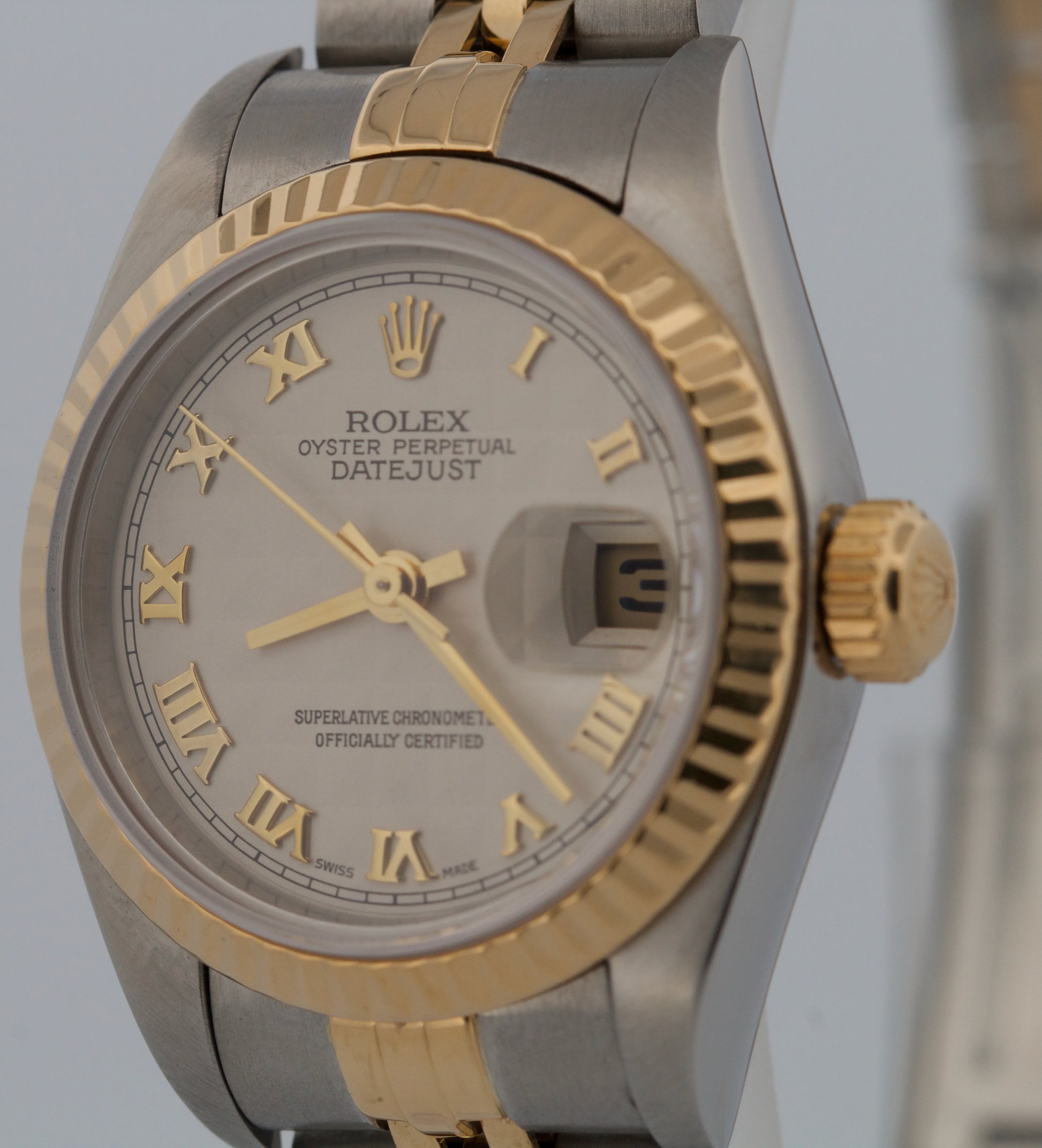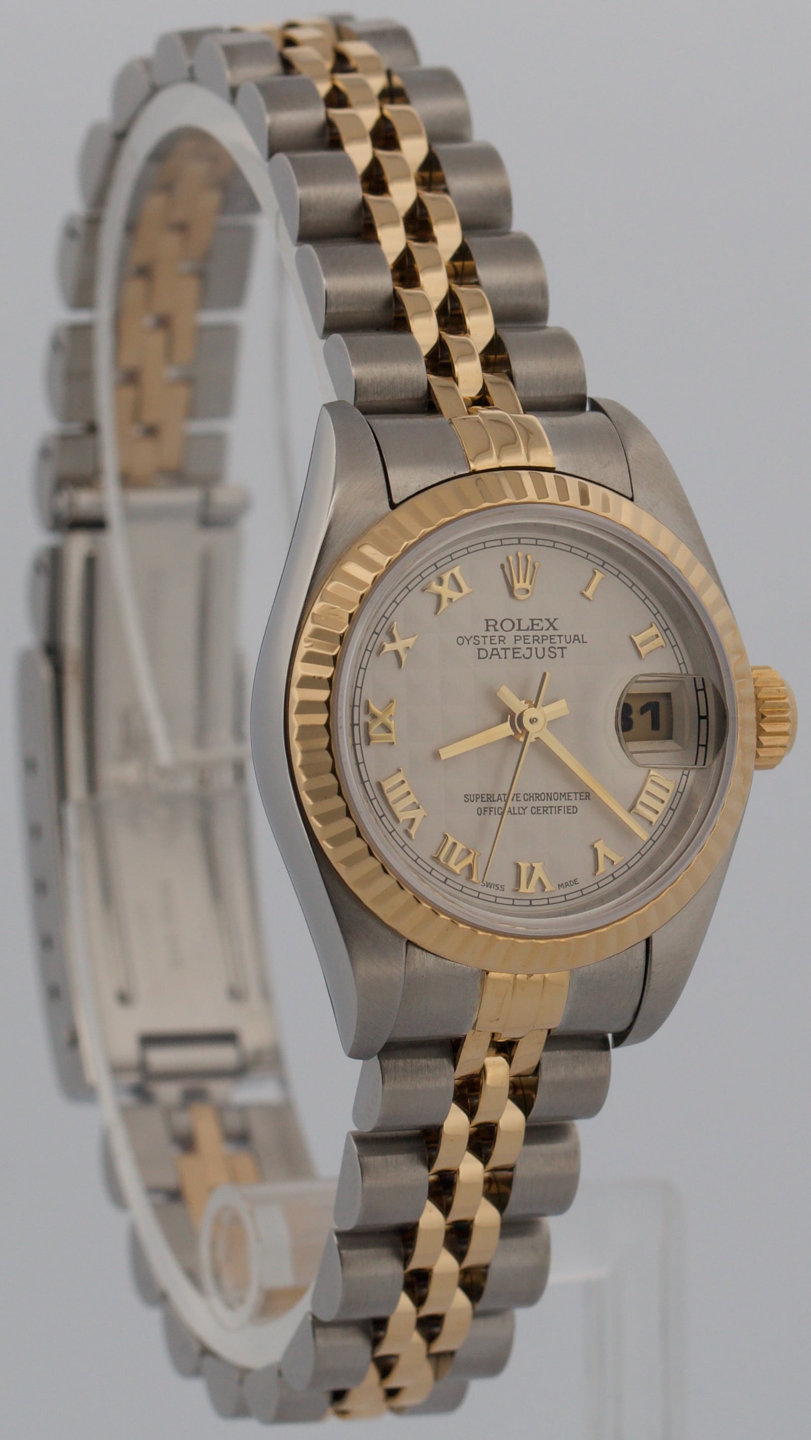 PAPERS Ladies Rolex DateJust IVORY ROMAN PYRAMID 18K 26mm JUBILEE 79173 BOX