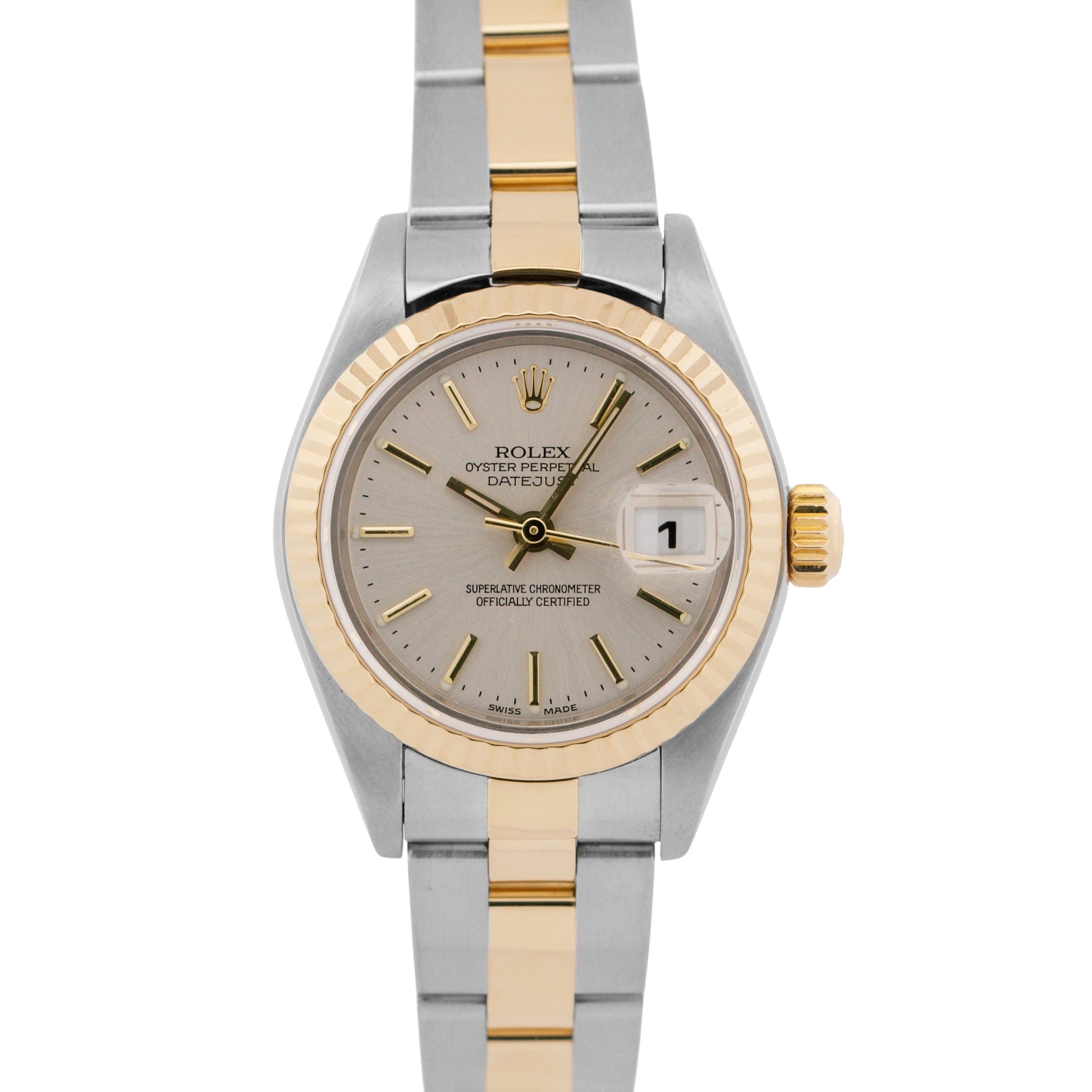 PAPERS Ladies Rolex DateJust SILVER 18K Yellow Gold Steel 26mm OYSTER 79173 BOX