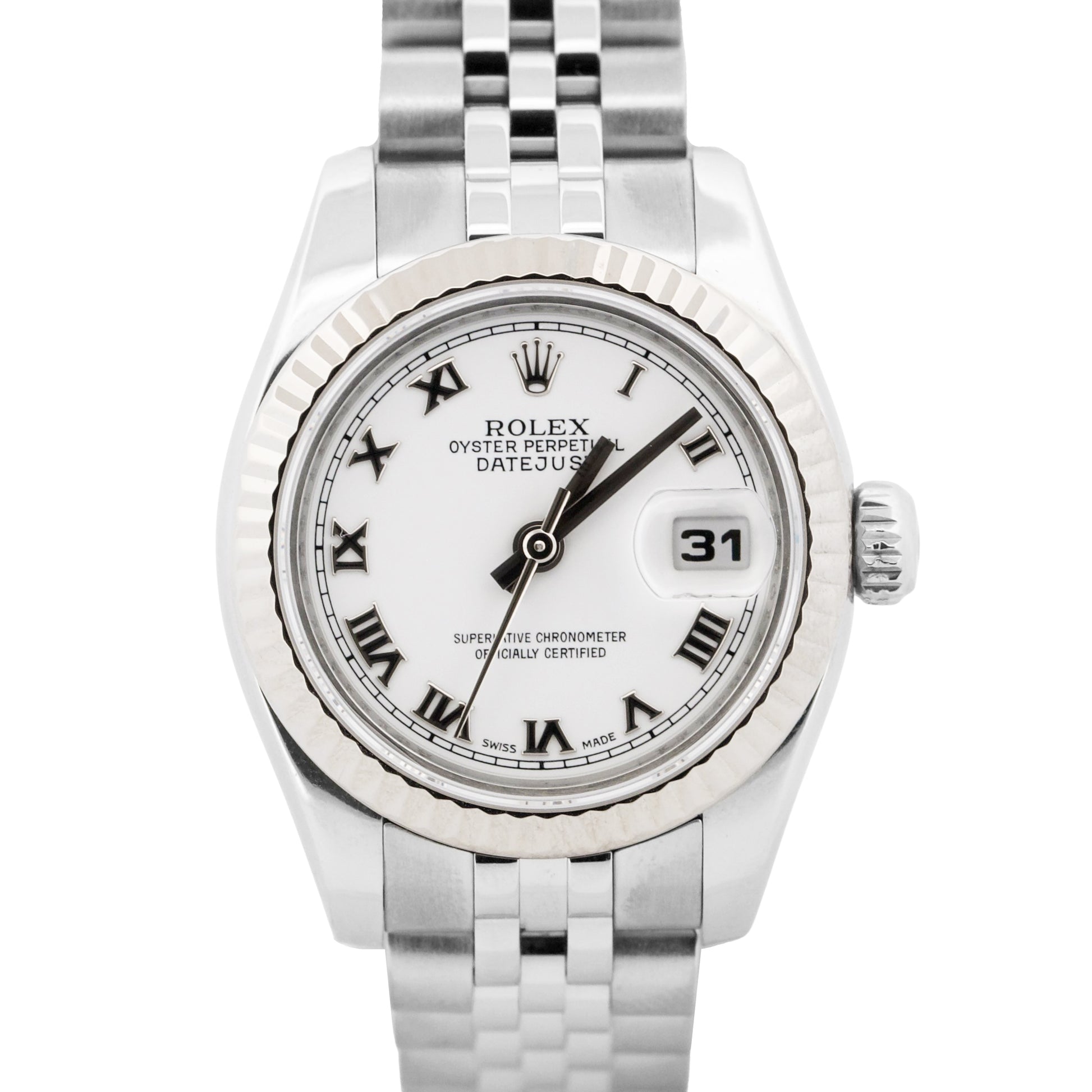 PAPERS Rolex DateJust 26mm WHITE ROMAN Steel 18K Gold JUBILEE 179174 BOX