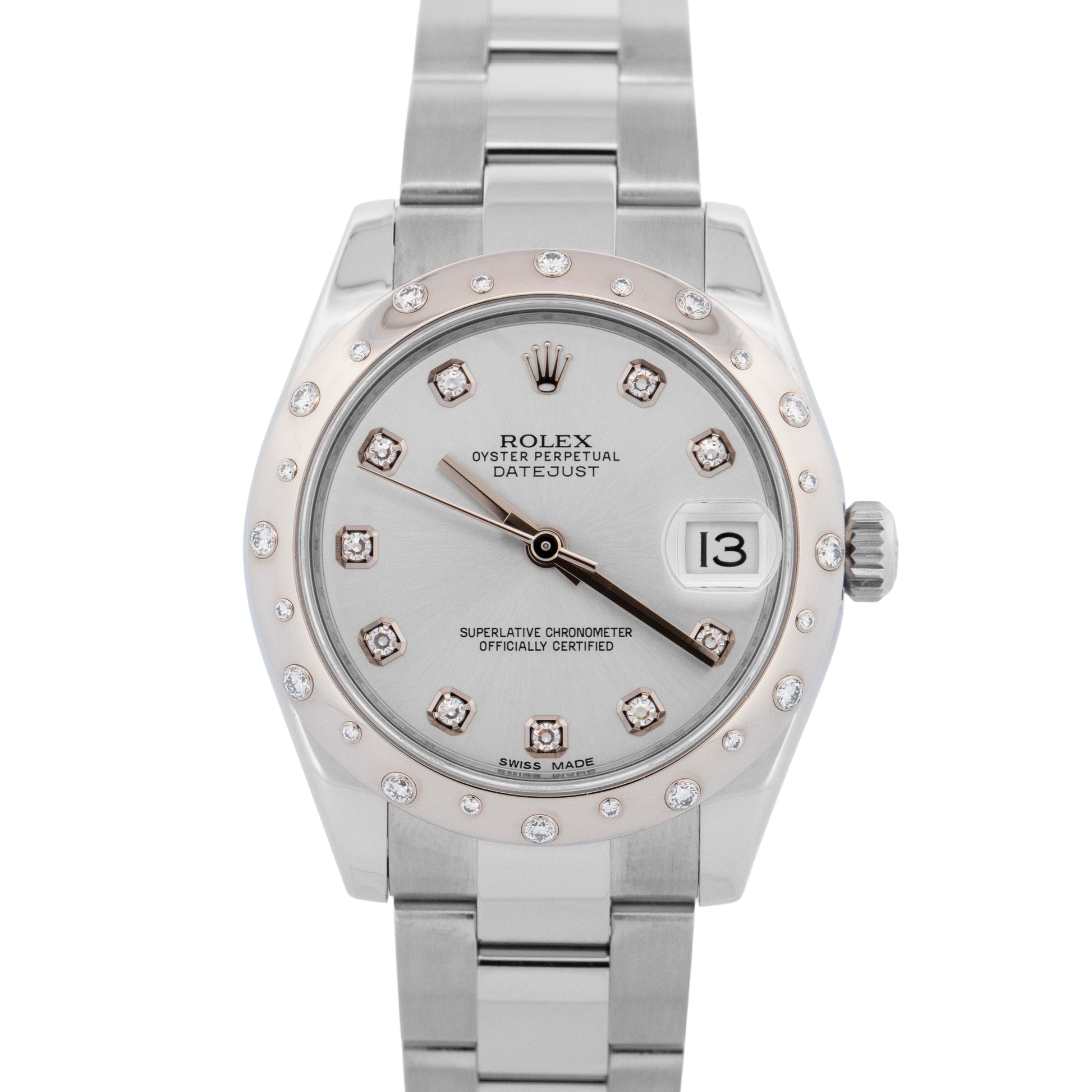 PAPERS Rolex DateJust 31mm Silver DIAMOND Stainless Steel Oyster 178344 BOX