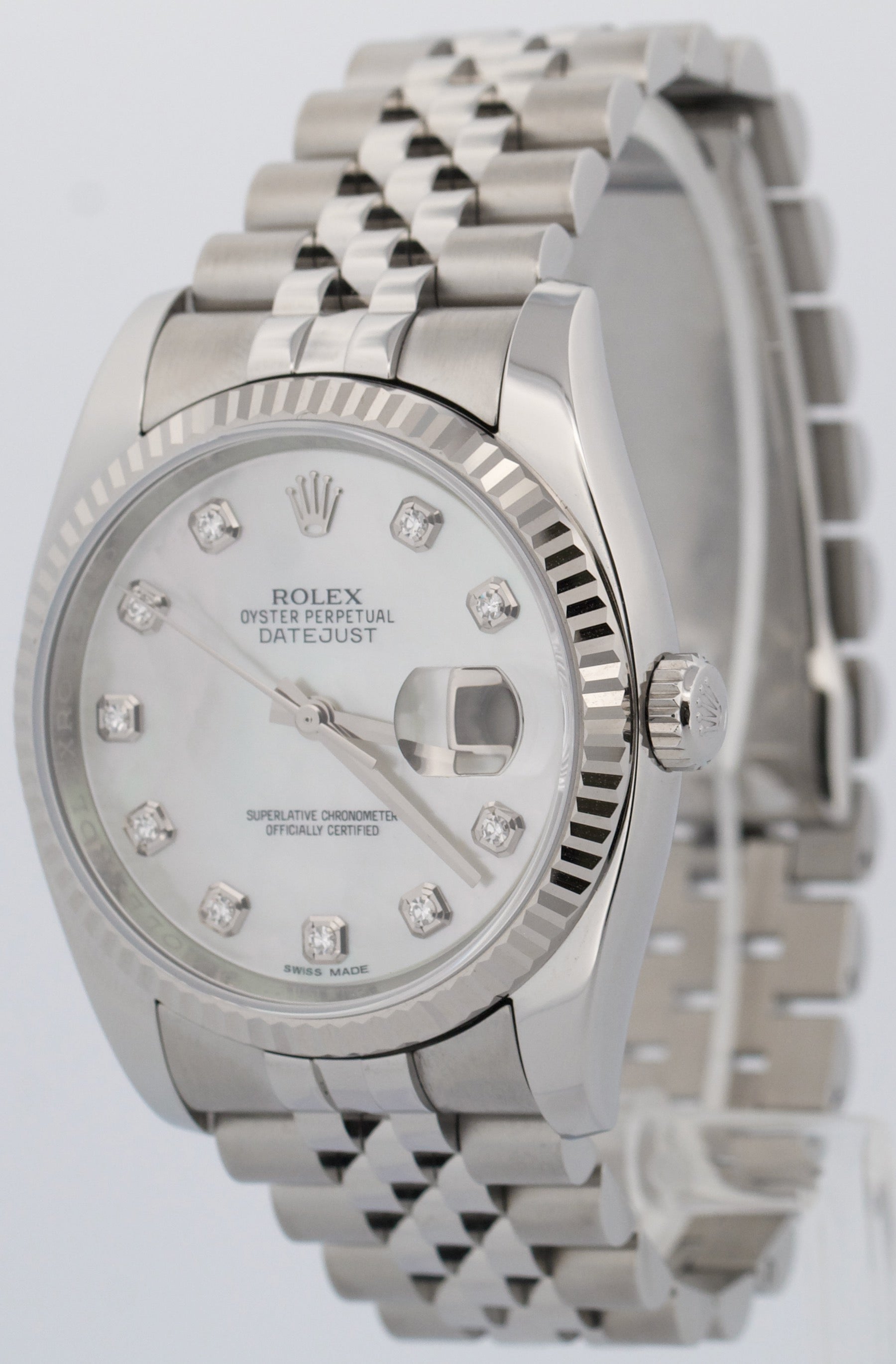 PAPERS Rolex DateJust 36mm FACTORY MOP DIAMOND Steel JUBILEE 18K Gold 116234 BOX