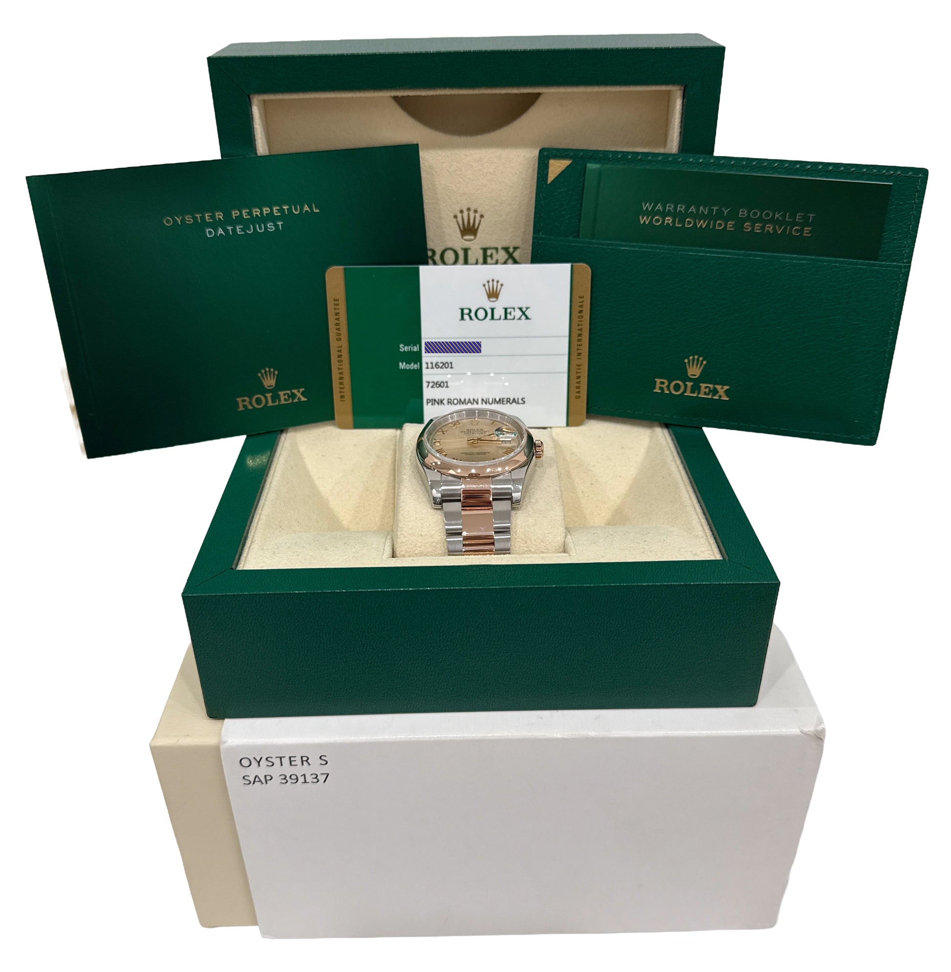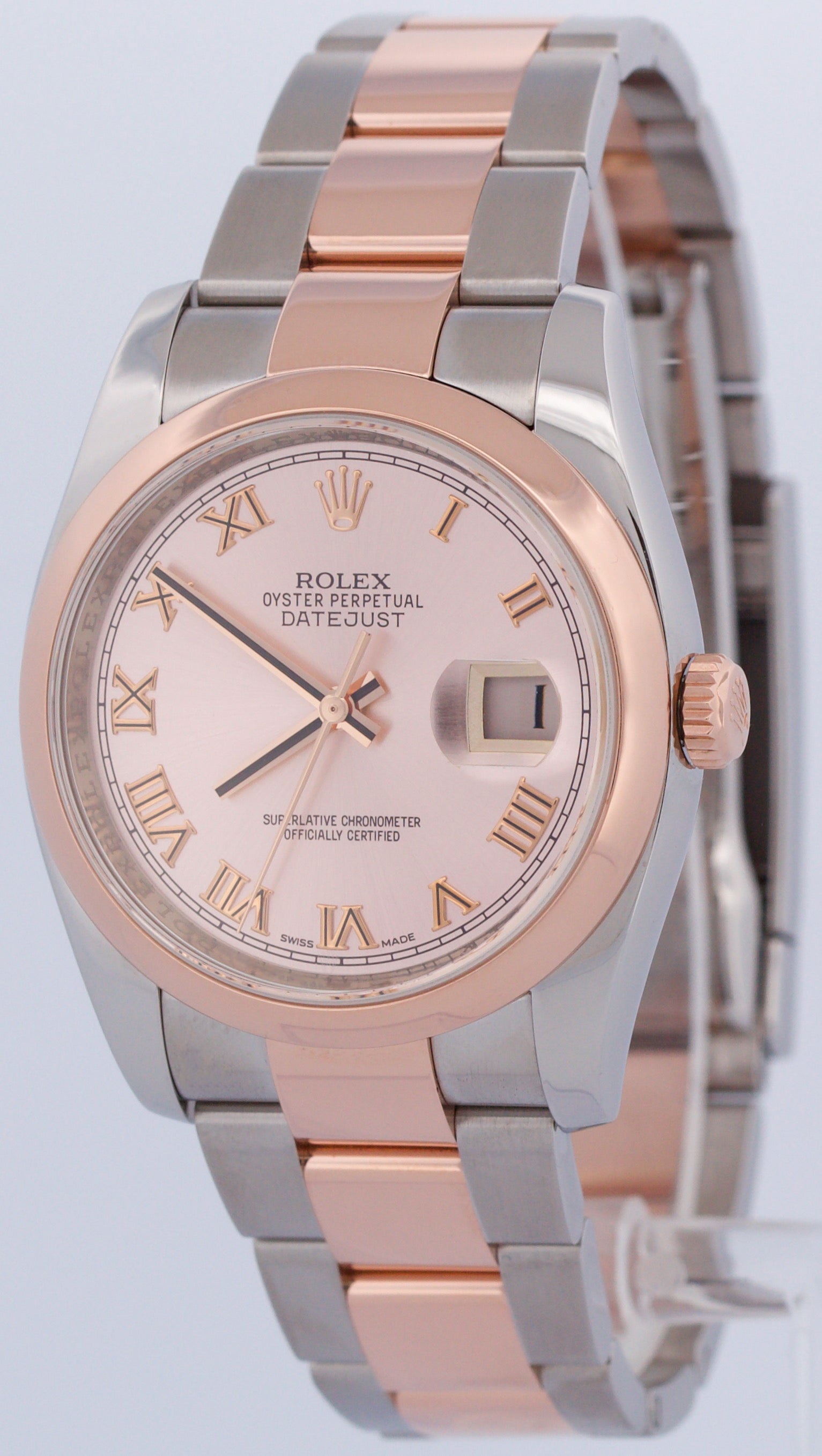 PAPERS Rolex DateJust 36mm PINK ROMAN 18K Rose Gold Steel OYSTER 116201 BOX