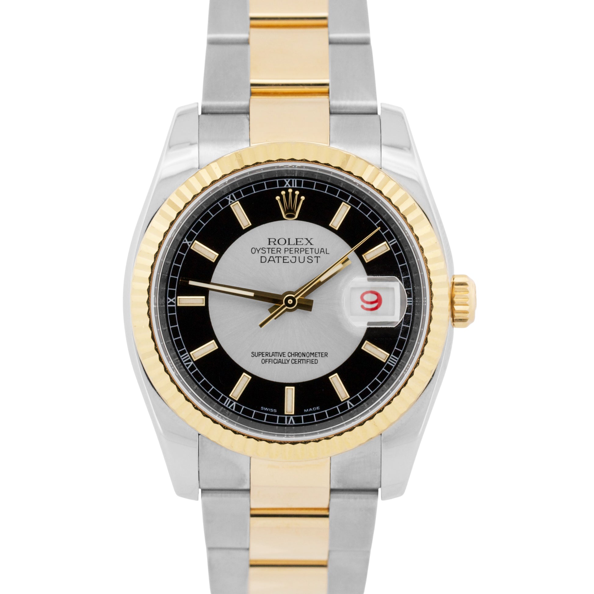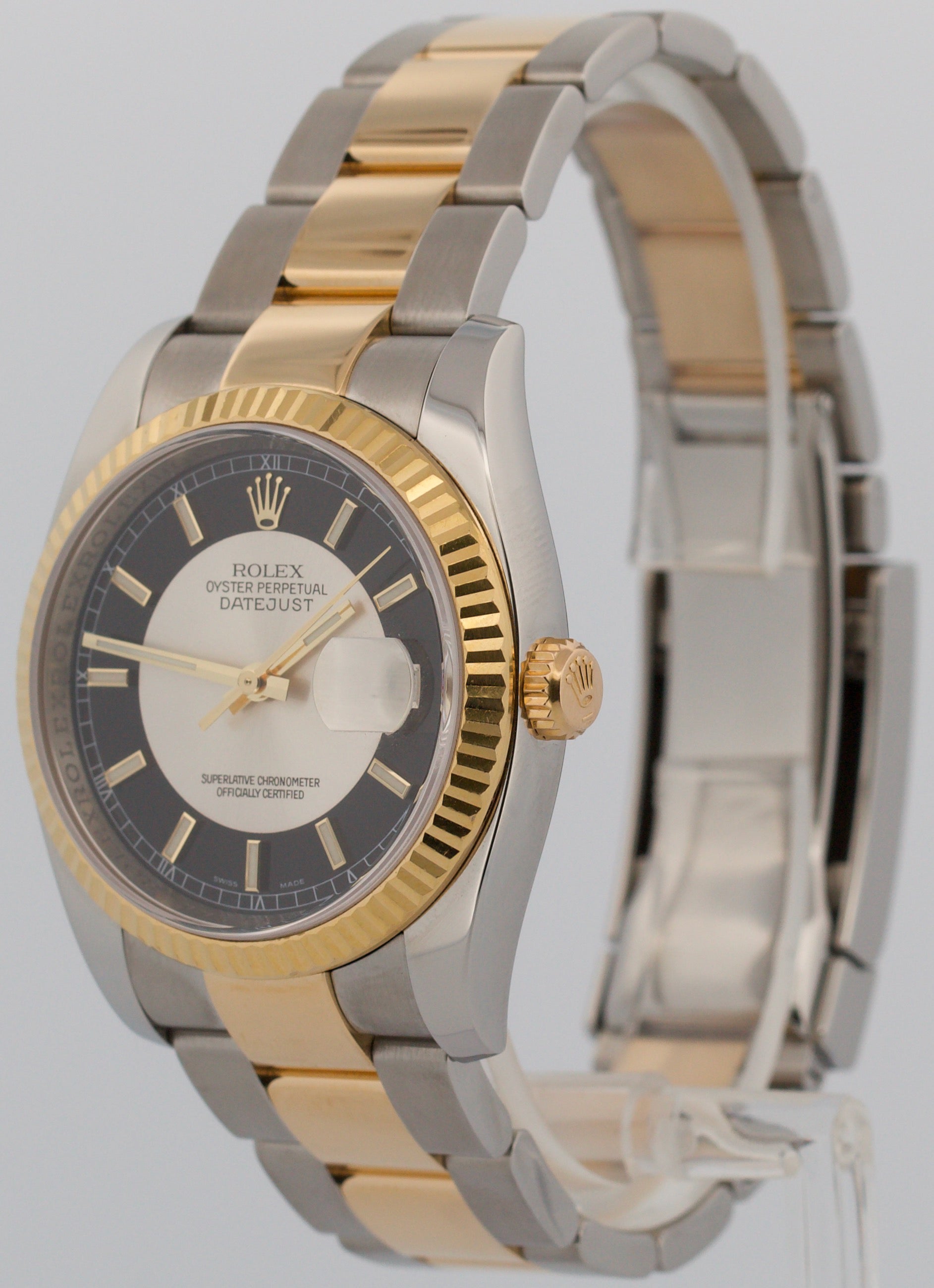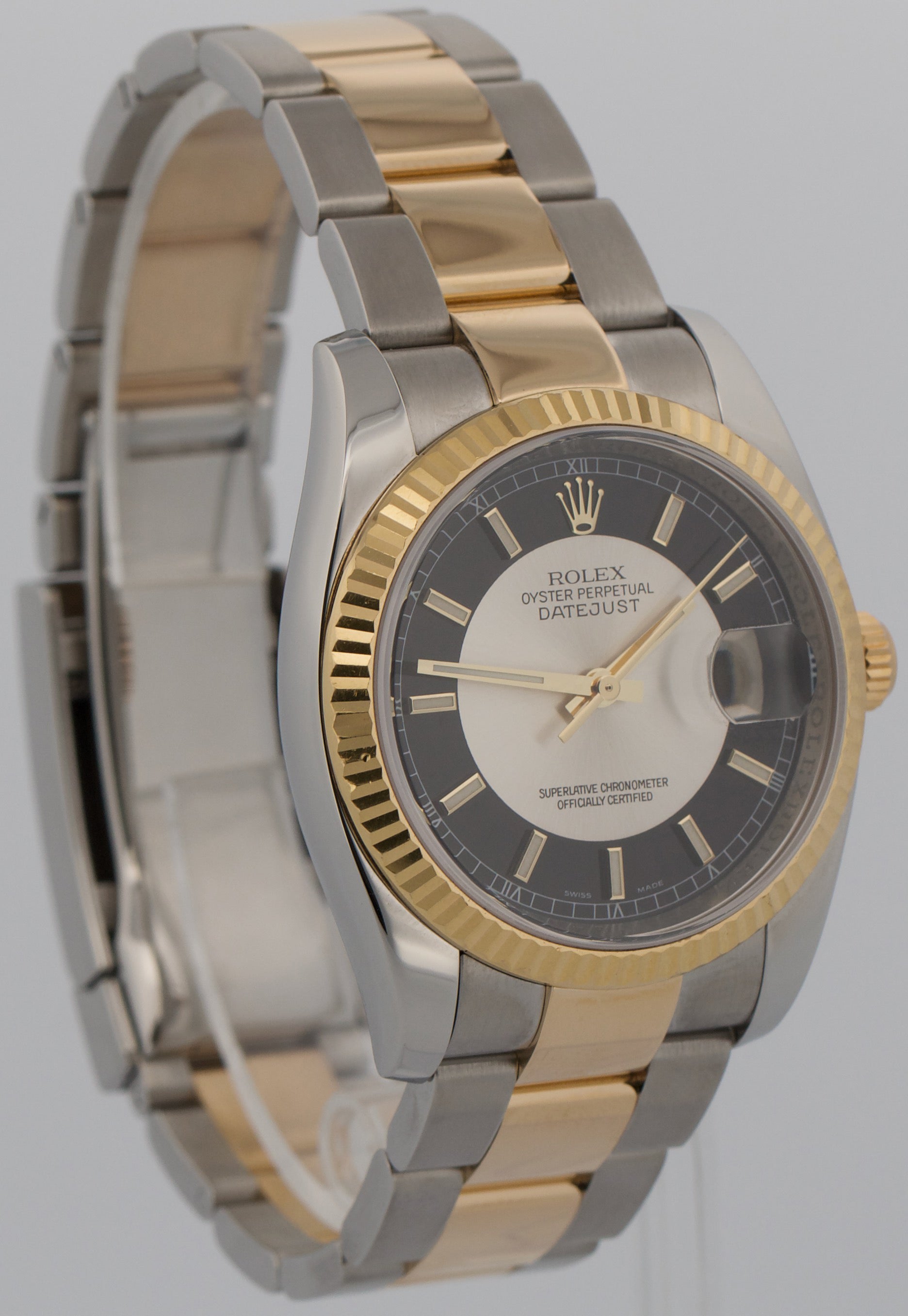PAPERS Rolex DateJust 36mm Silver Black TUXEDO DIAL 18K Gold OYSTER 116233 BOX
