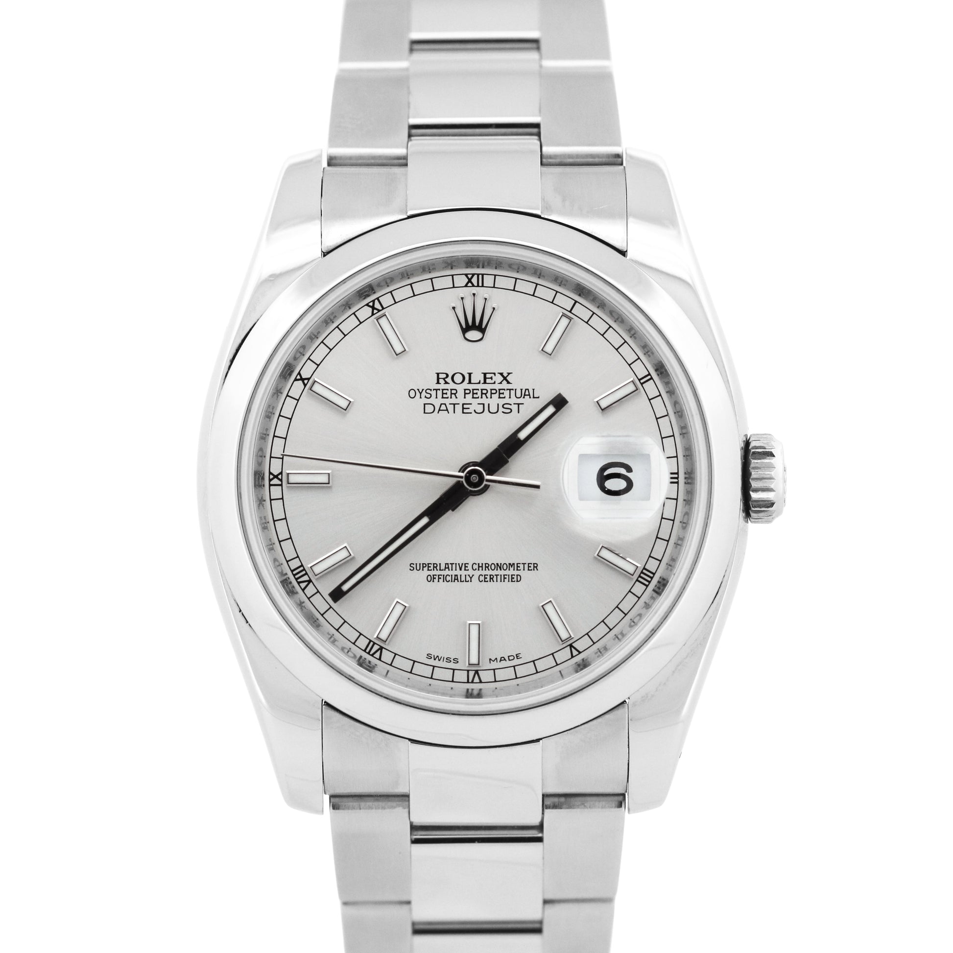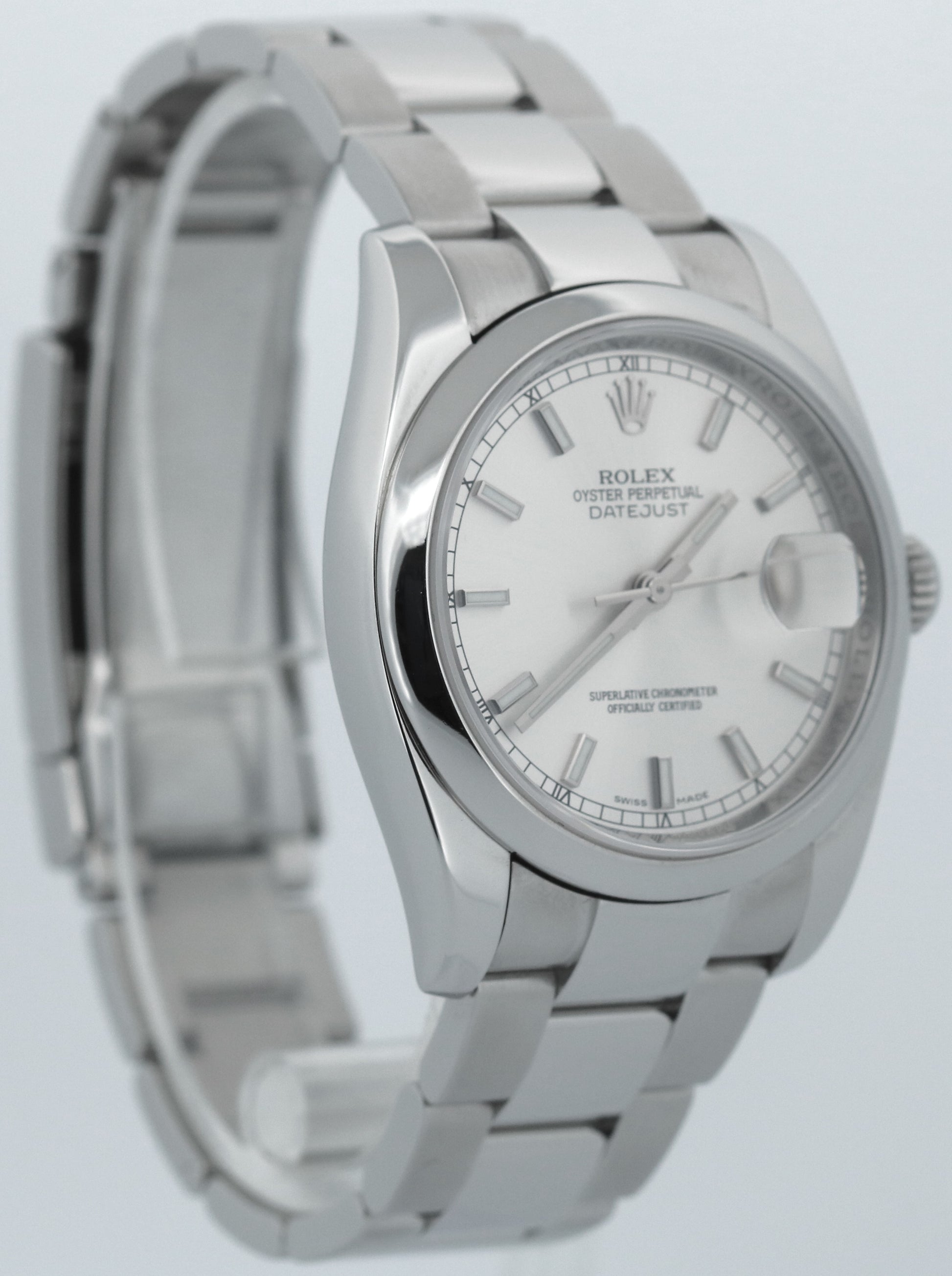 PAPERS Rolex DateJust 36mm SILVER Stainless Steel Smooth Oyster 116200 Watch BOX