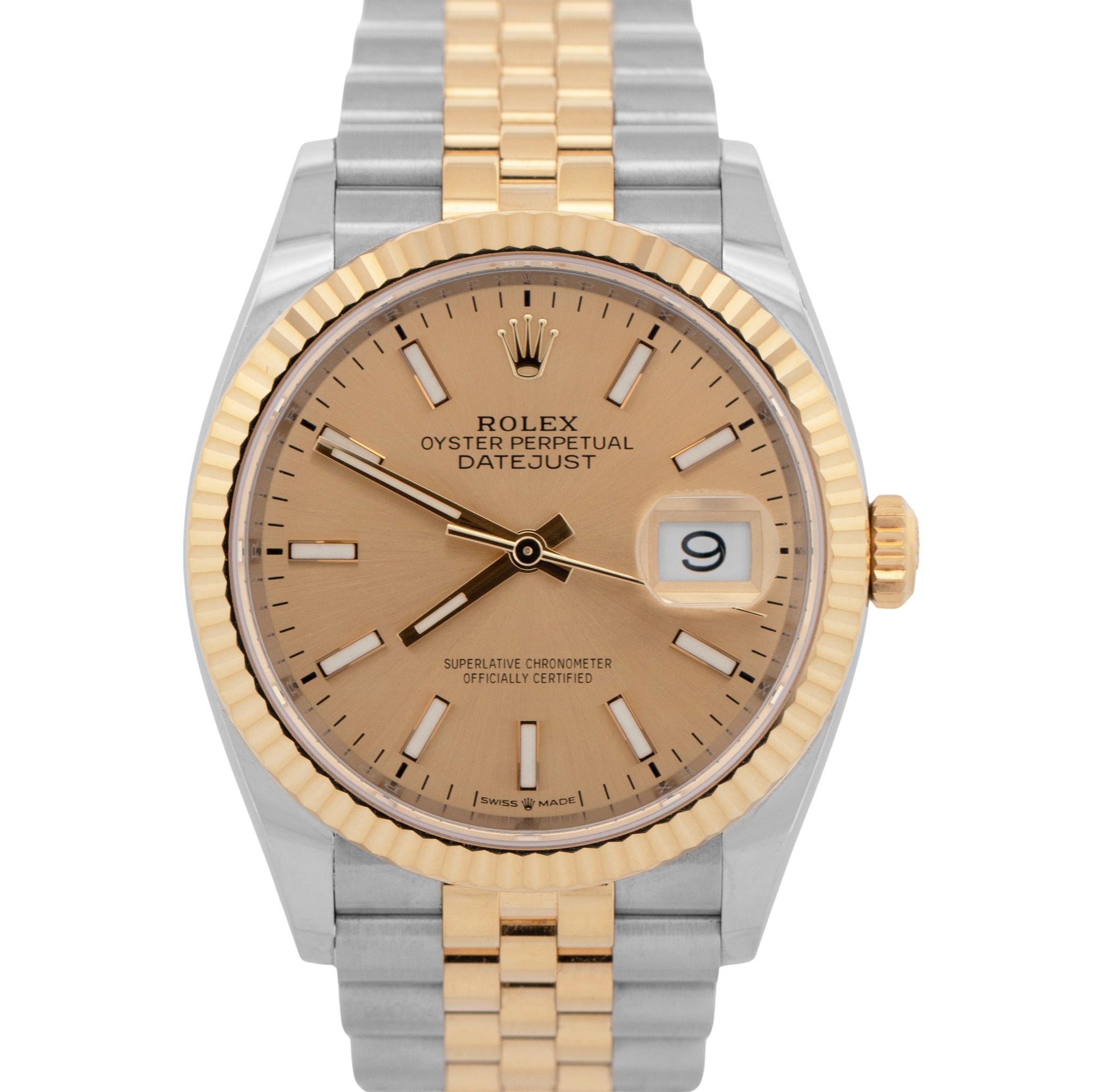 PAPERS Rolex DateJust CHAMPAGNE 36mm Steel Yellow Gold JUBILEE Watch 126233 BOX