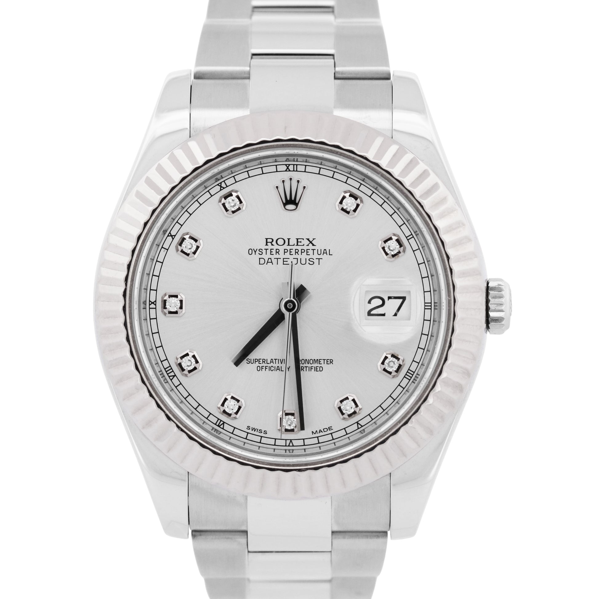 PAPERS Rolex DateJust II 41mm SILVER DIAMOND Steel 18K Gold OYSTER 116334 BOX