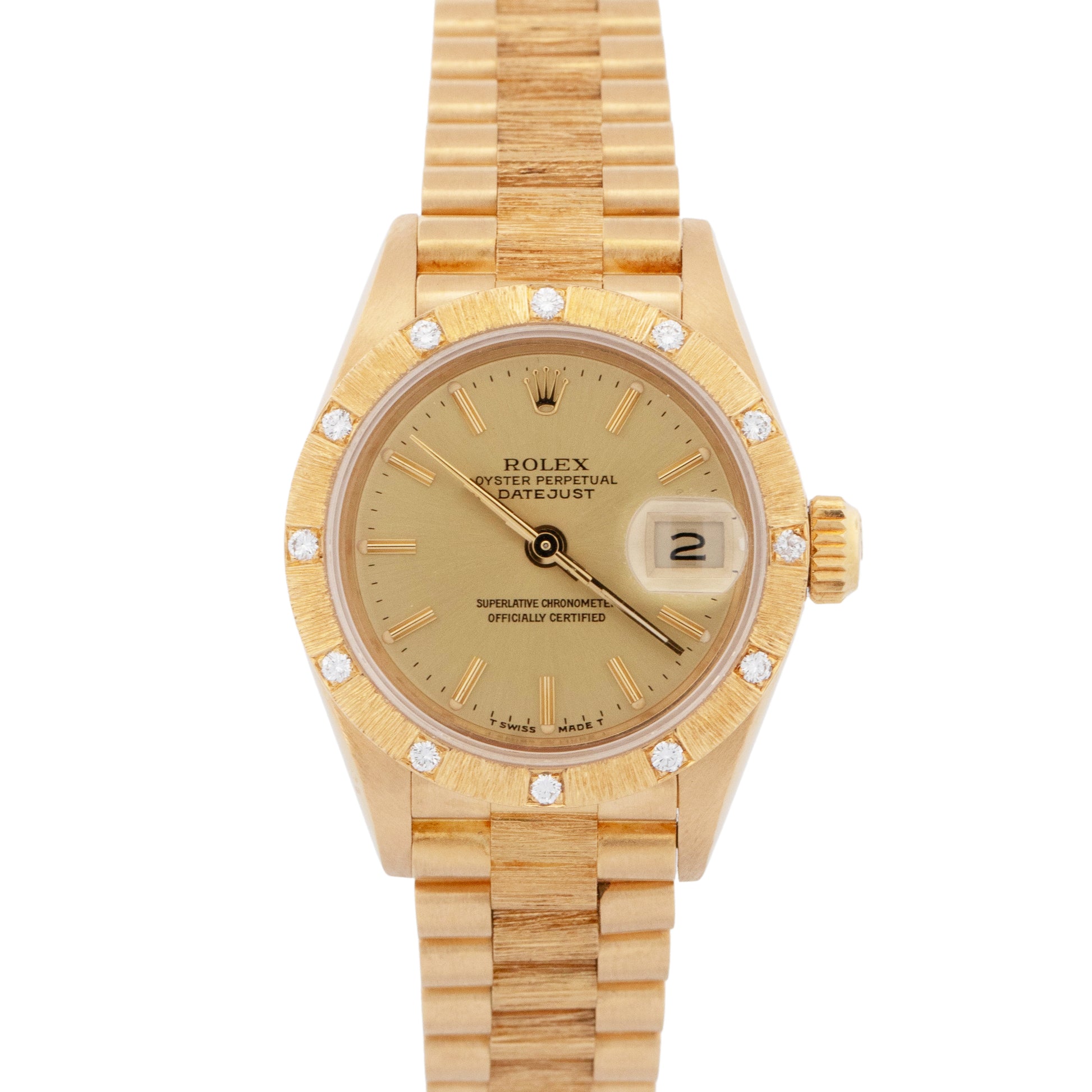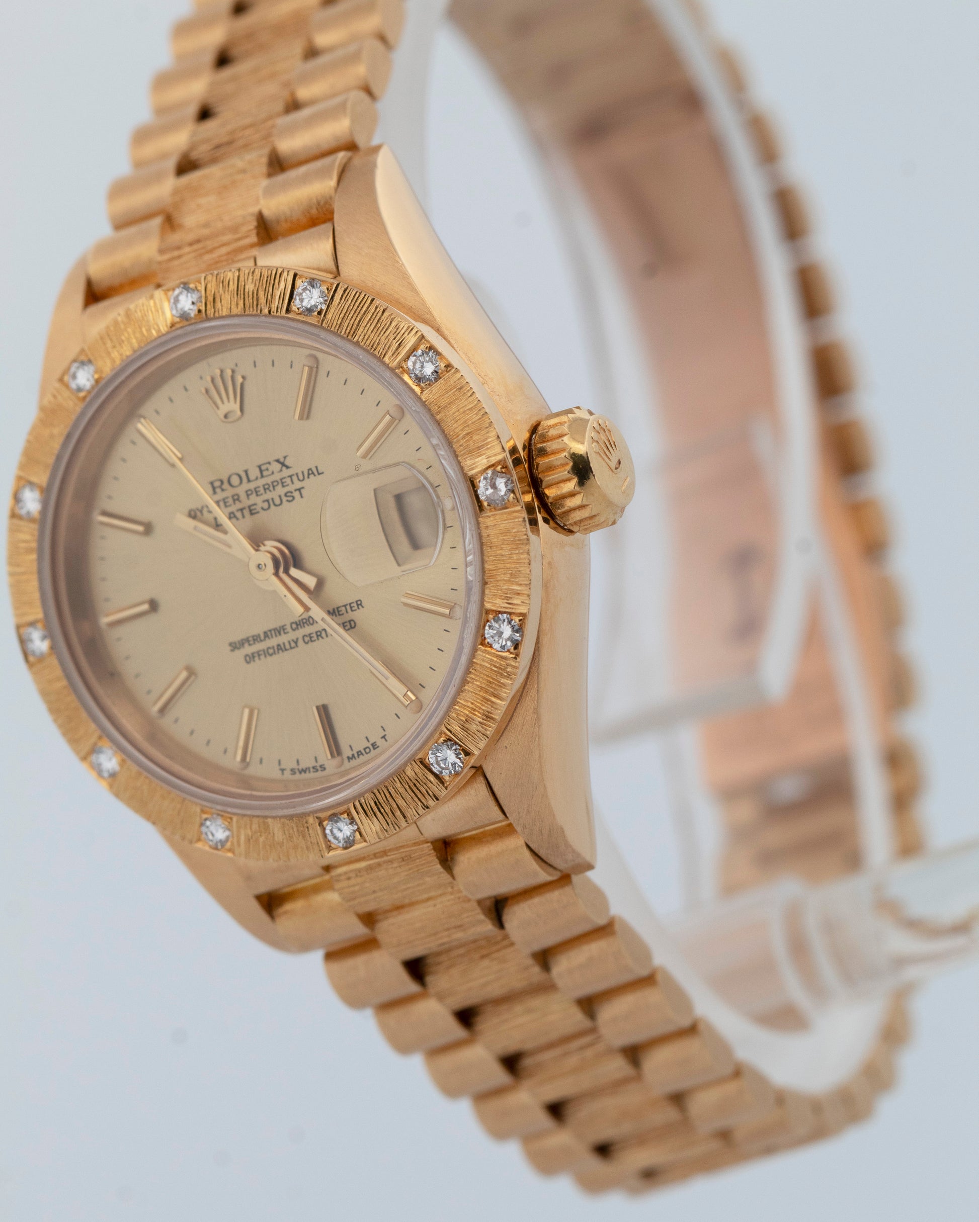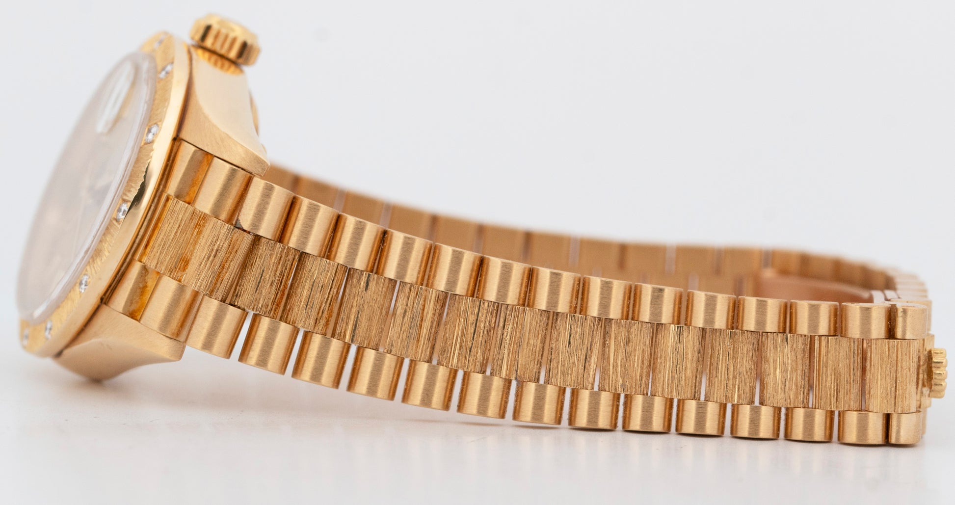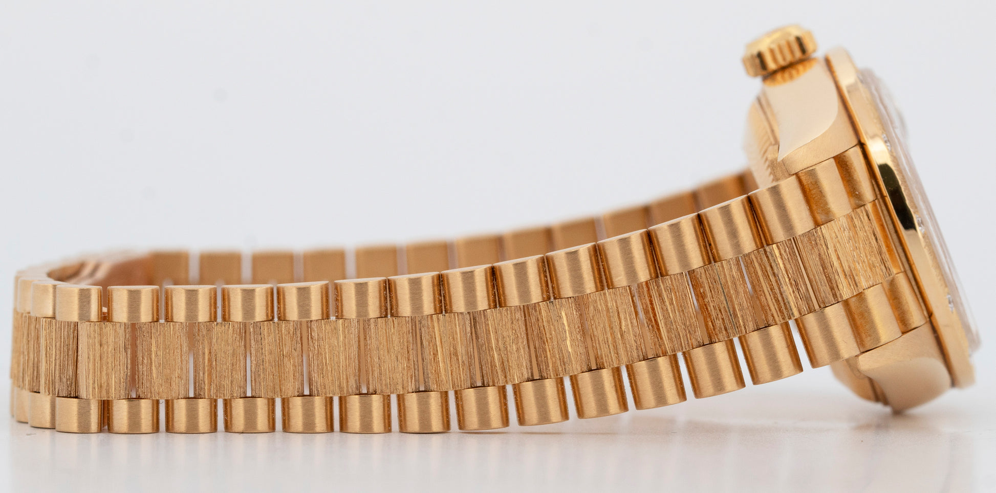 PAPERS Rolex DateJust President 26mm FACTORY DIAMOND BARK 18K Gold 69288 BOX