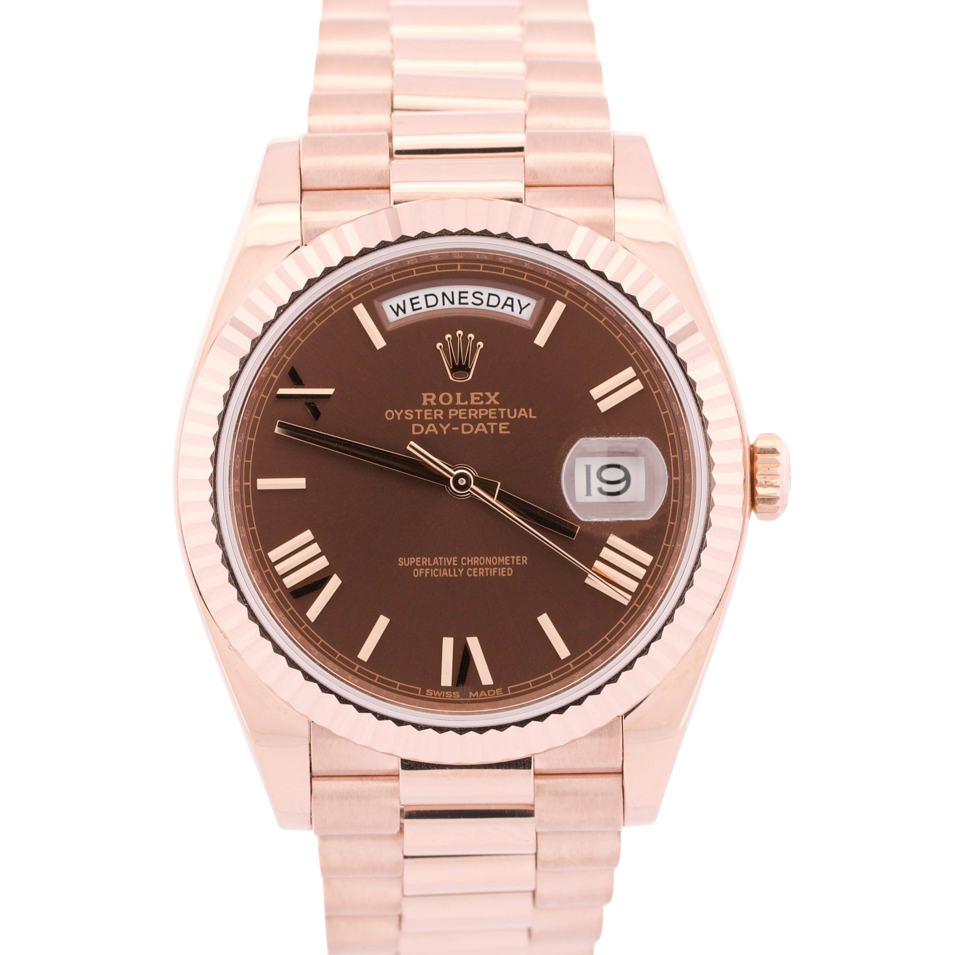 PAPERS Rolex Day-Date President 40mm CHOCOLATE ROMAN Brown 18K Gold 228235 BOX