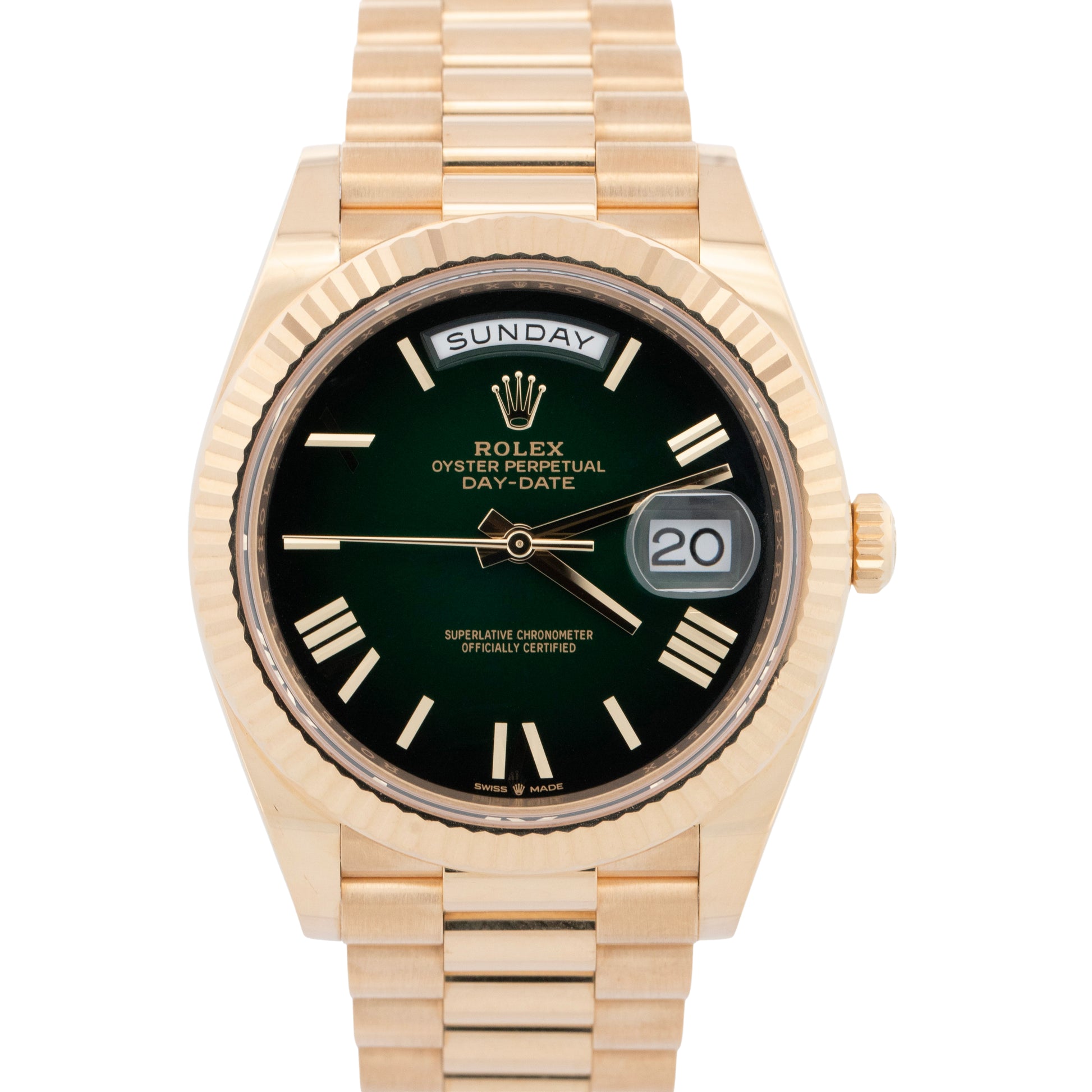 PAPERS Rolex Day-Date President 40mm GREEN OMBRE Yellow Gold 228238 Watch BOX