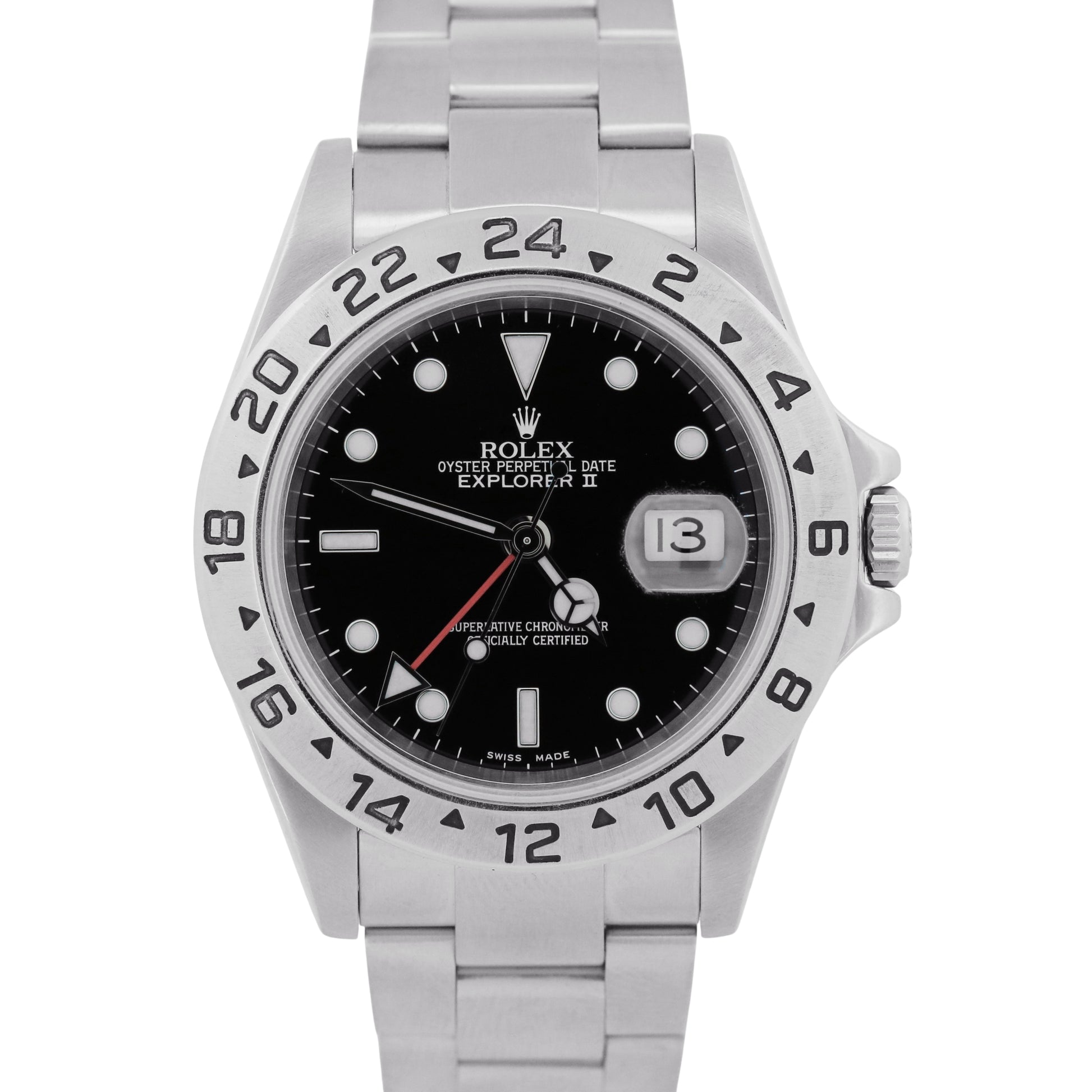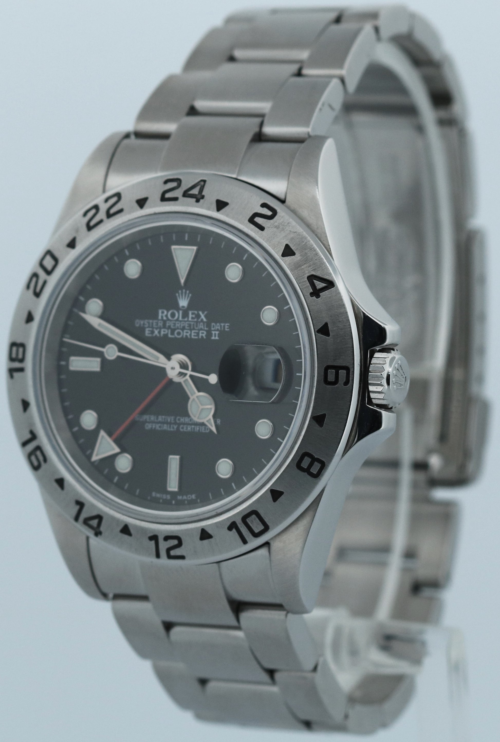 PAPERS Rolex Explorer II 40mm BLACK Steel NO-HOLES Red GMT Watch 16570 BOX