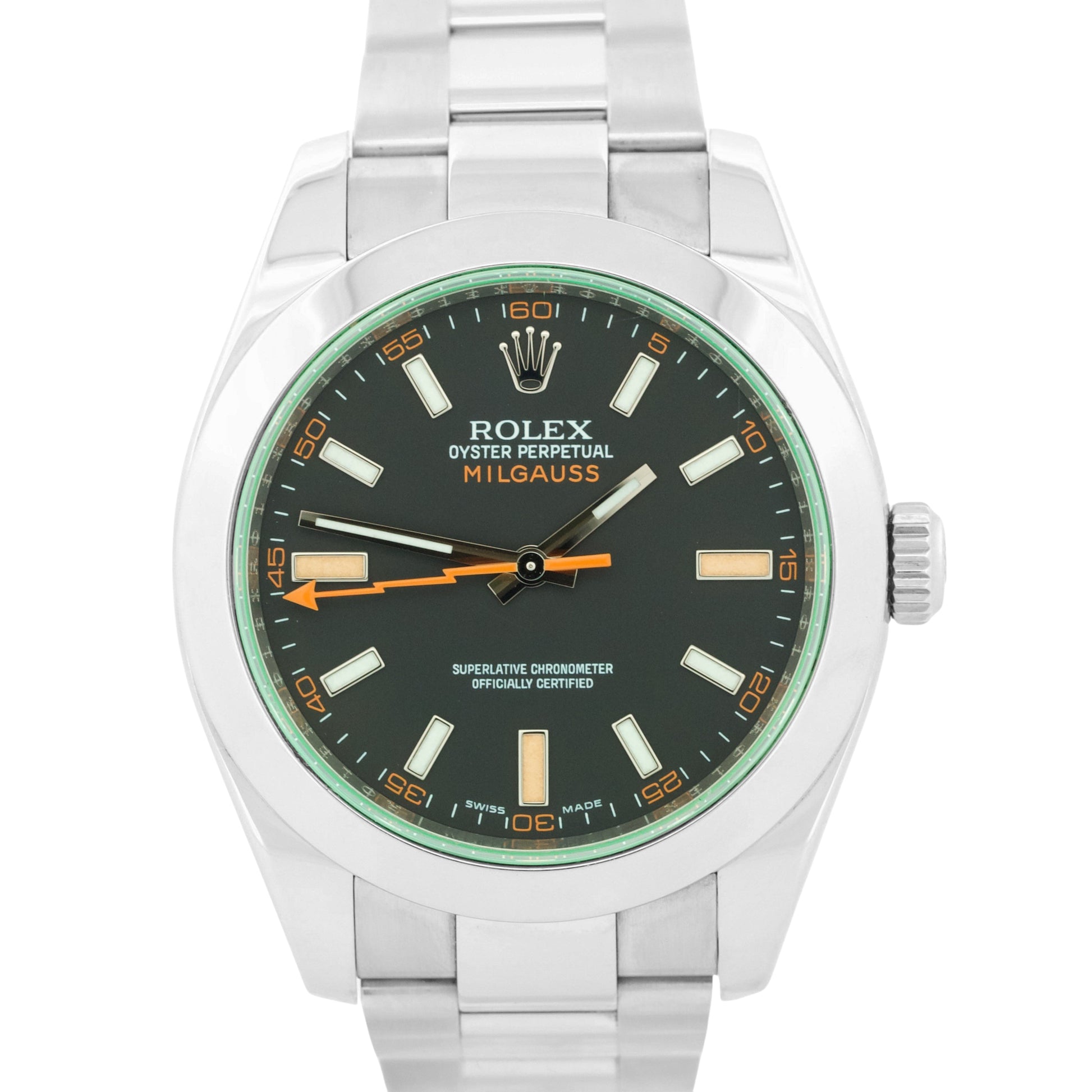 PAPERS Rolex Milgauss Green BLACK 40mm 116400 GV Stainless Steel Watch BOX