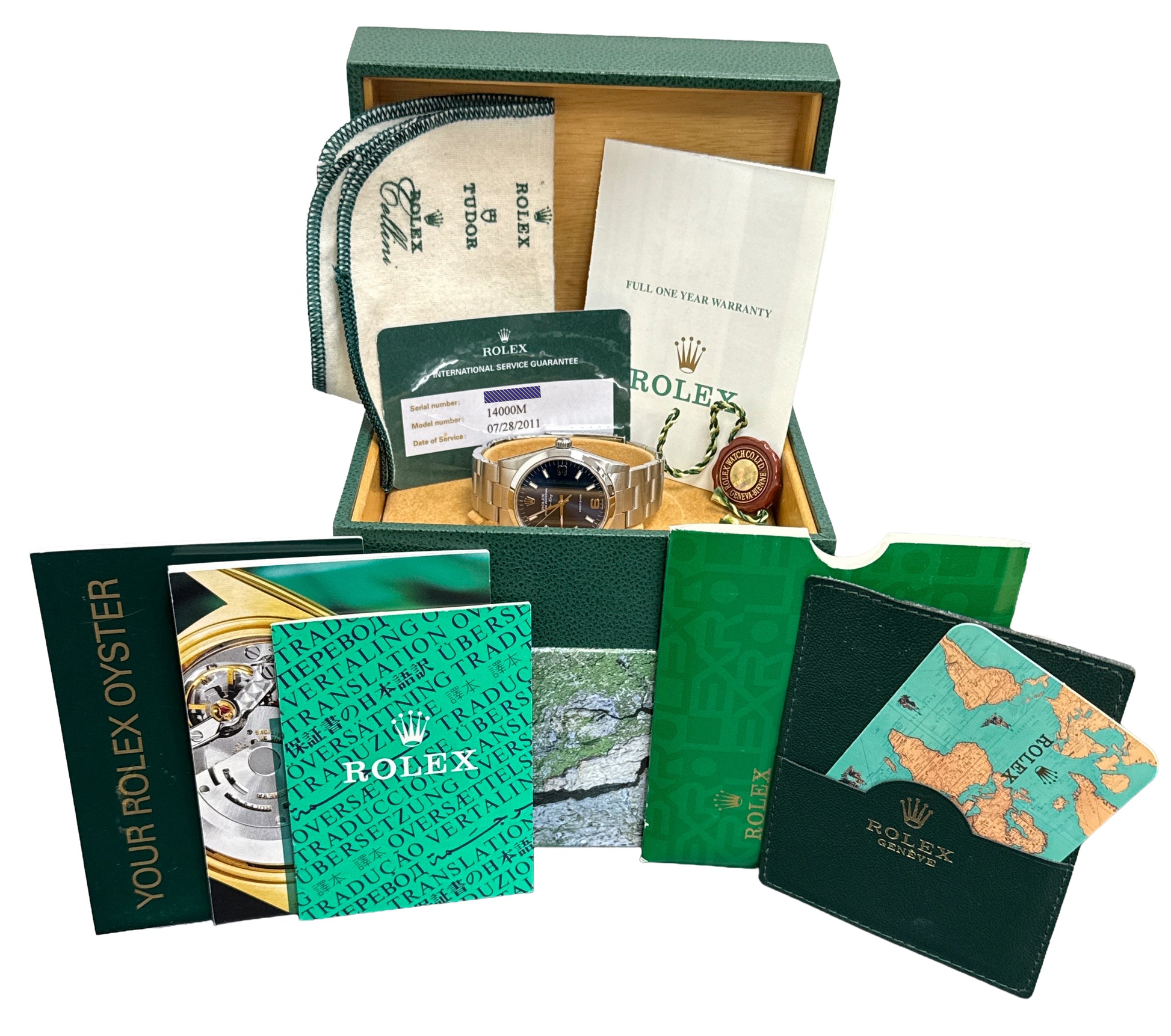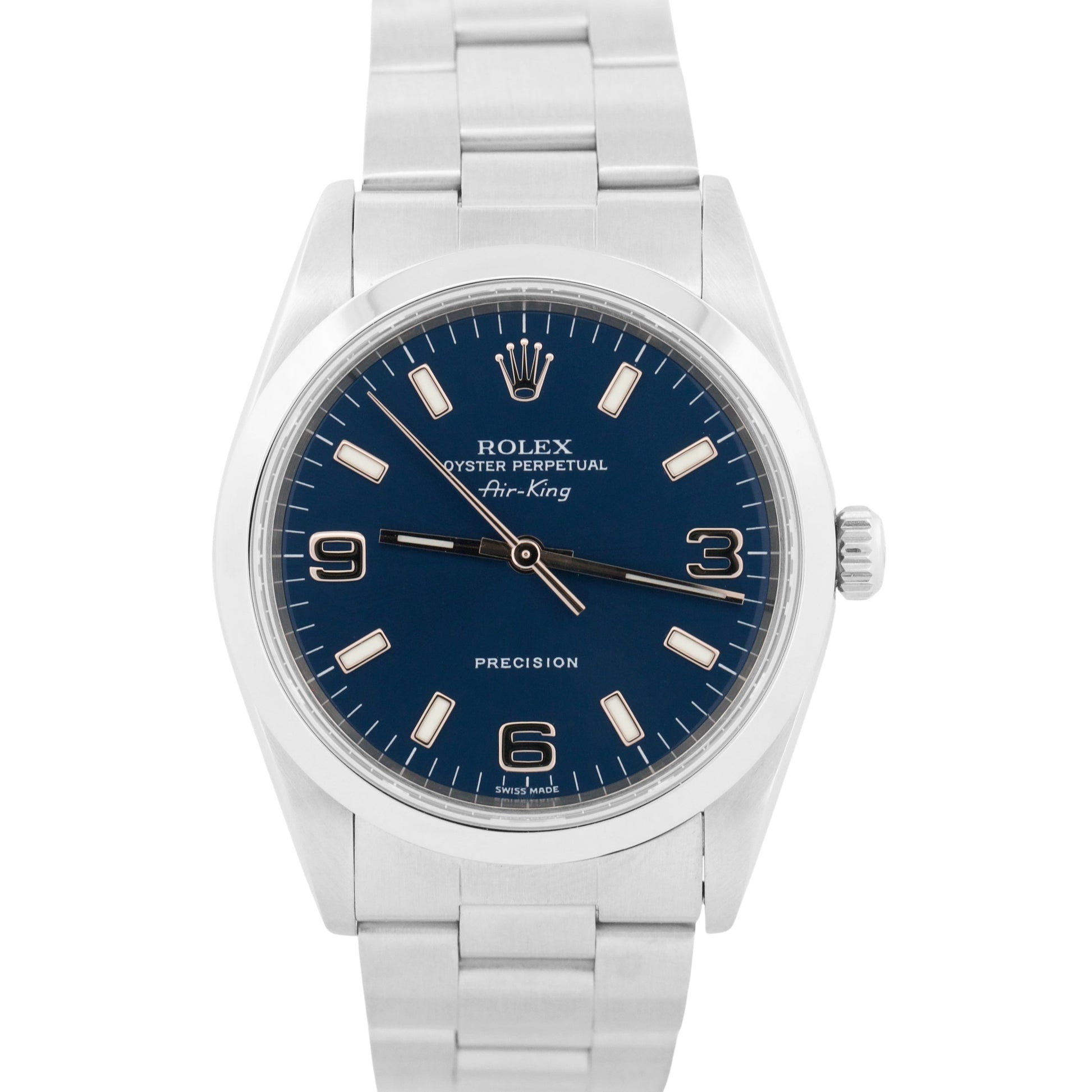 PAPERS Rolex Oyster Perpetual Air-King BLUE 34mm 3-6-9 RSC Watch 14000 M BOX