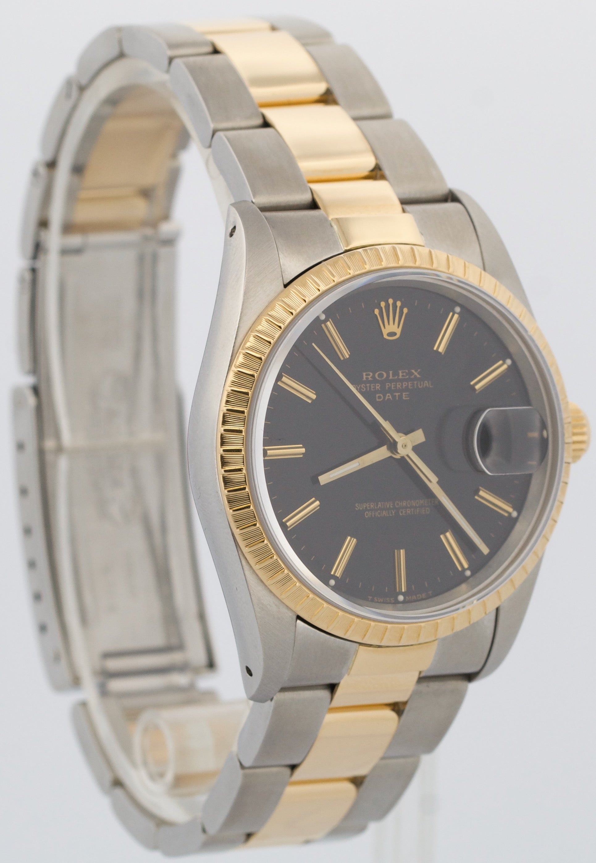 PAPERS Rolex Oyster Perpetual Date 34mm BLACK 18K Yellow Gold OYSTER 15233 BOX