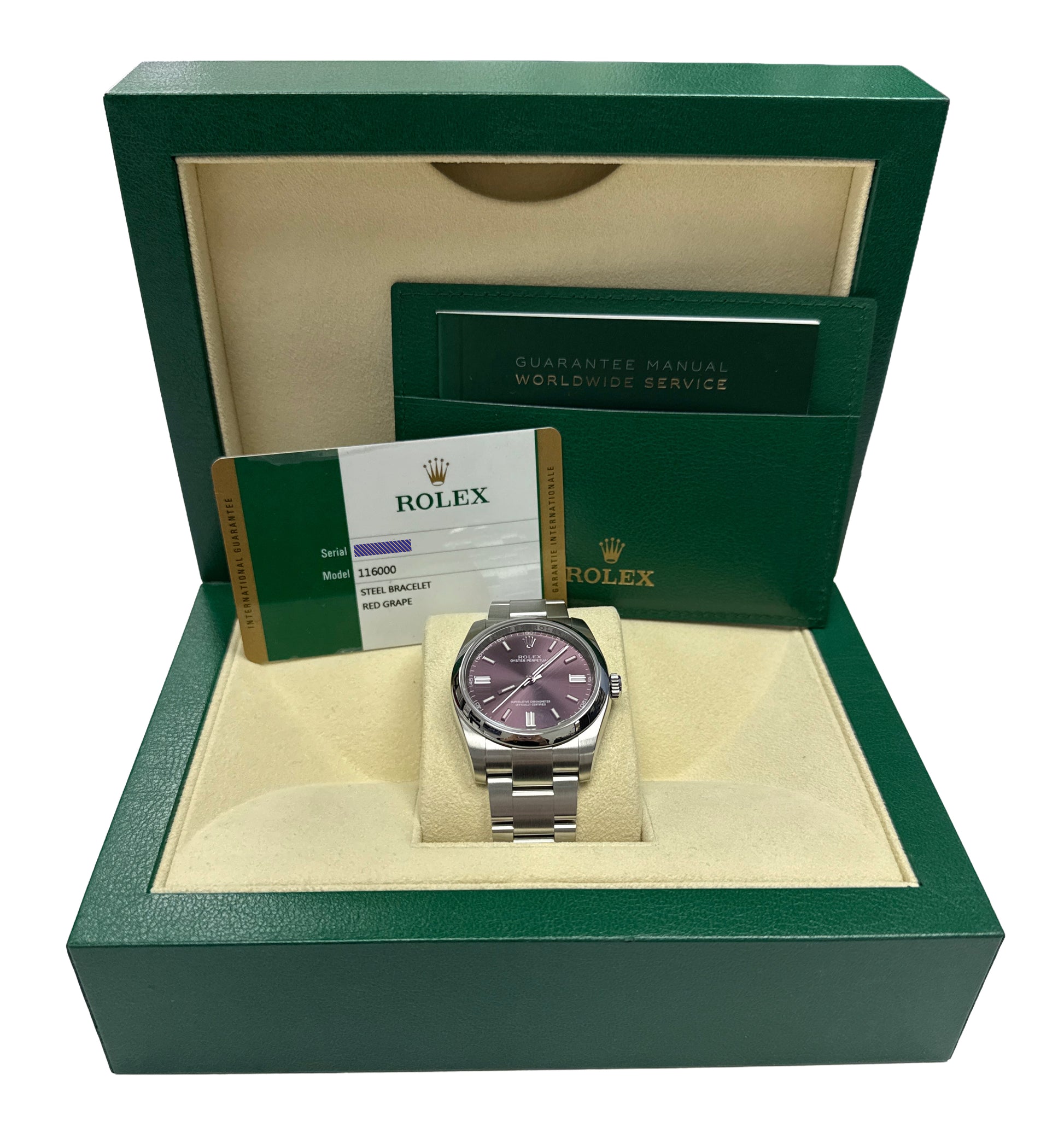 PAPERS Rolex Oyster Perpetual GRAPE Purple Stainless Steel 3-6-9 36mm 116000 BOX