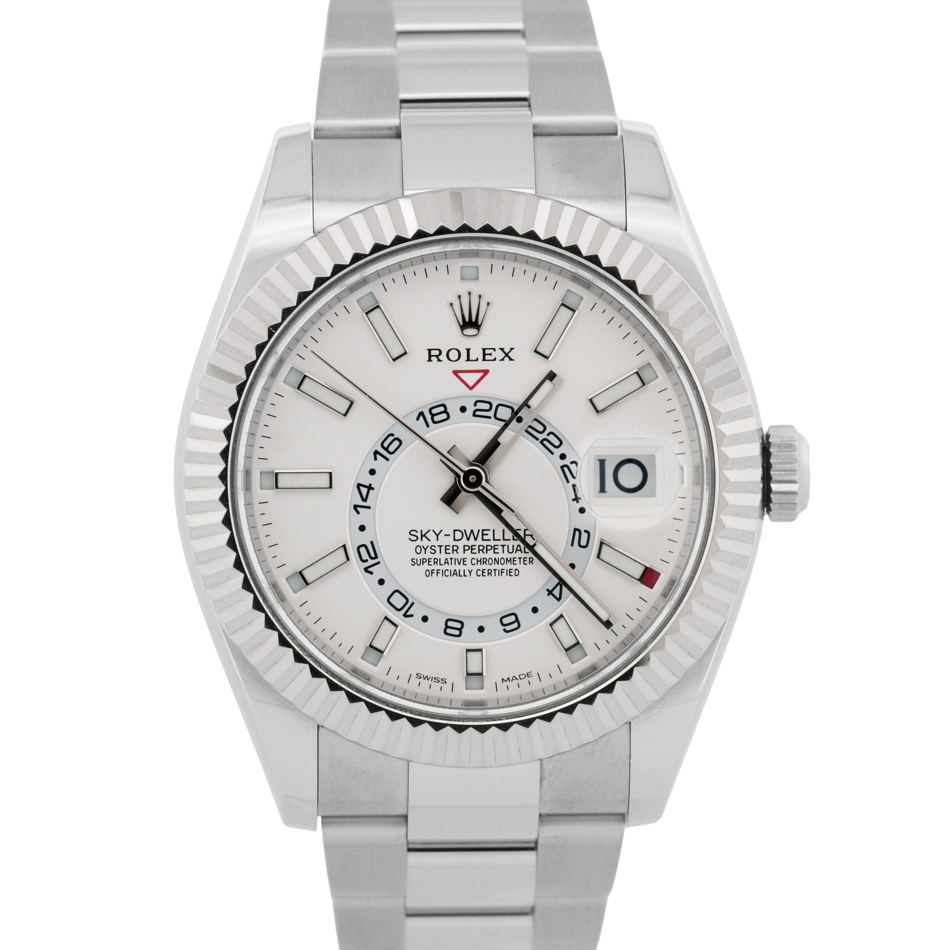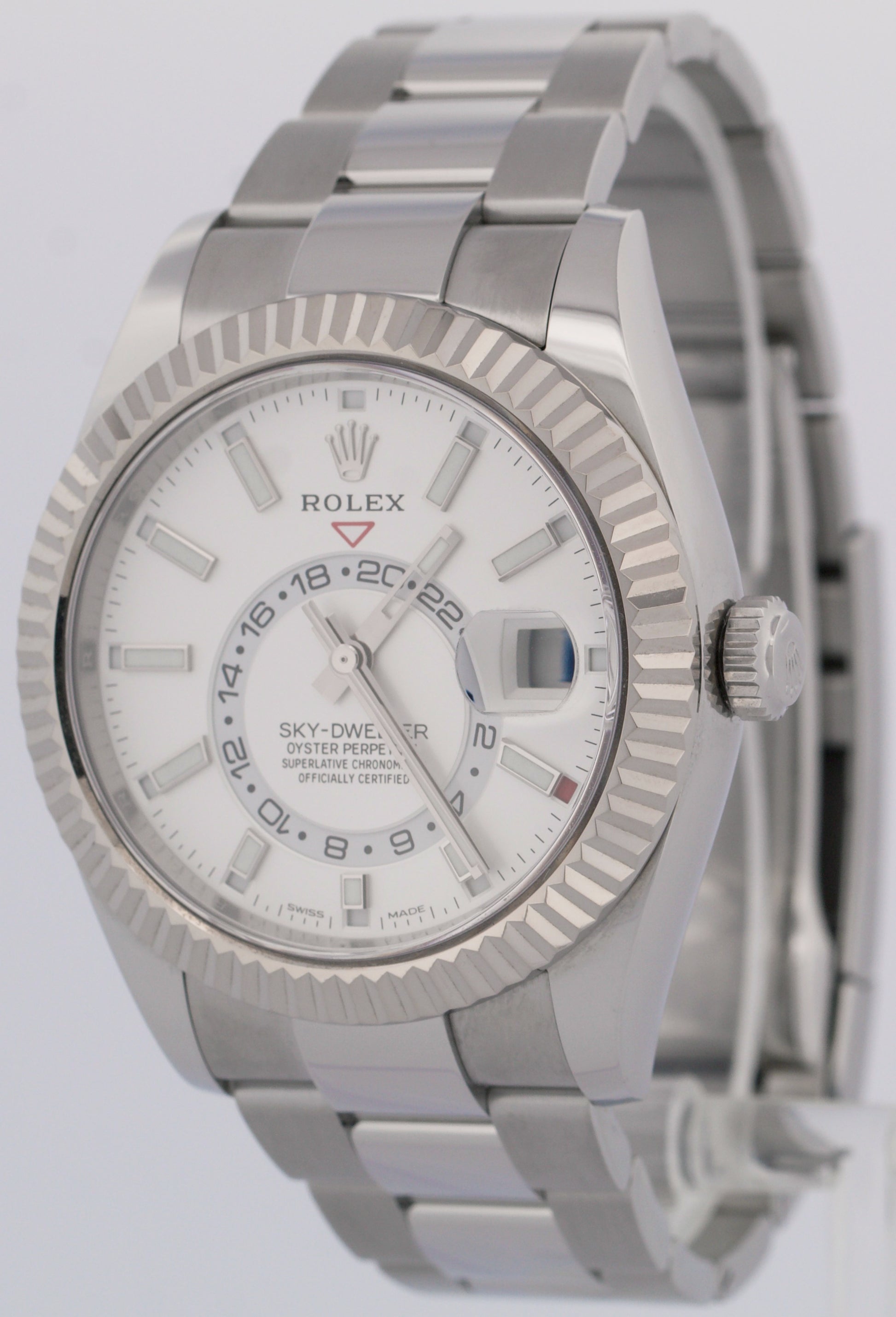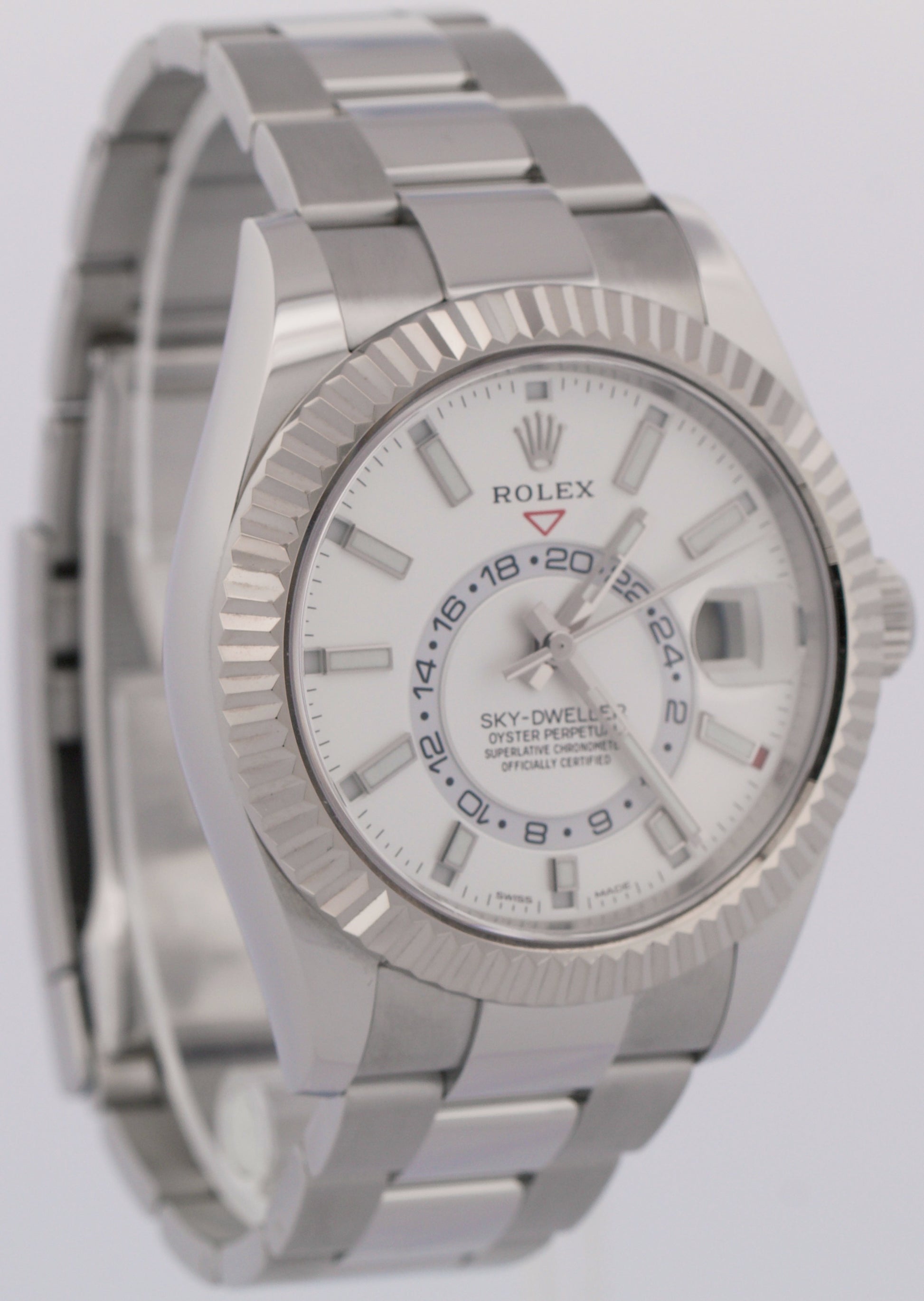 PAPERS Rolex Sky-Dweller WHITE 18K Gold Stainless 42mm OYSTER 326934 Watch BOX