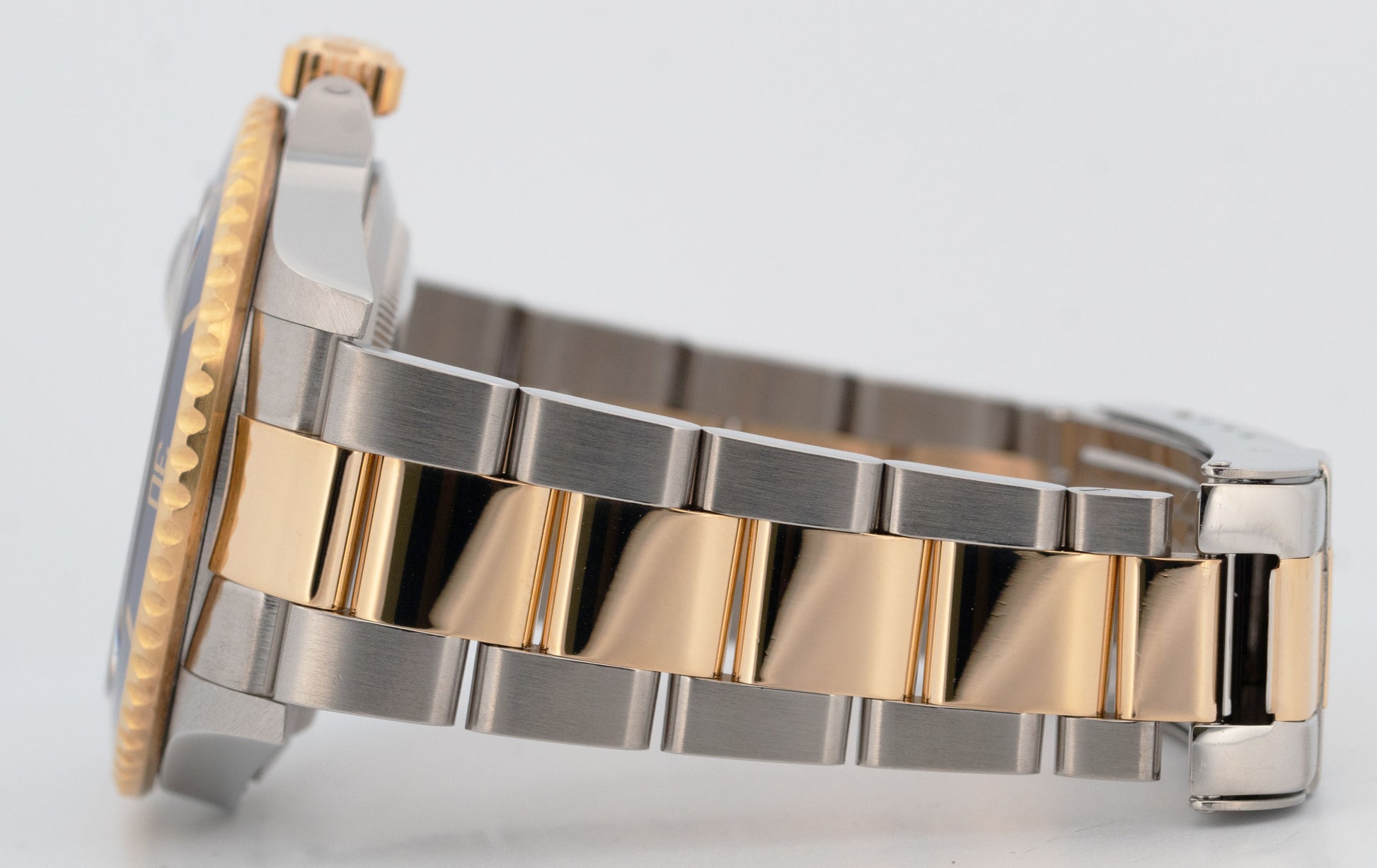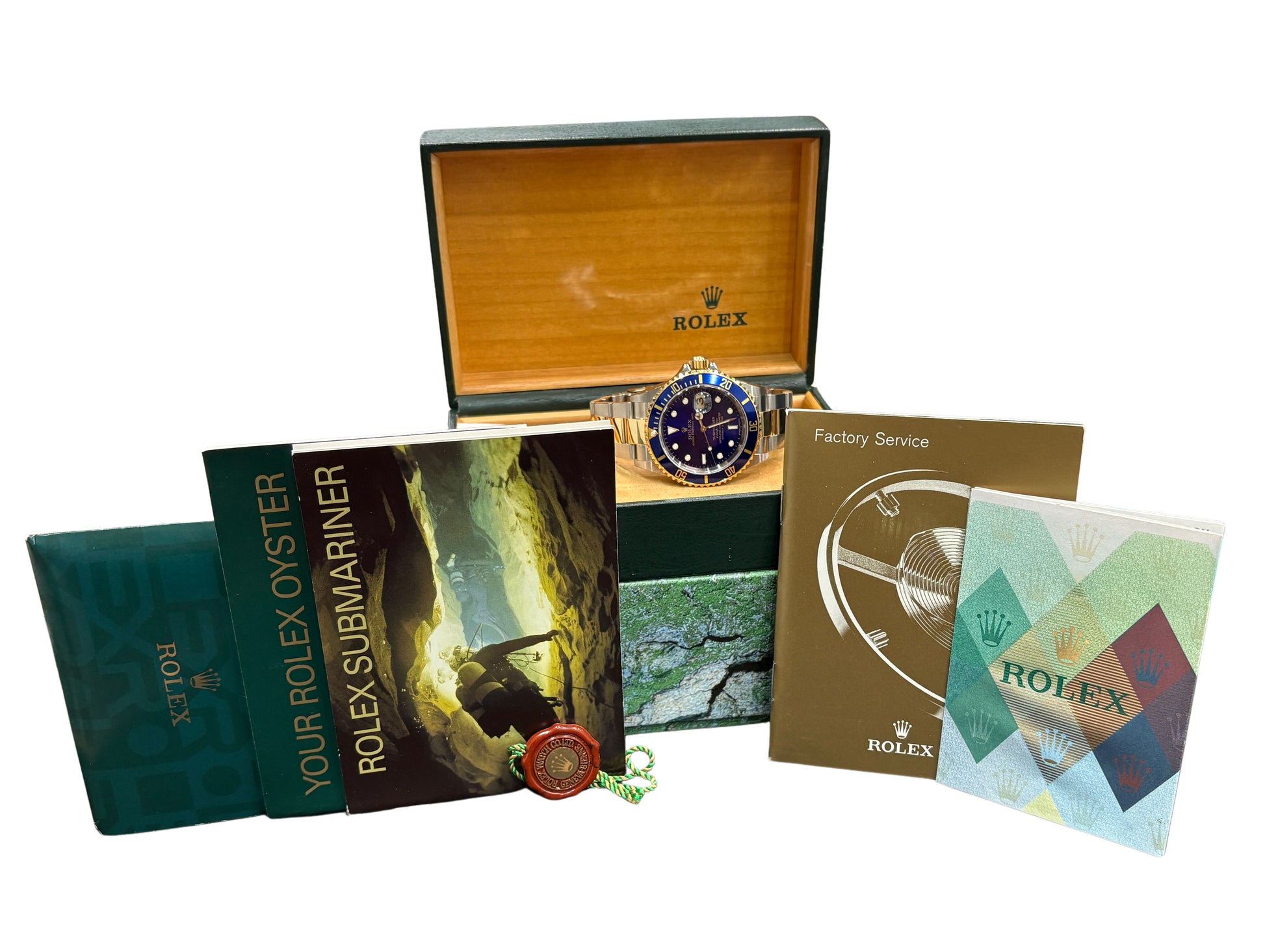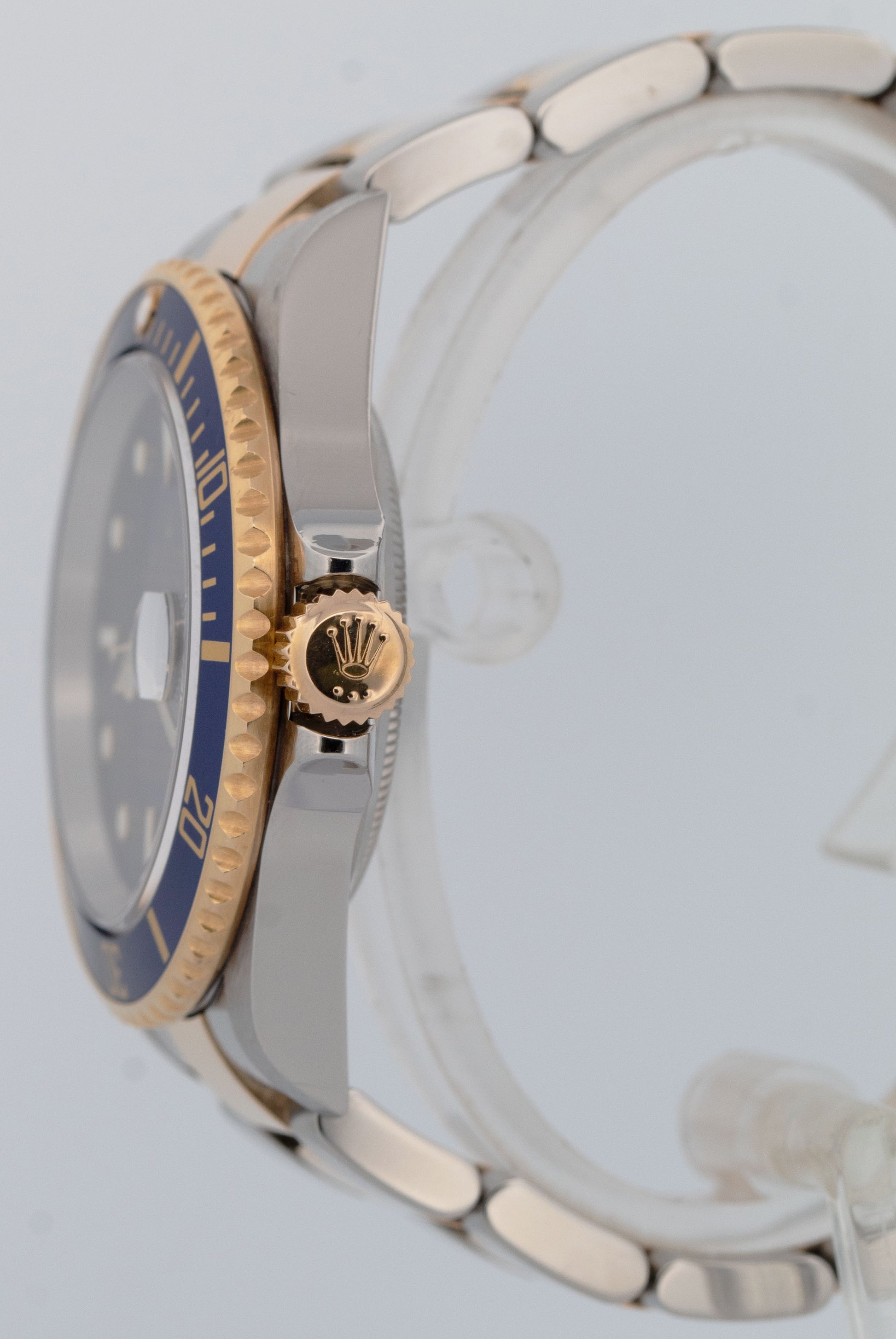 PAPERS Rolex Submariner 40mm Blue NO-HOLE 18K Yellow GOLD BUCKLE Watch 16613 BOX