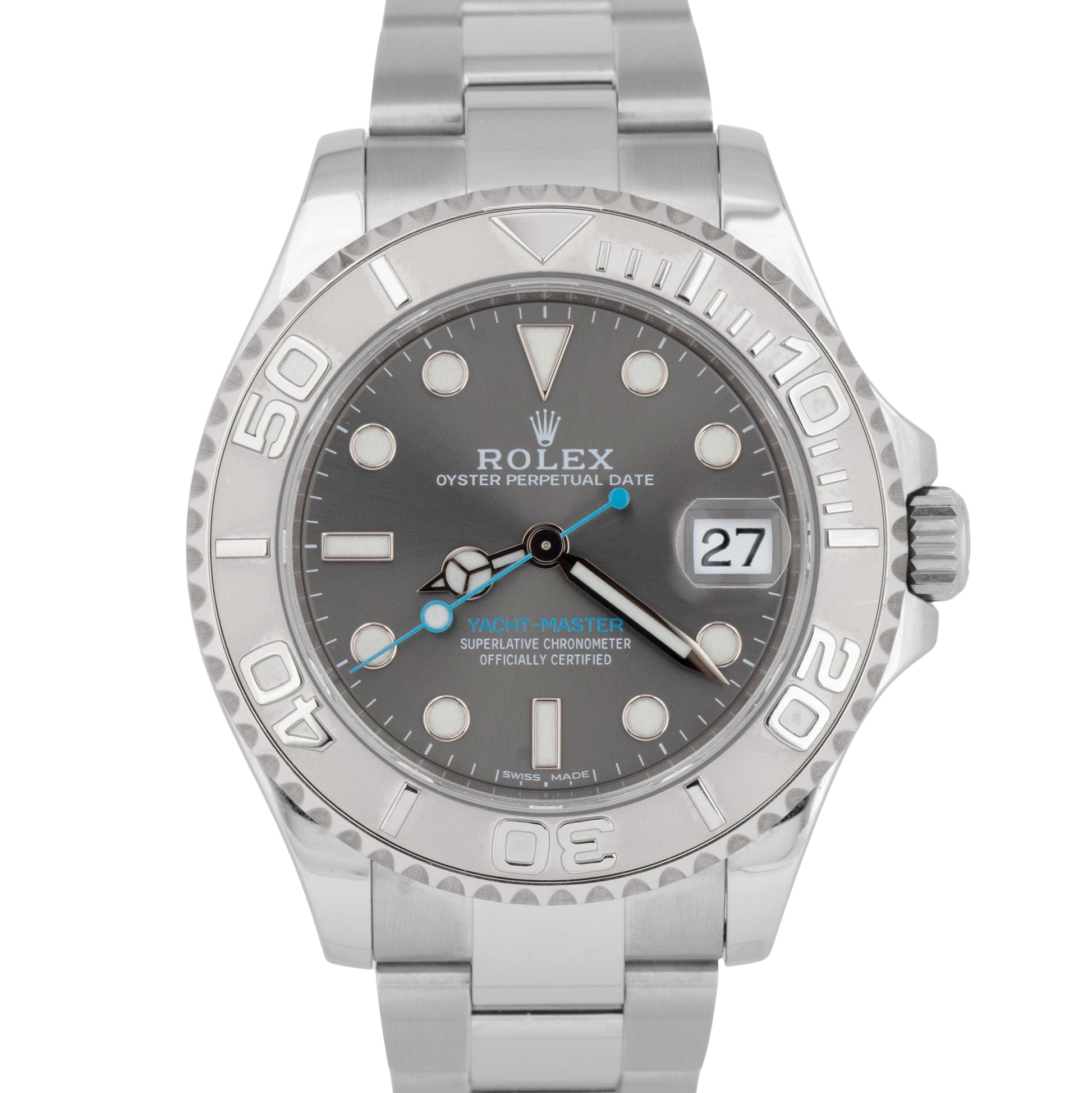 PAPERS Rolex Yacht-Master RHODIUM Gray Blue 37mm Stainless Steel 268622 BOX