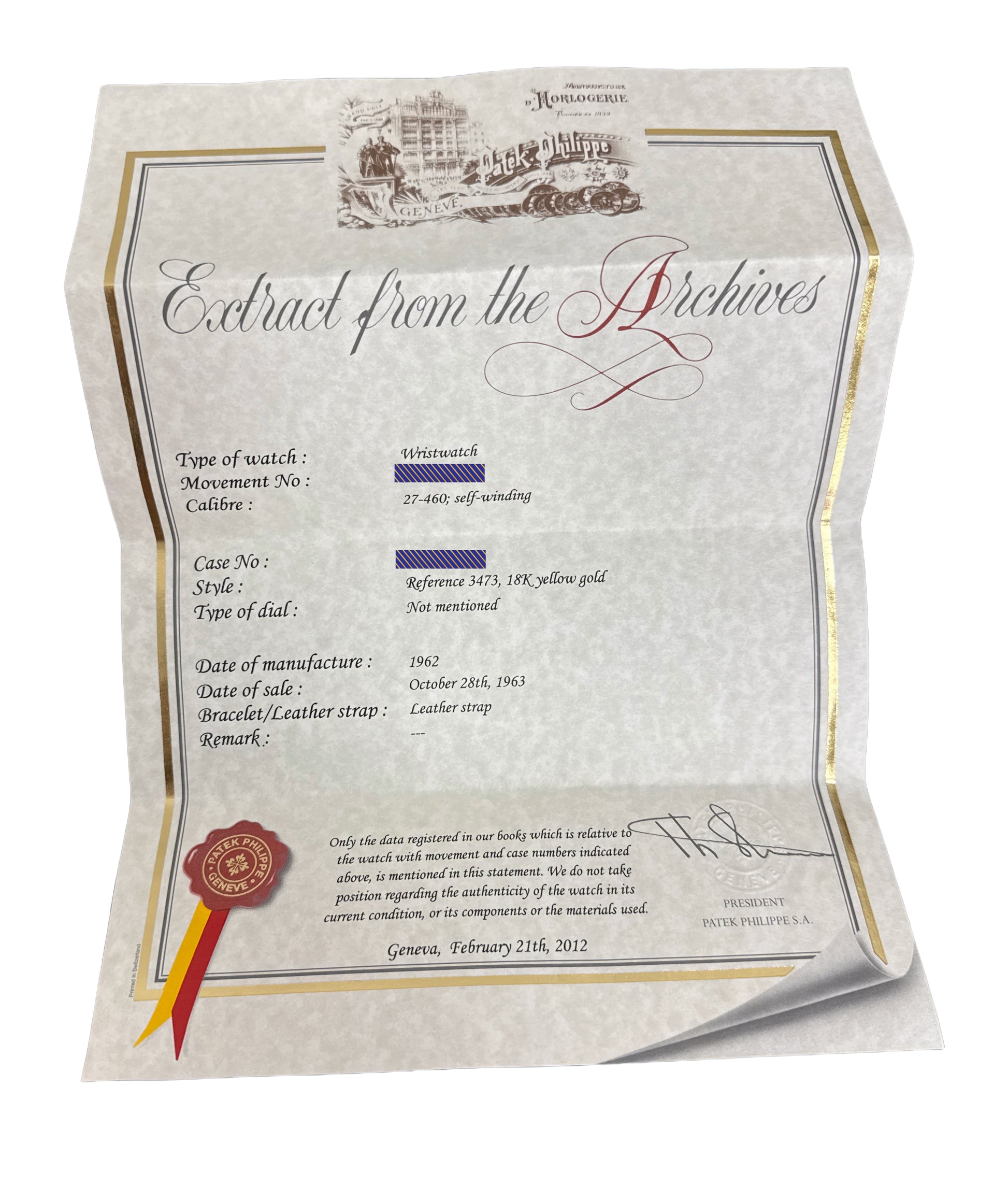 | Serial Number | 262**** / 111**** (The Patek Philippe Archives are dated FEBRUARY of 2012. This watch was manufactured in 1962) |