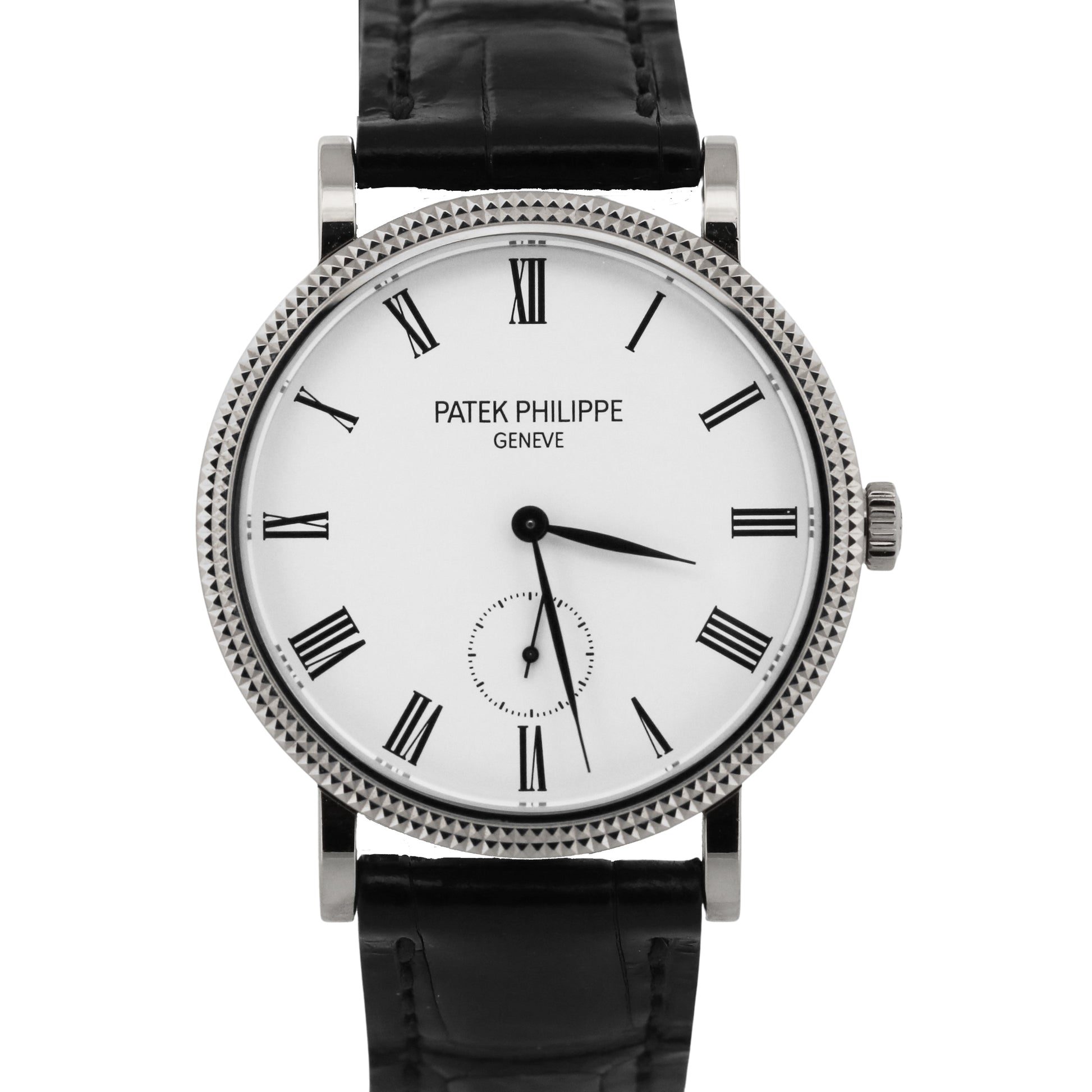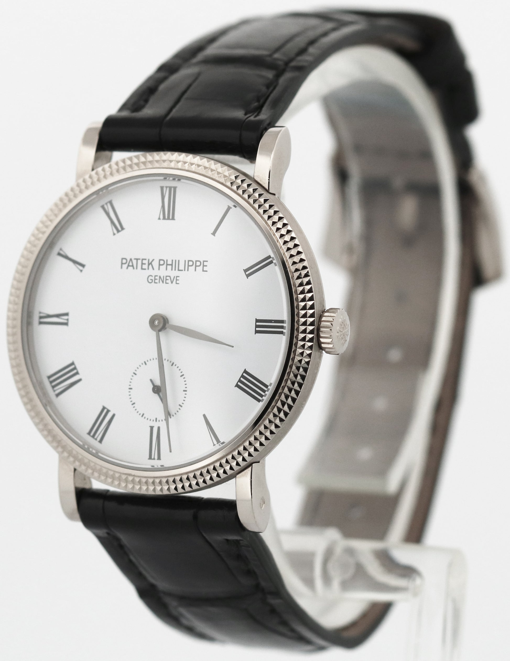 Patek Philippe Calatrava HOBNAIL Roman 18K White Gold Leather 31mm Watch 7119G