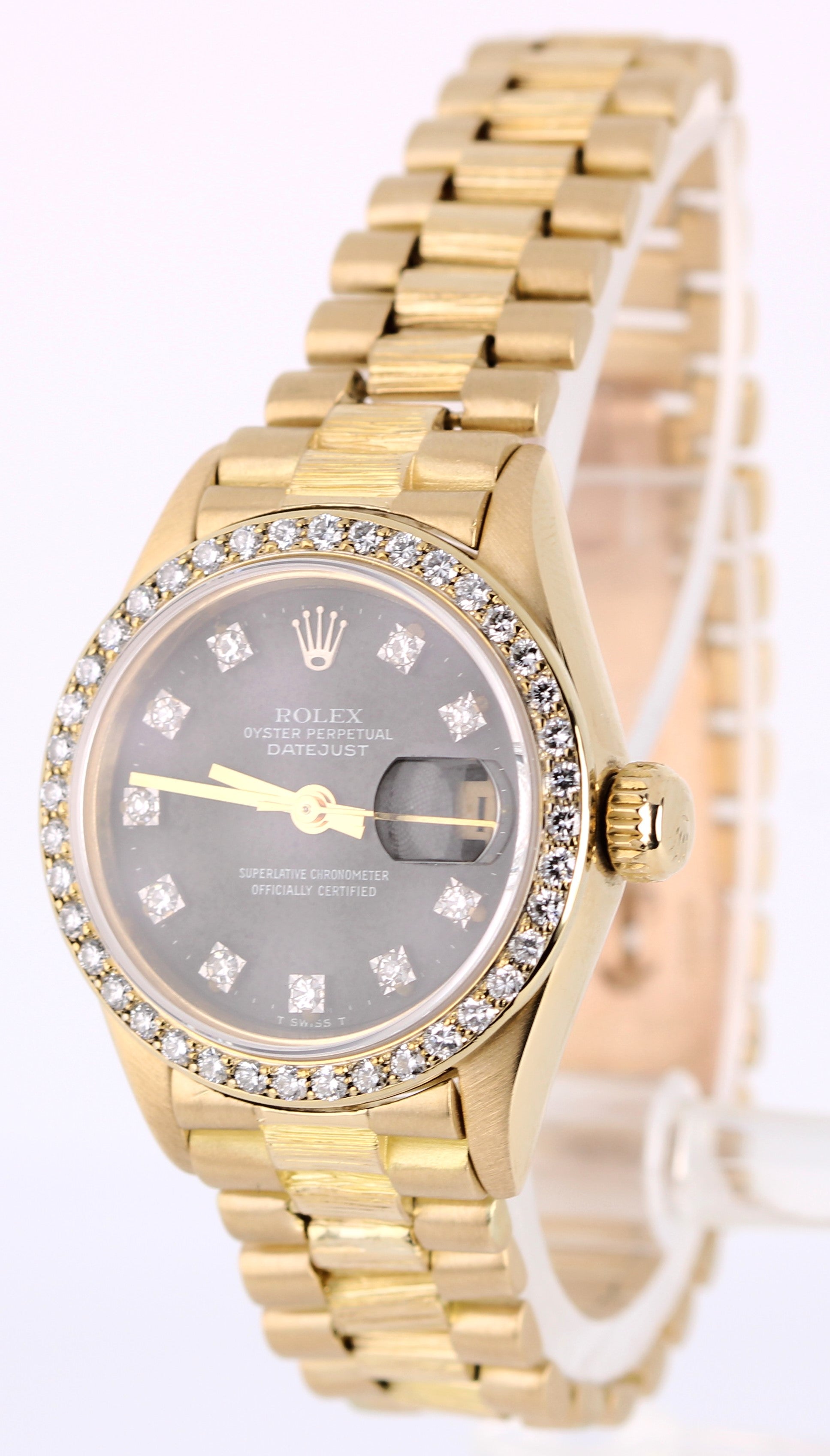 Rolex Datejust 18k Gold DIAMOND Bark President Black Granite 26mm 6927 Watch