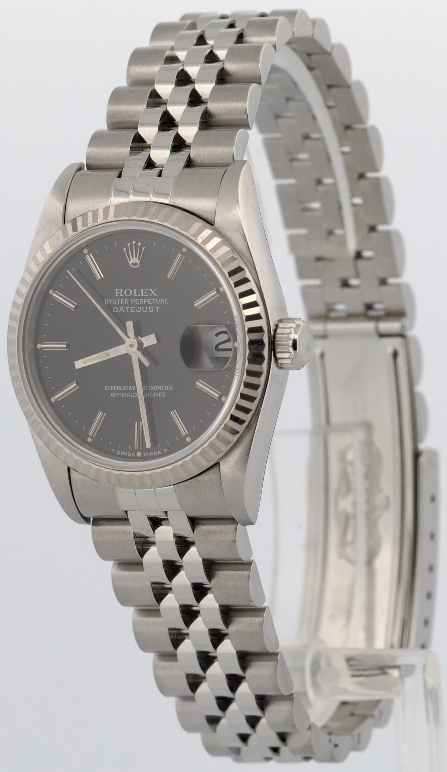 Rolex DateJust 31mm BLACK Steel Midsize 18K Steel Fluted JUBILEE Watch 68274