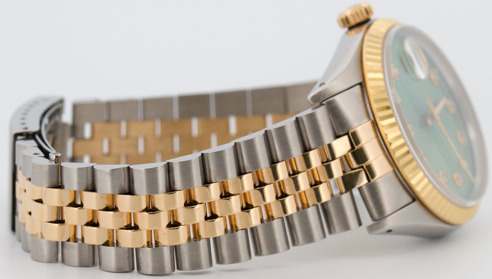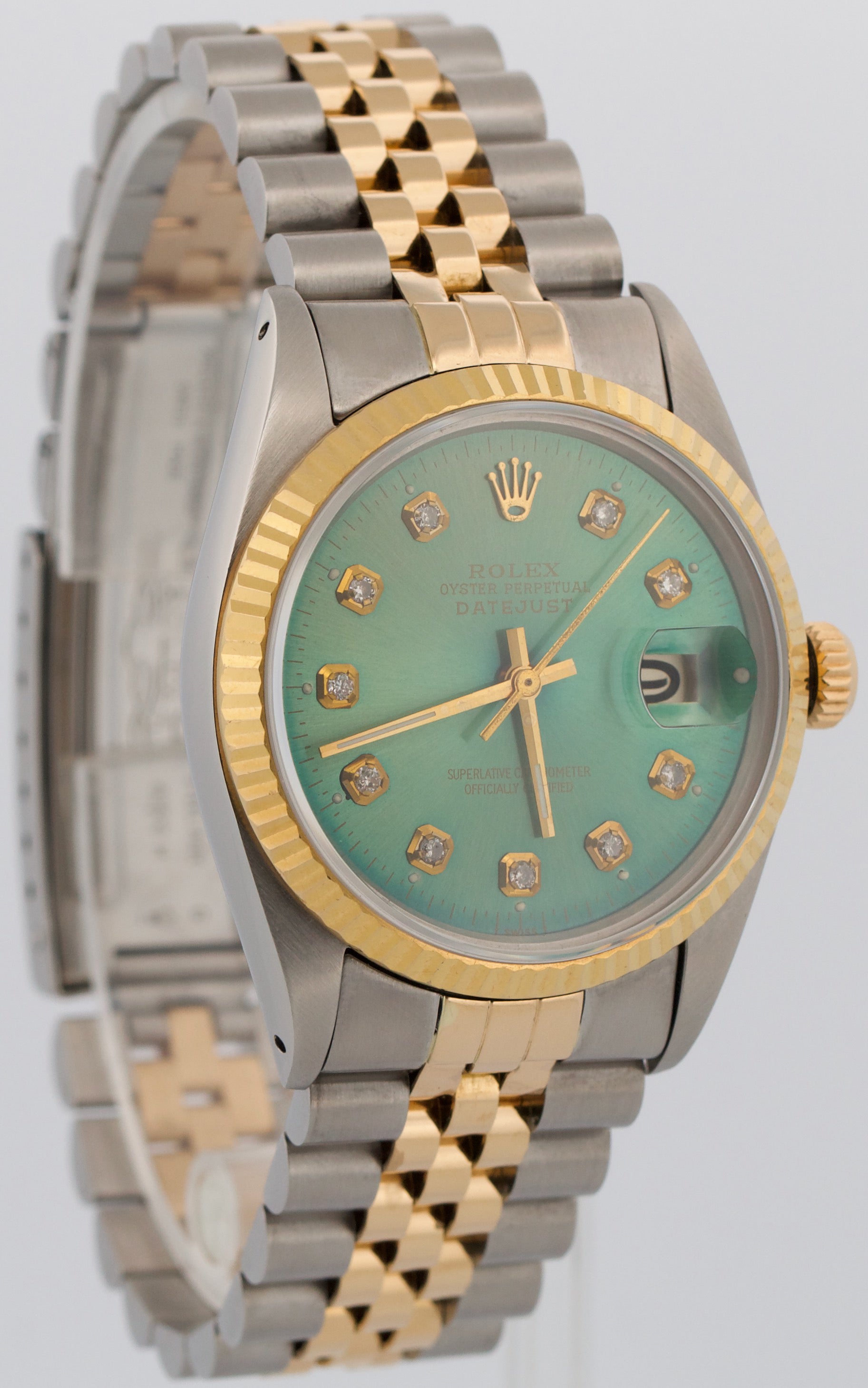 Rolex DateJust 36mm AQUA DIAMOND Blue Green 18K Gold JUBILEE Steel Watch 16013