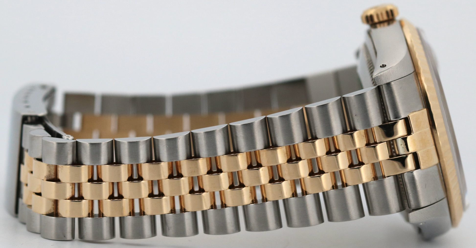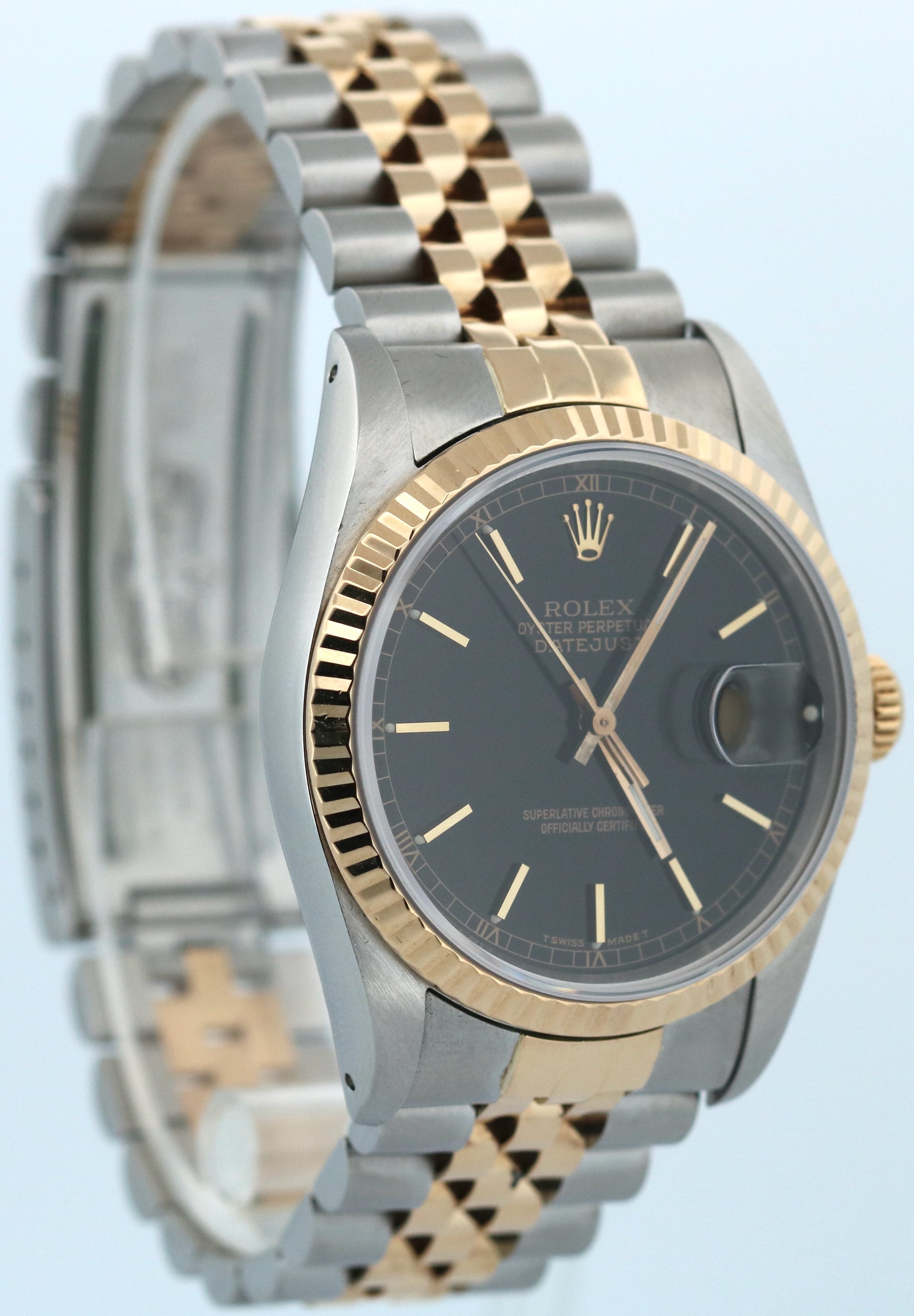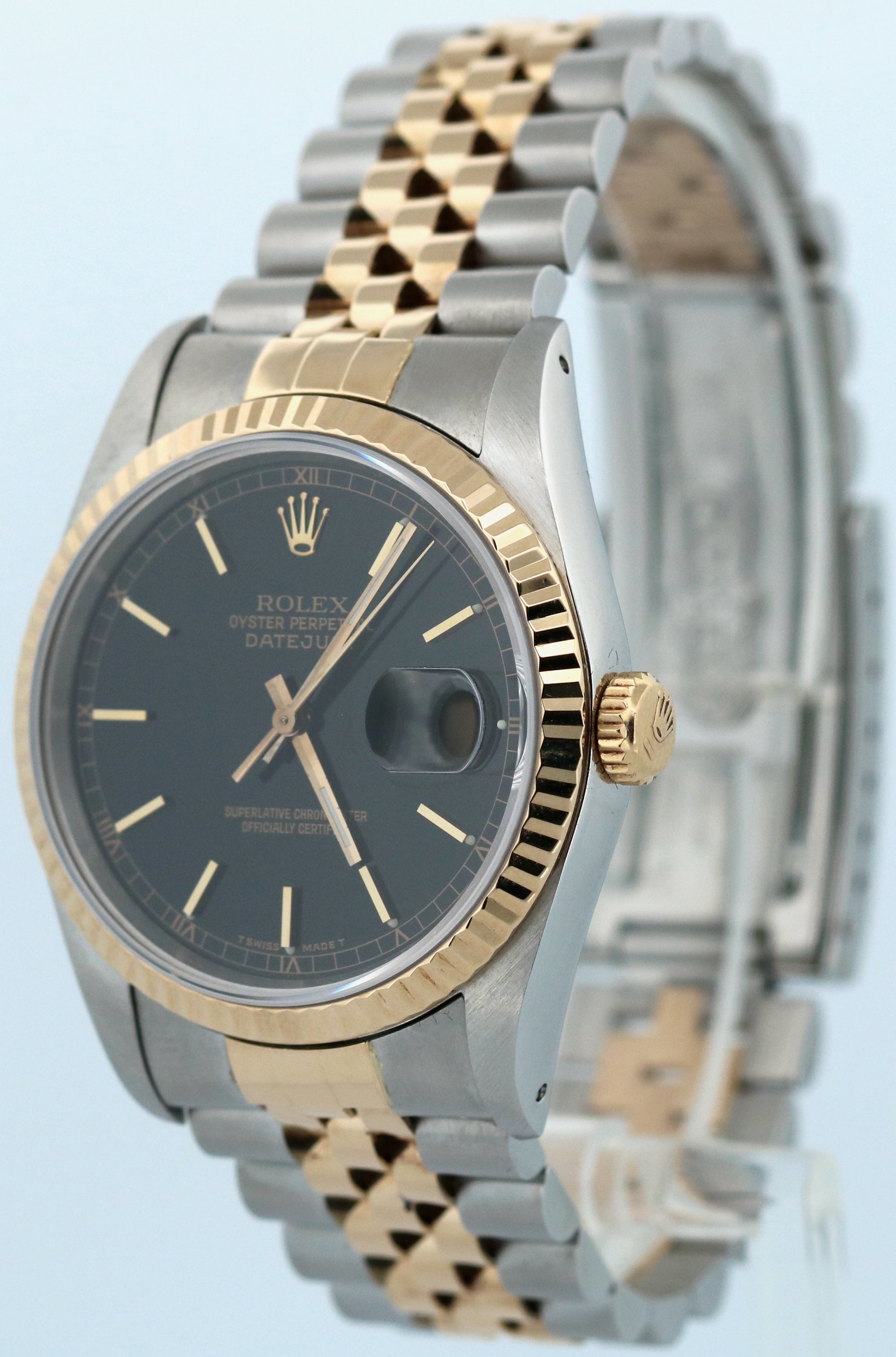 Rolex DateJust 36mm BLACK 18K Yellow Gold JUBILEE Stainless Steel 16233 Watch