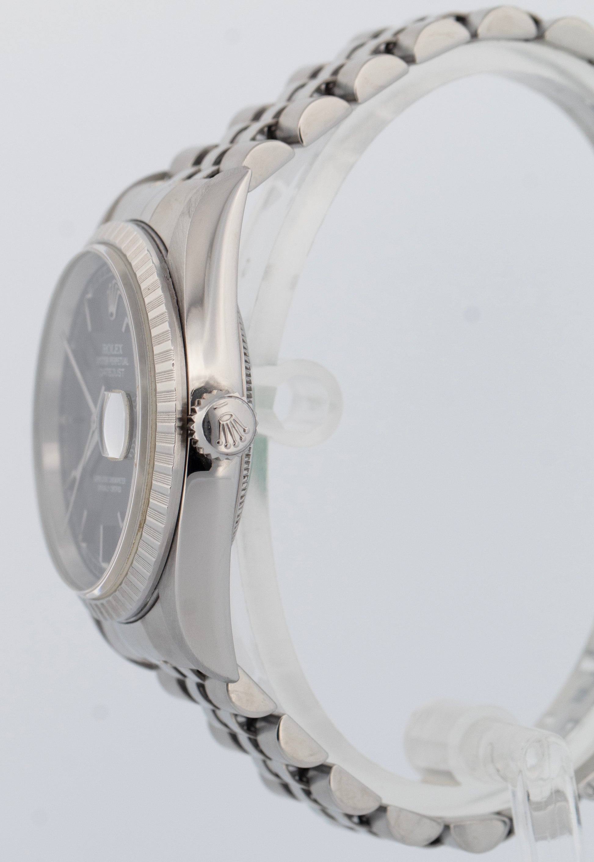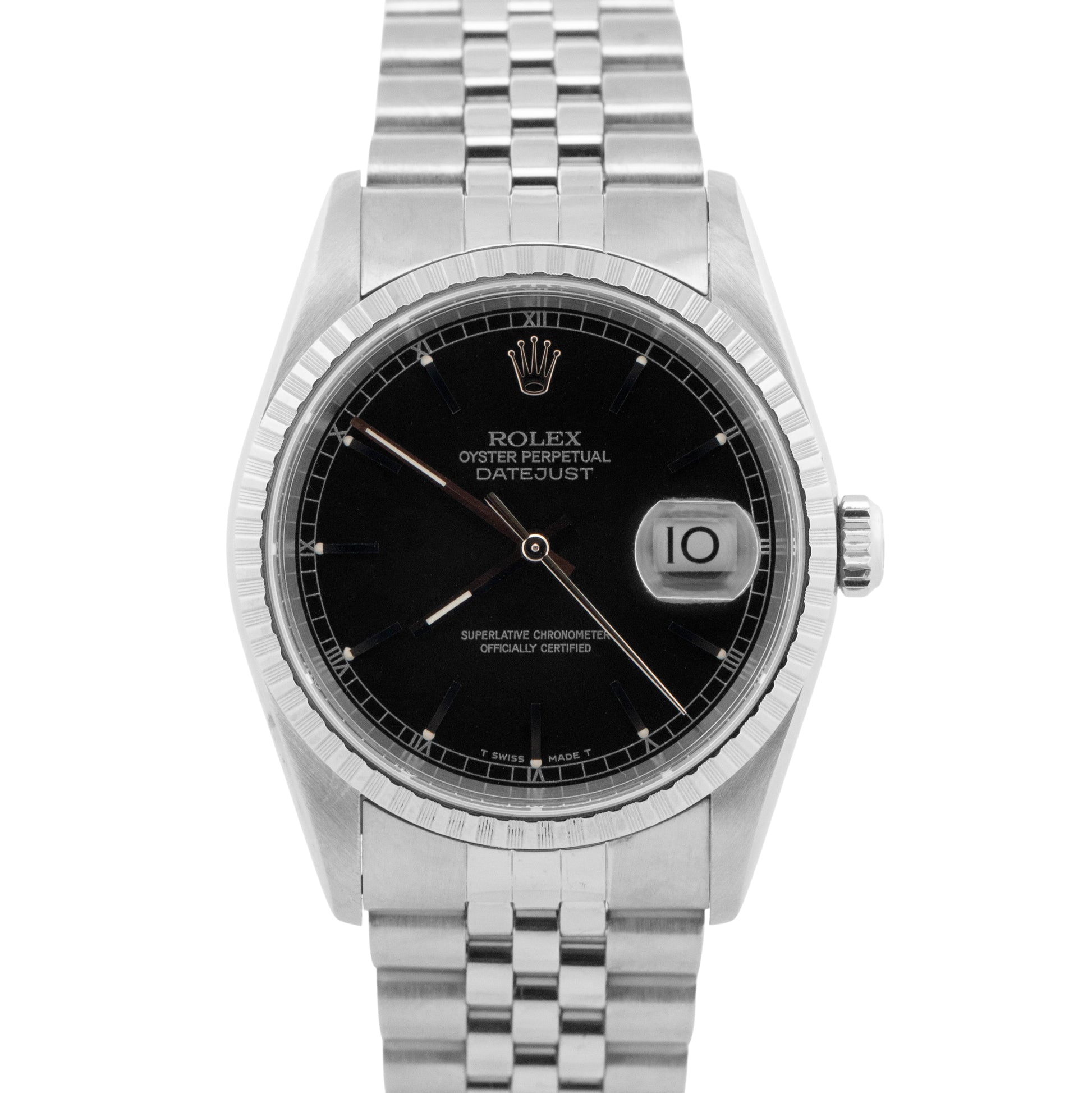 Rolex DateJust 36mm BLACK Dial Stainless Steel JUBILEE Engine-Turned Watch 16220
