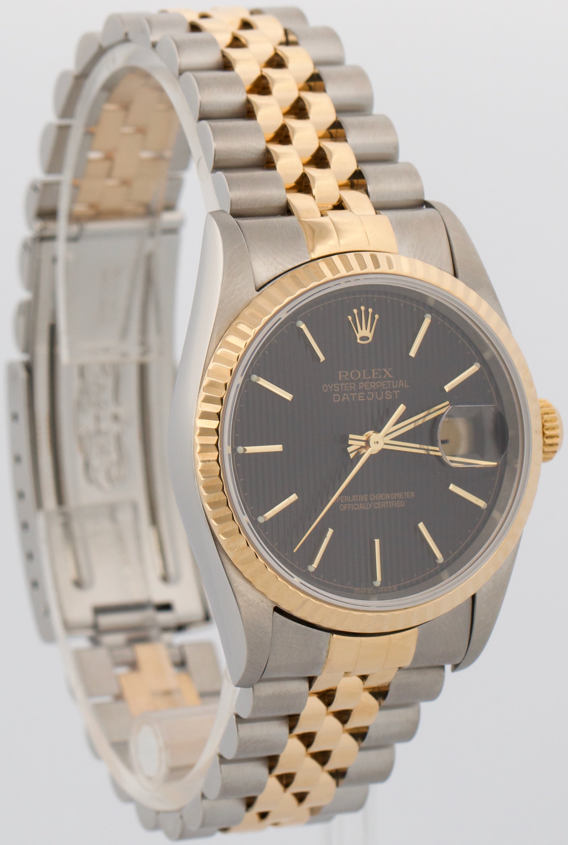 Rolex DateJust 36mm BLACK TAPESTRY 18K Yellow Gold JUBILEE Steel 16233 Watch