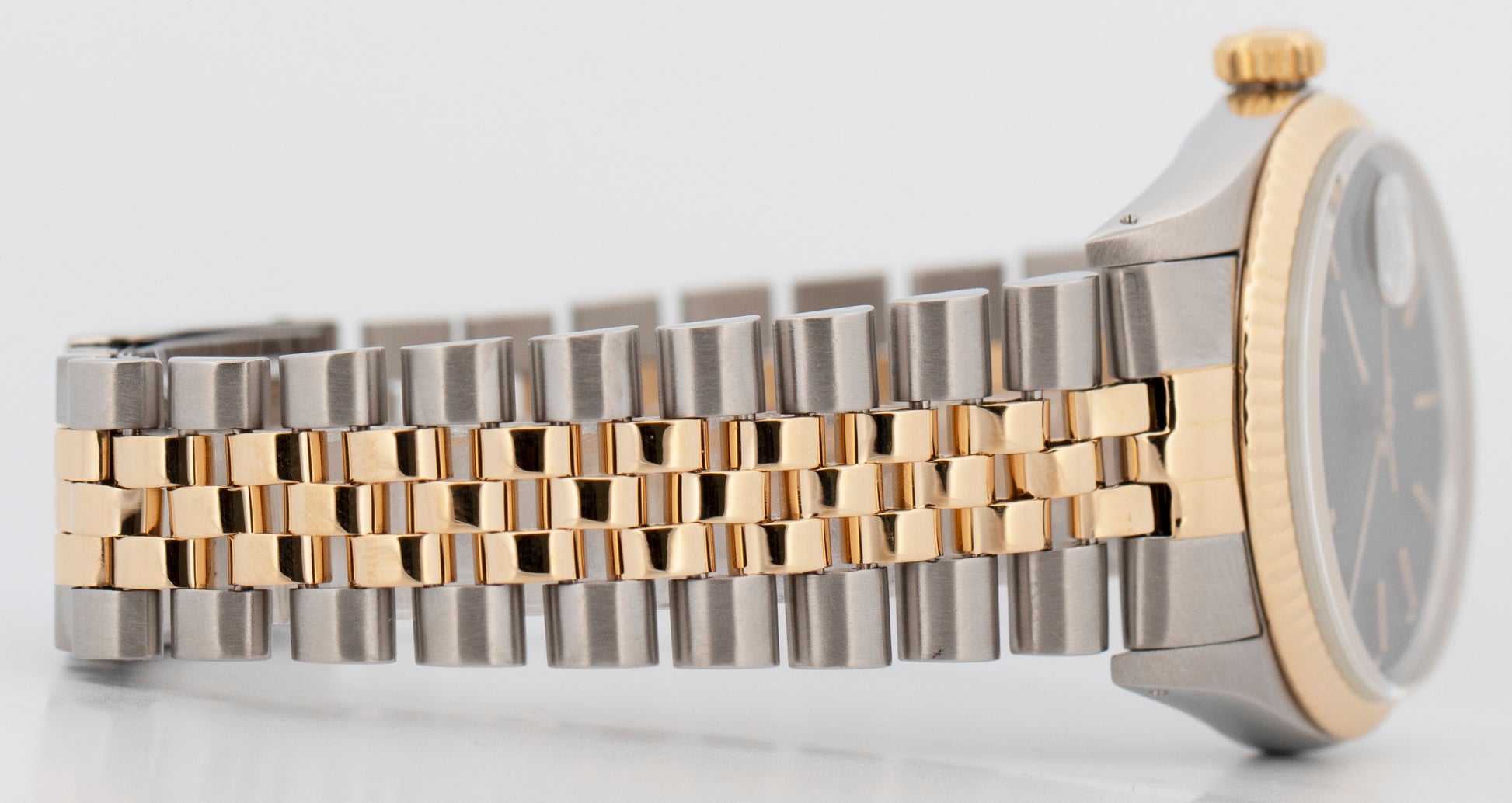Rolex DateJust 36mm Black Tapestry Two-Tone Jubilee 18K Yellow Gold Watch 16013