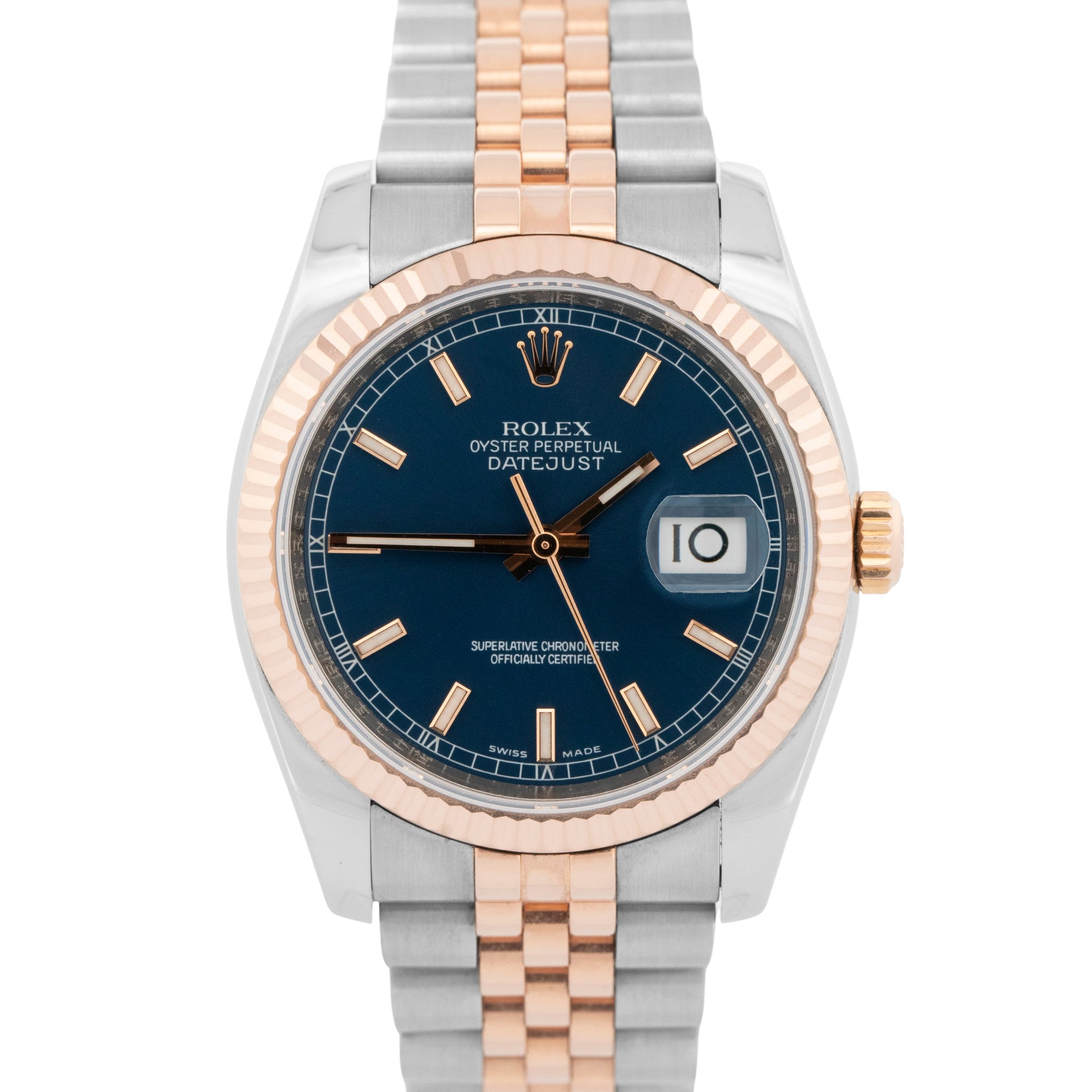 Rolex DateJust 36mm BLUE Two-Tone 18K Rose Gold Steel Jubilee 116231 Watch
