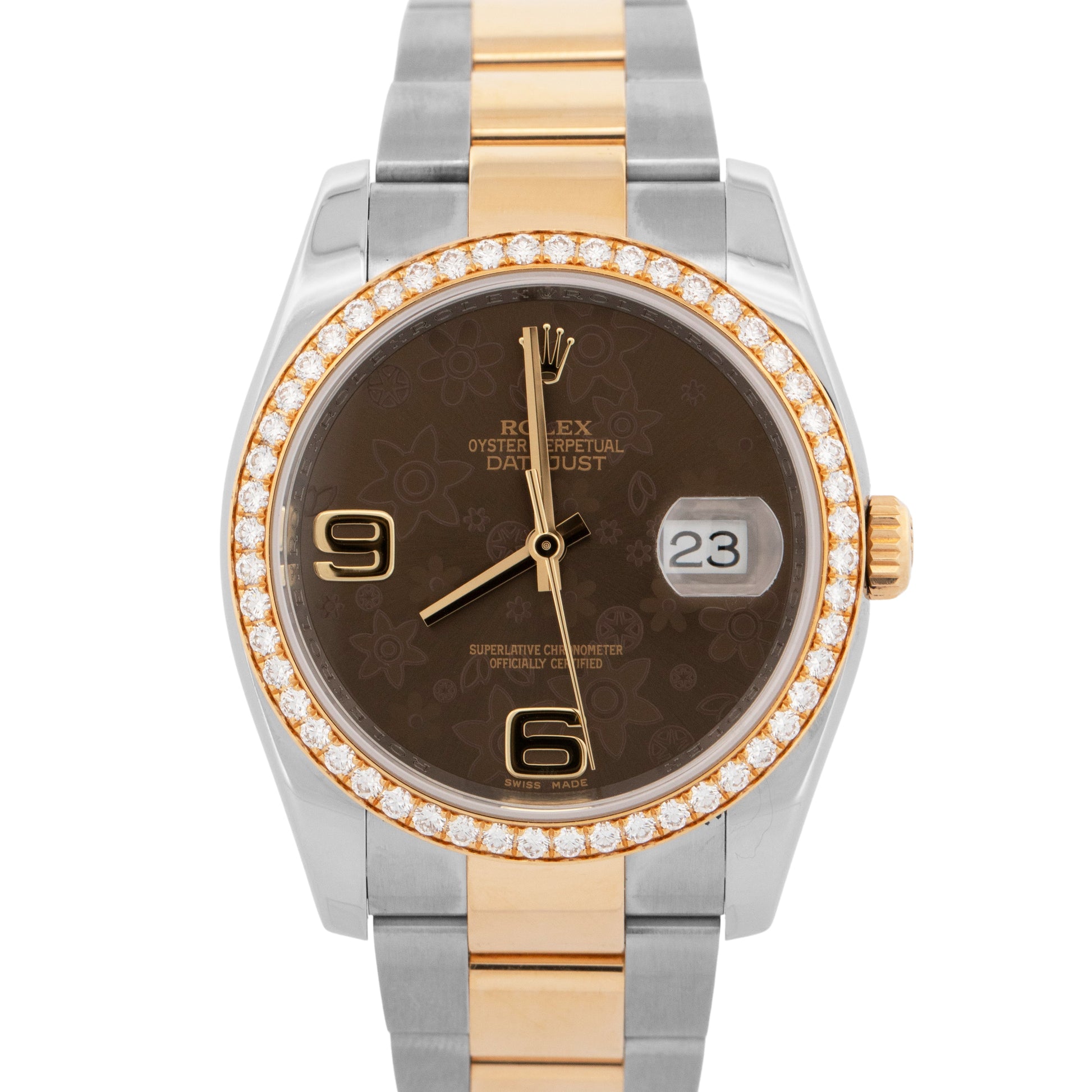 Rolex DateJust 36mm Bronze Floral DIAMOND Two-Tone 18K Yellow Gold 116243 BOX