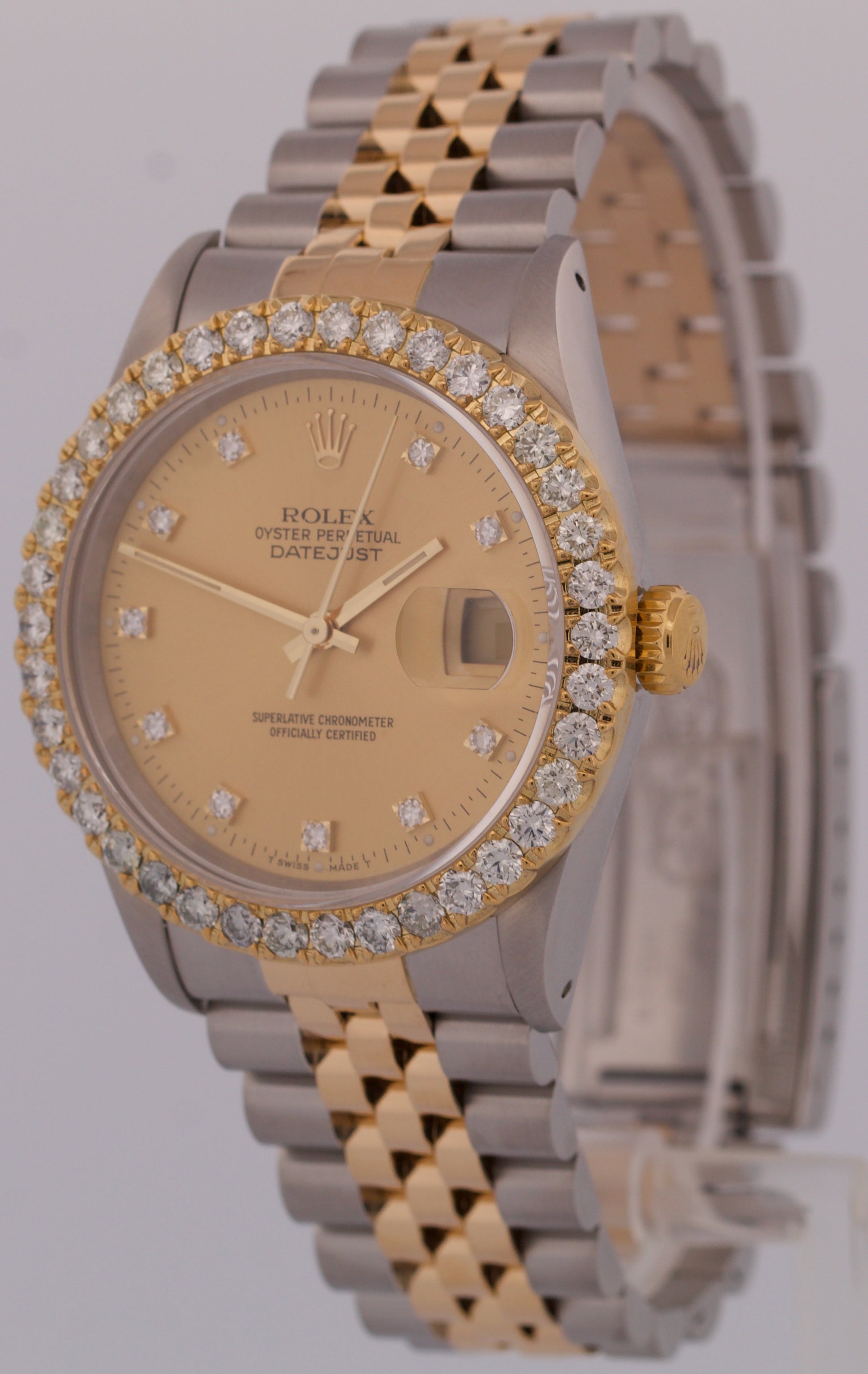 Rolex DateJust 36mm CHAMPAGNE DIAMOND 18K Yellow Gold Steel JUBILEE Watch 16233