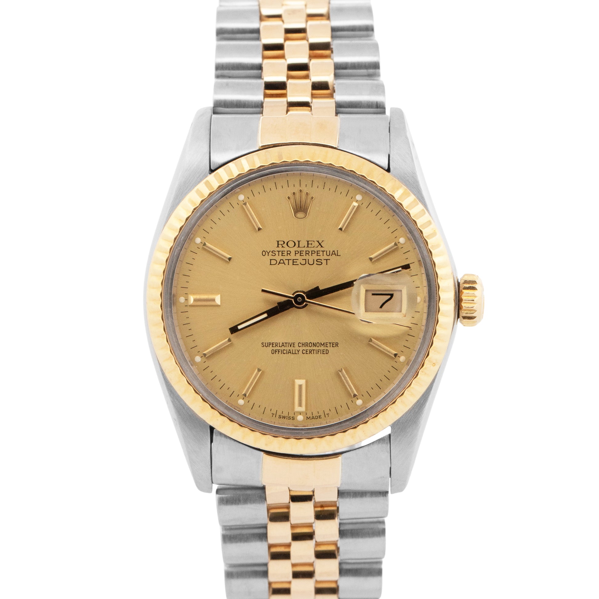 Rolex DateJust 36mm Champagne Two-Tone 18K Yellow Gold Steel JUBILEE Watch 16013