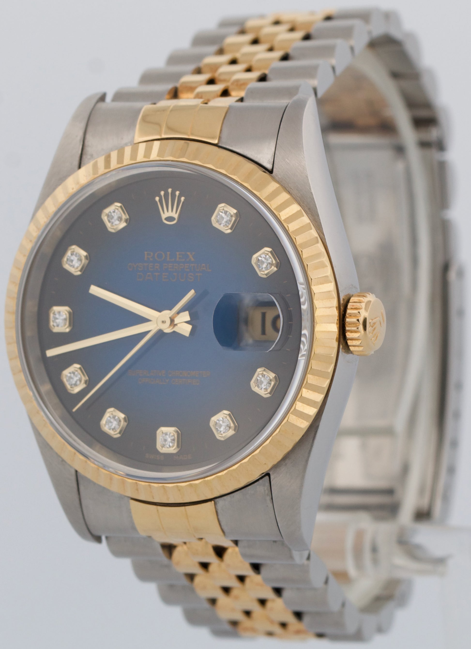 Rolex DateJust 36mm FACTORY BLUE VIGNETTE DIAMOND 18K Gold Steel JUBILEE 16233