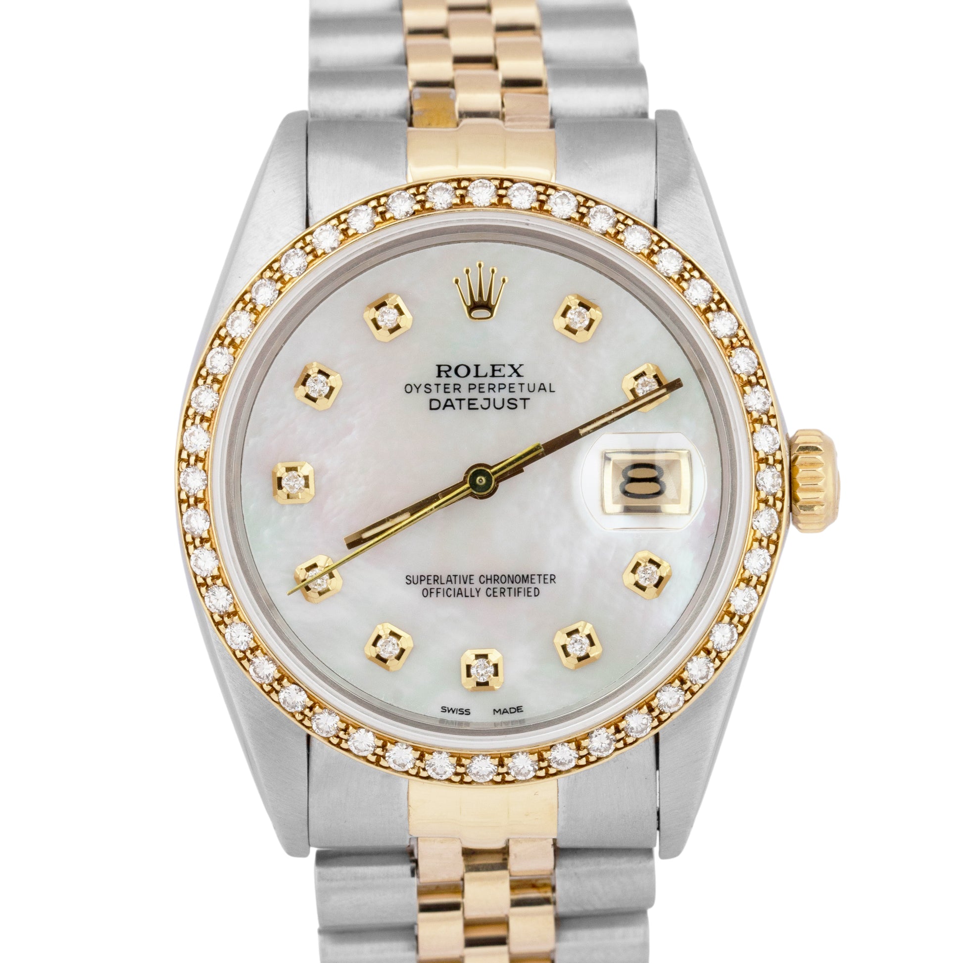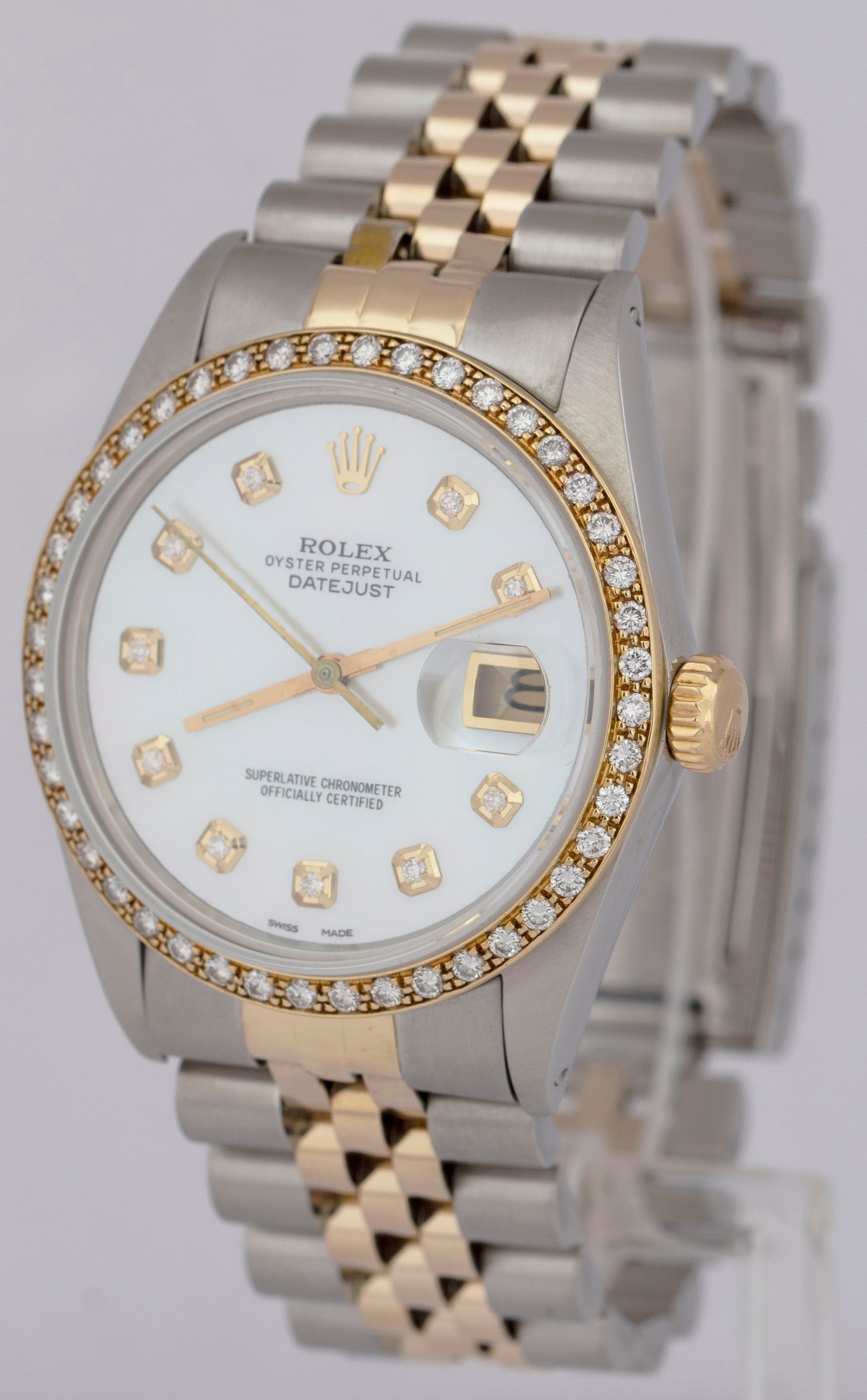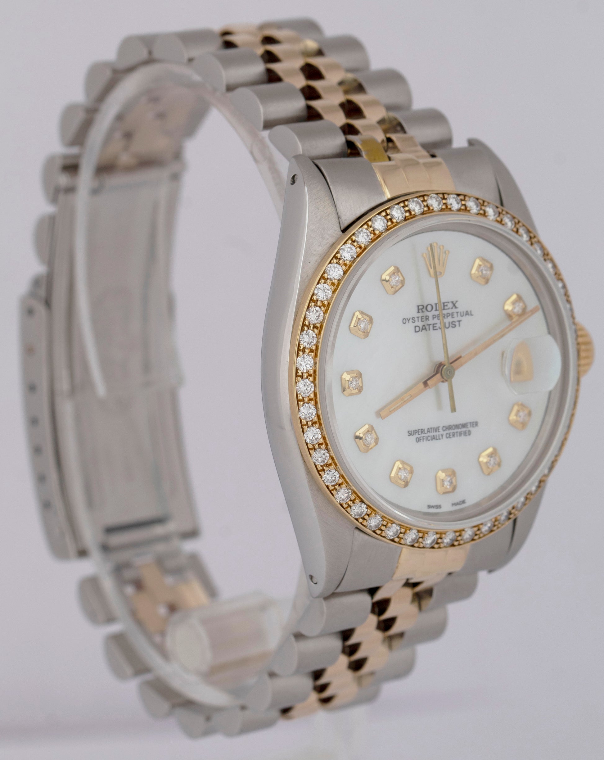 Rolex DateJust 36mm MOP DIAMOND 18K Gold Two-Tone Stainless Steel Watch 16013