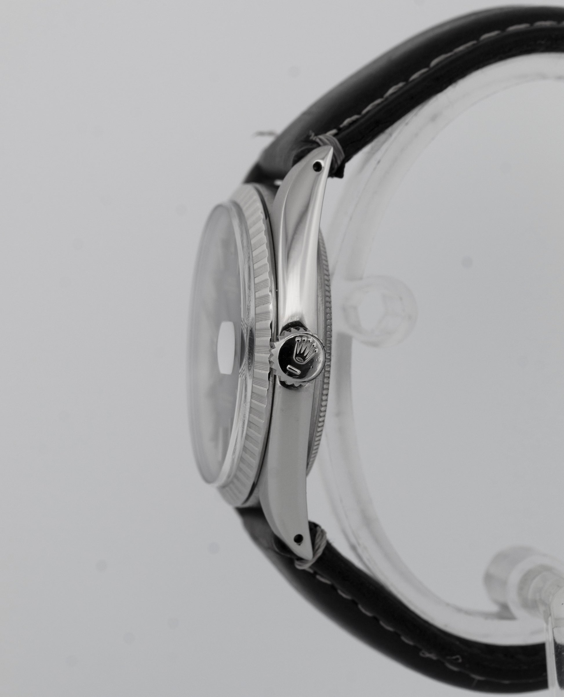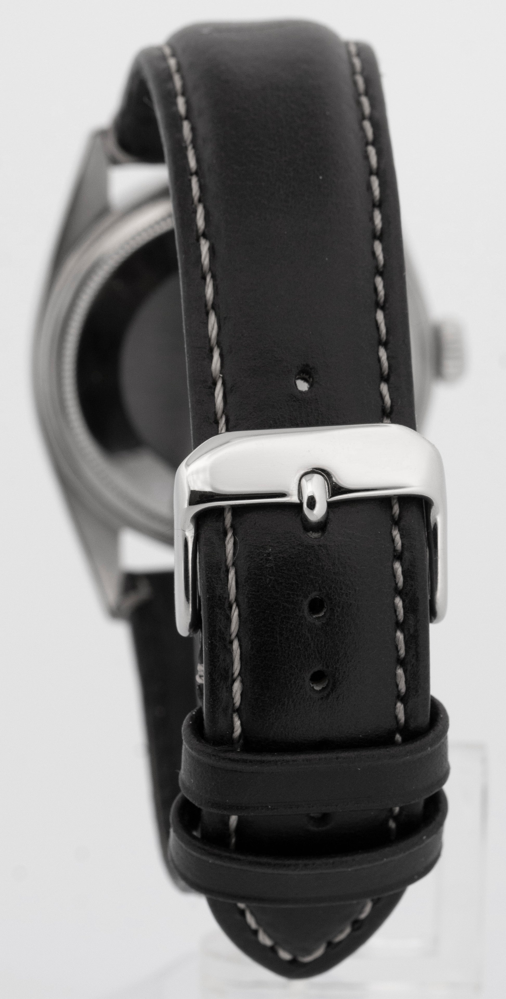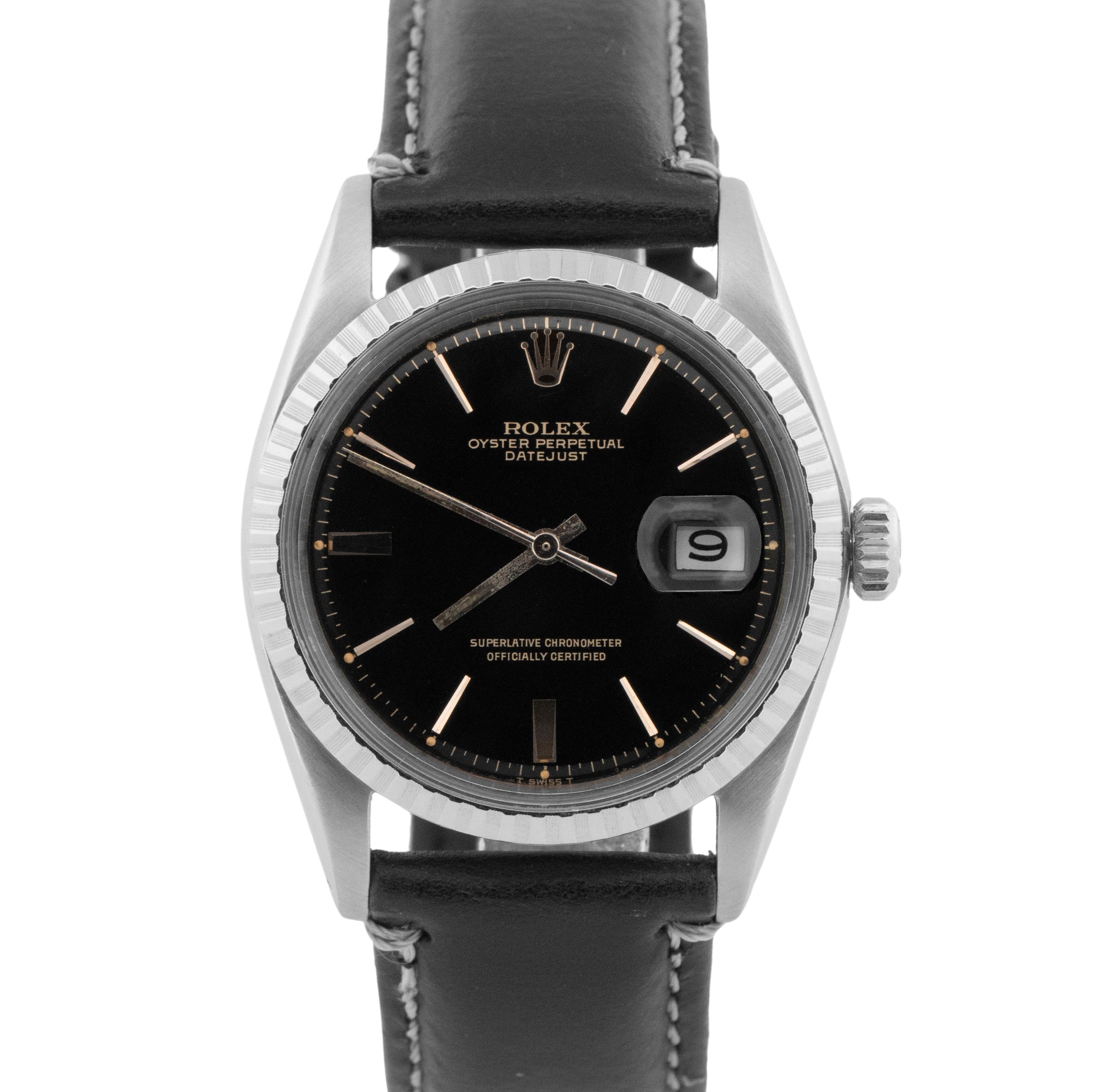 Rolex DateJust 36mm Black Stainless Engine Turned Automatic Watch 1603